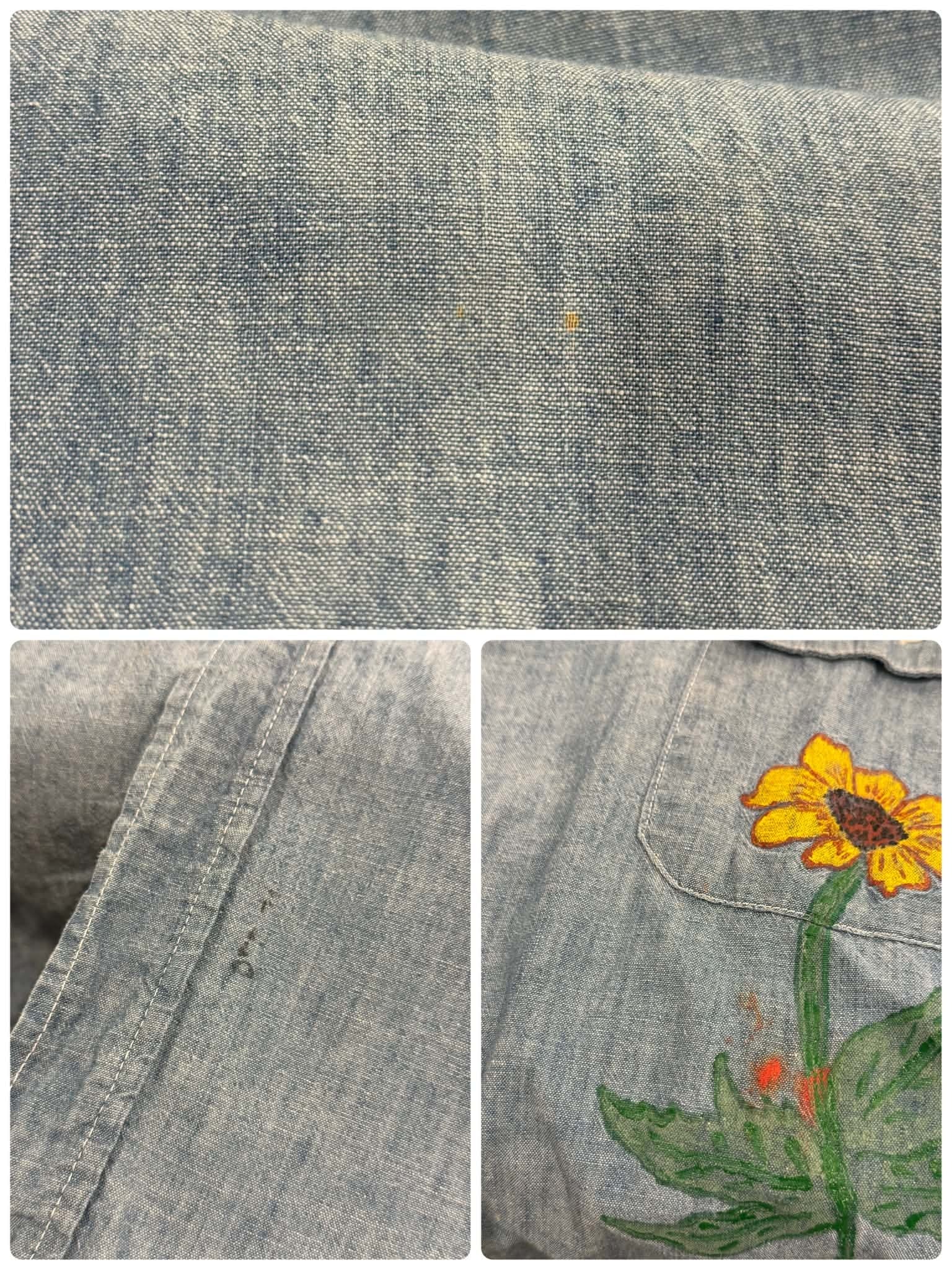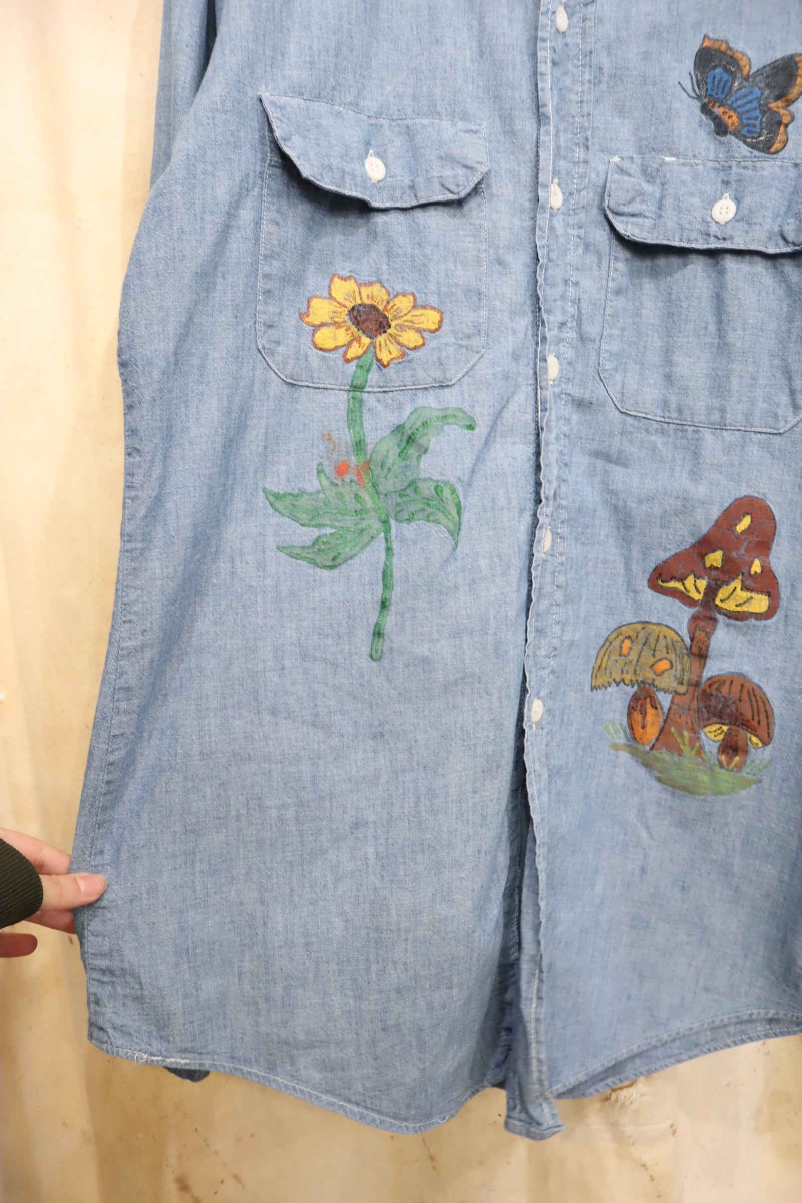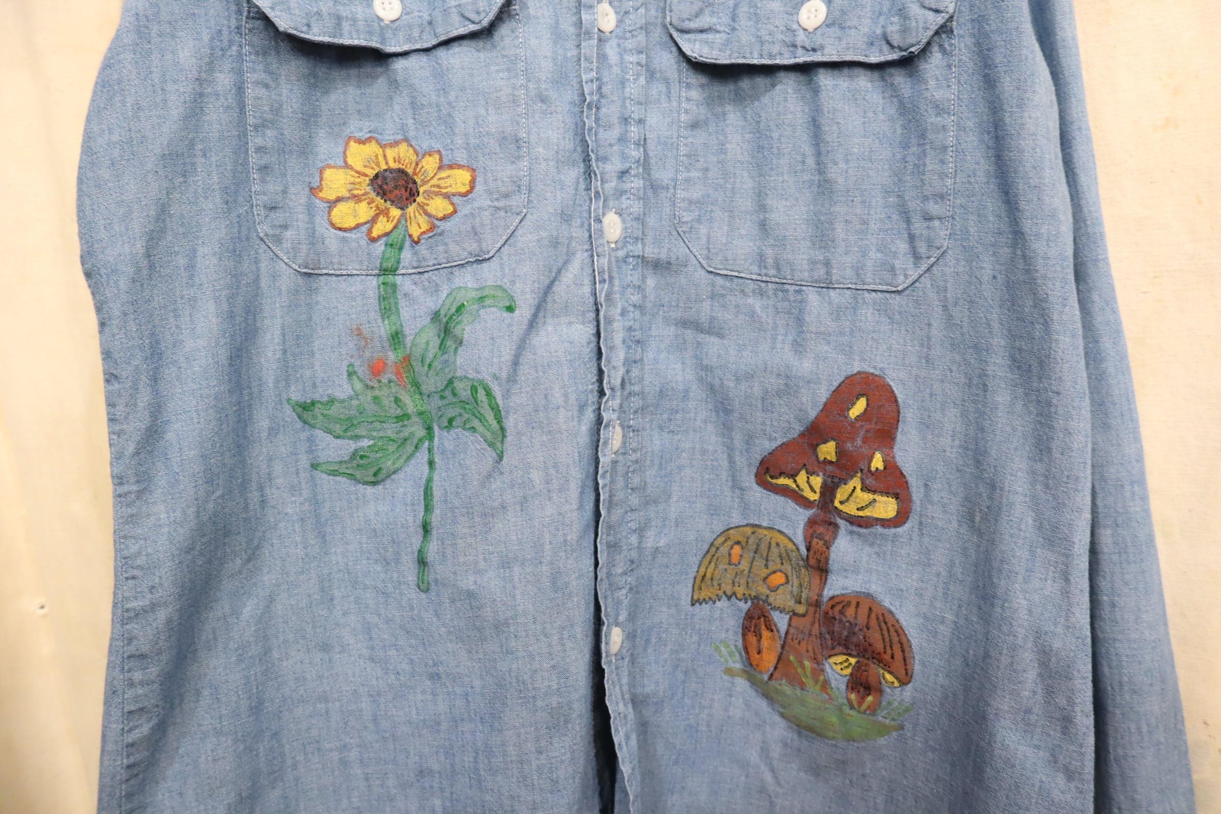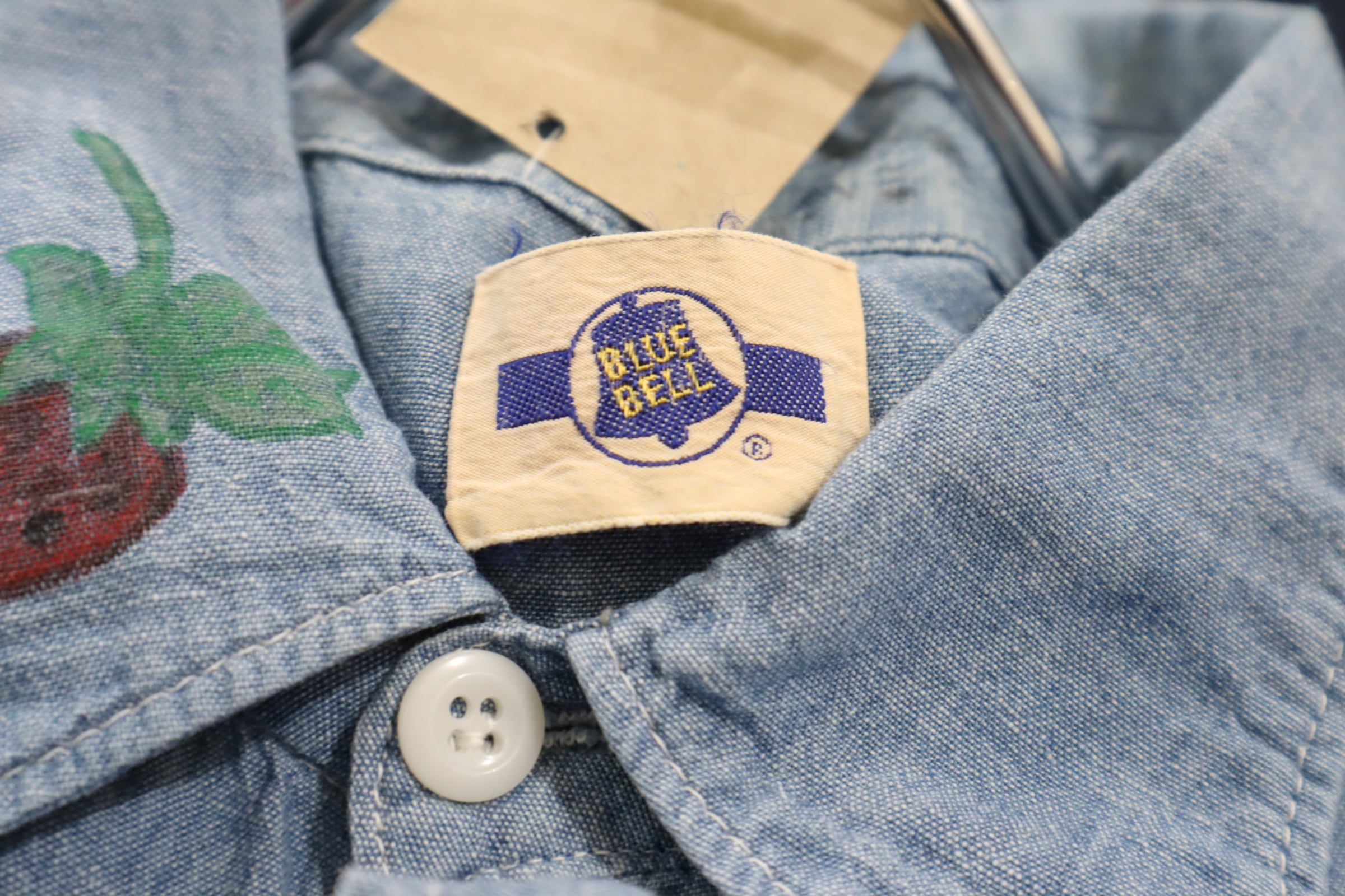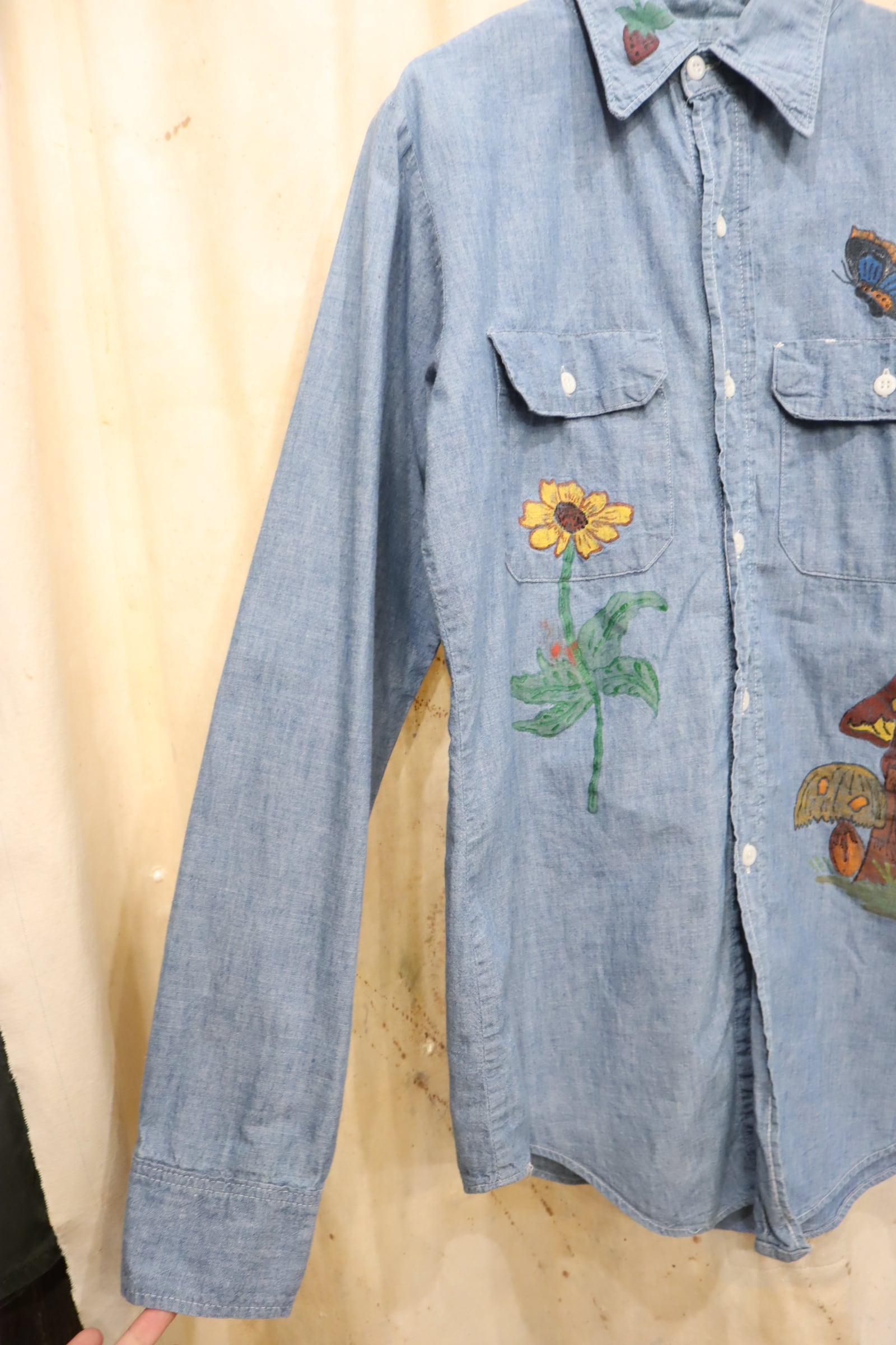 BLUE BELL blue×colorful hand paint chambray shirt [k-5087]