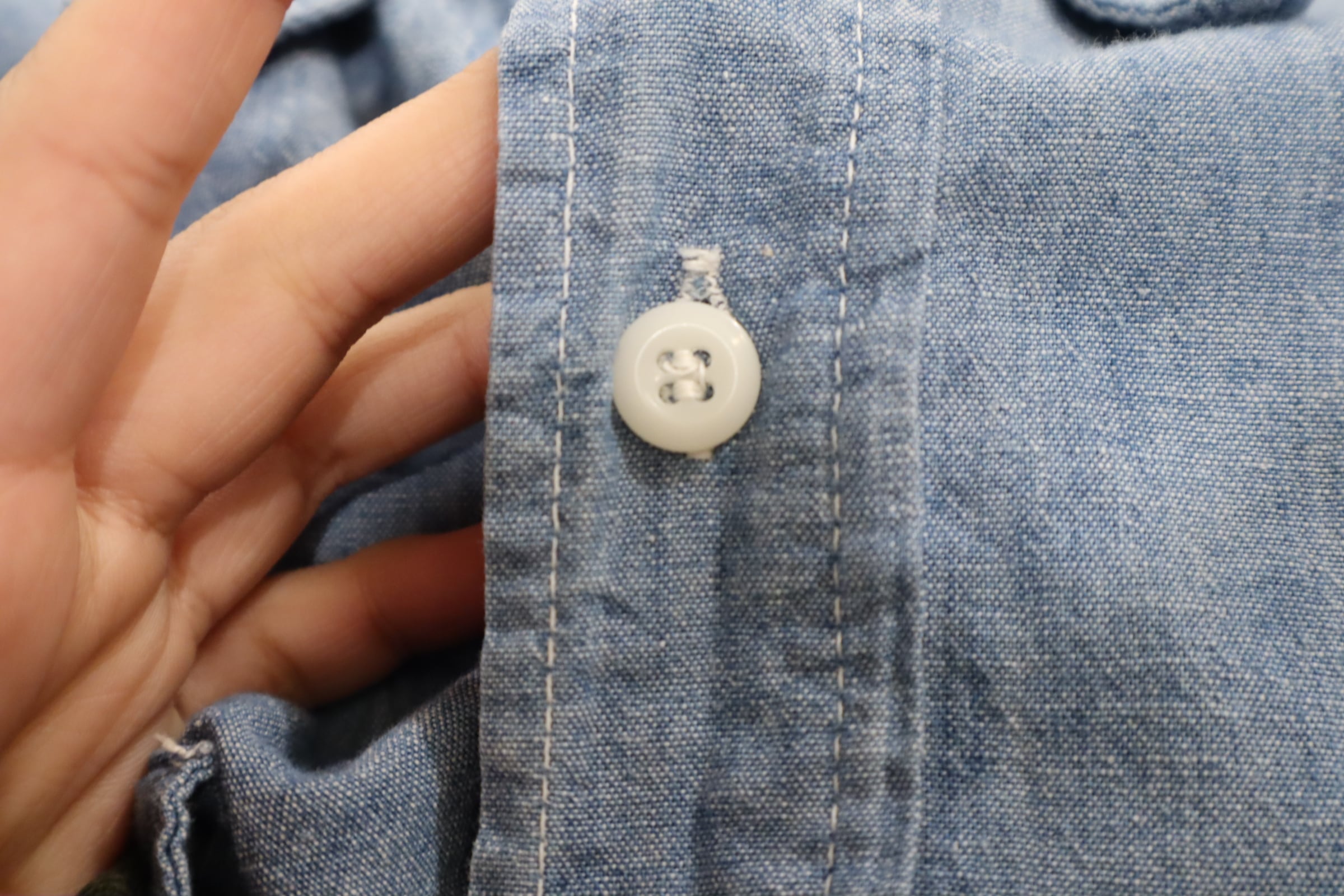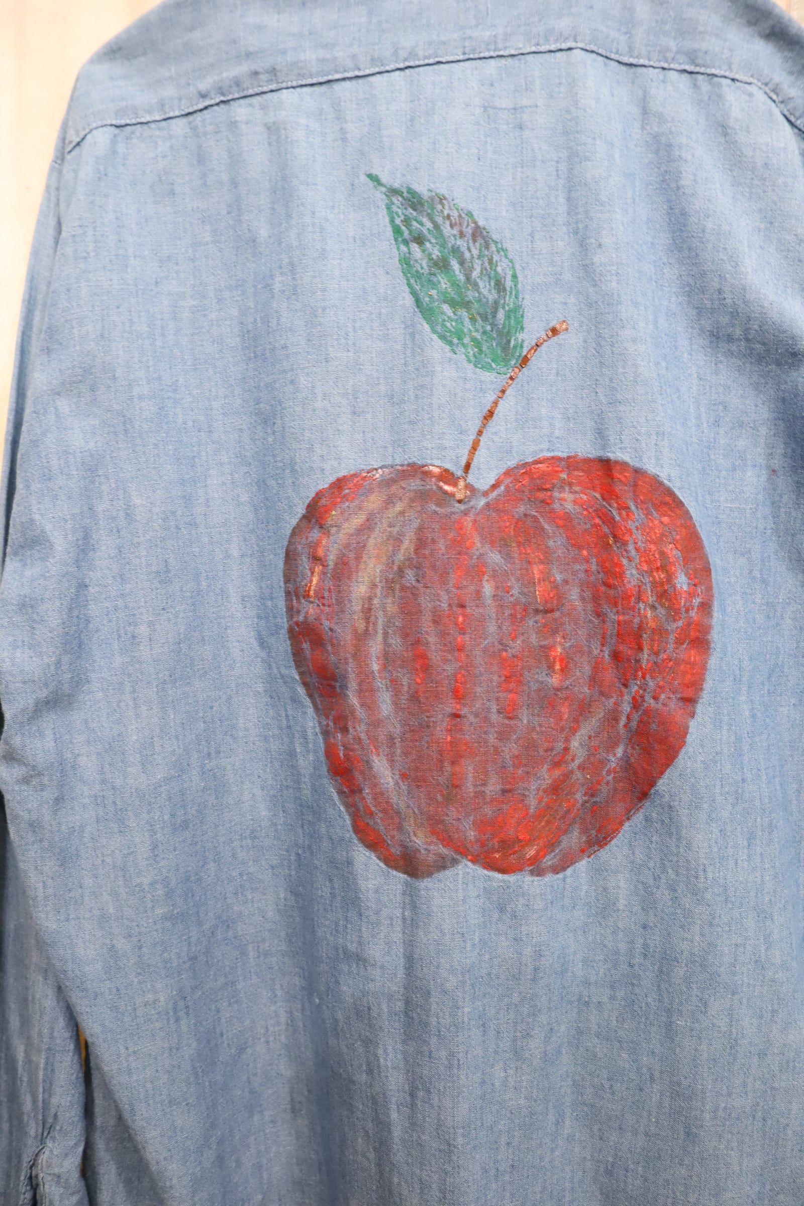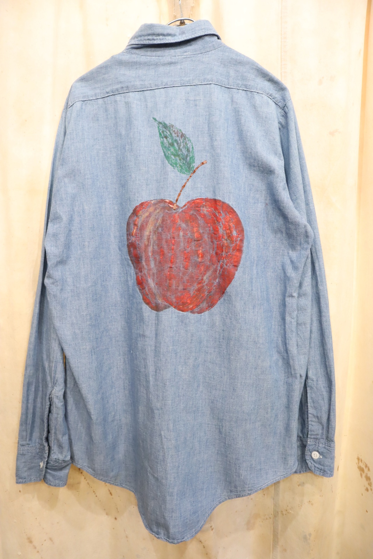 背中のデカリンゴペイントがとっても可愛いシャンブレーシャツです。