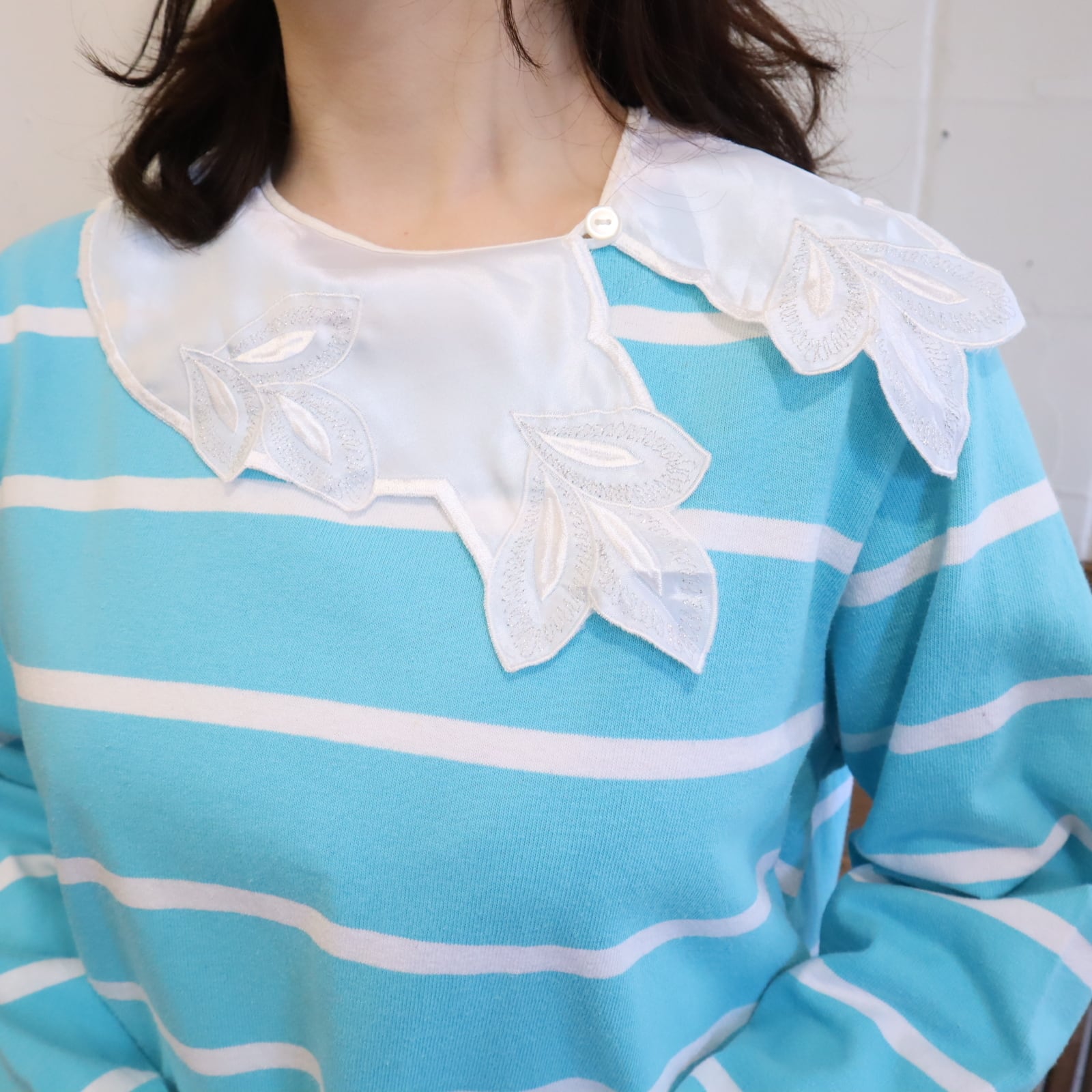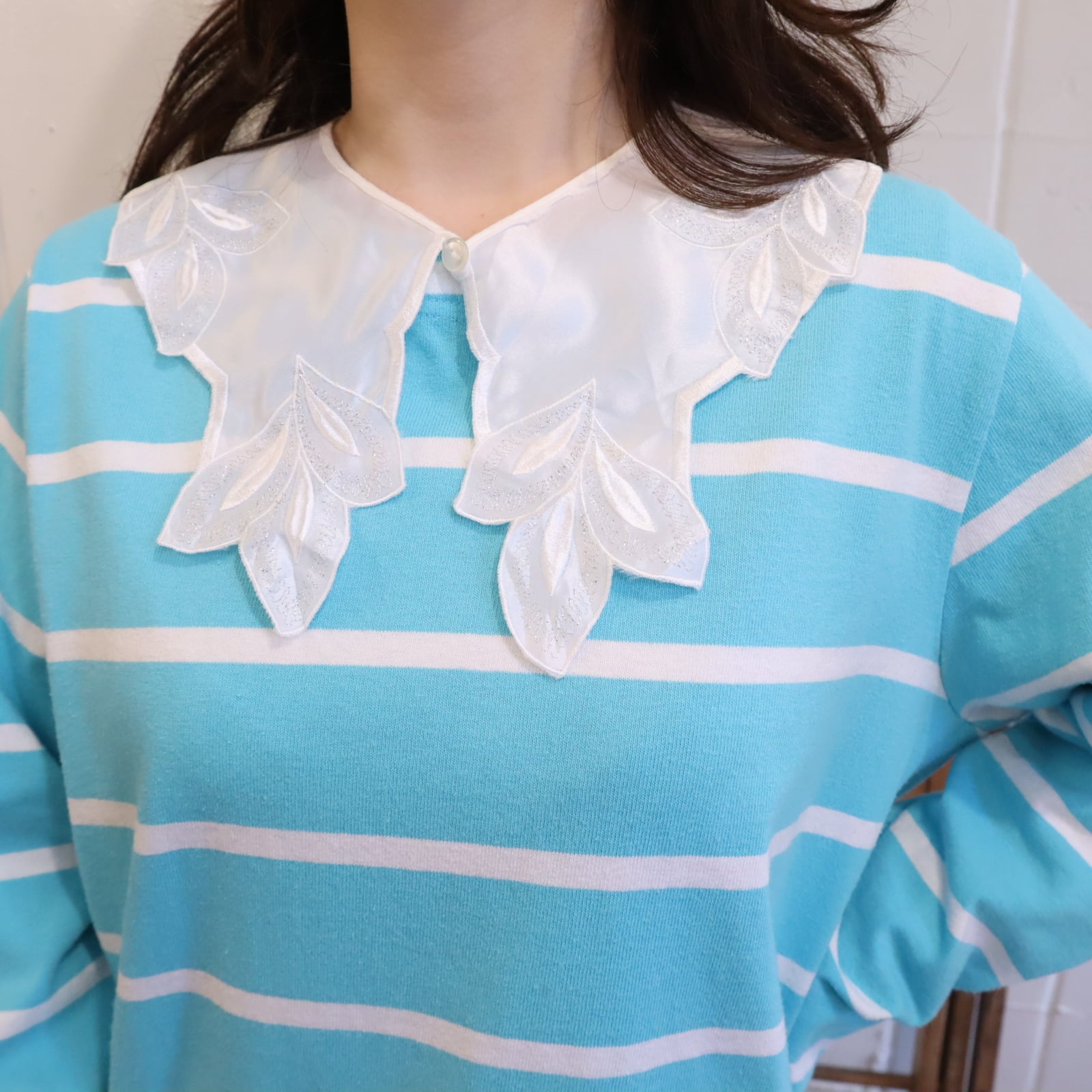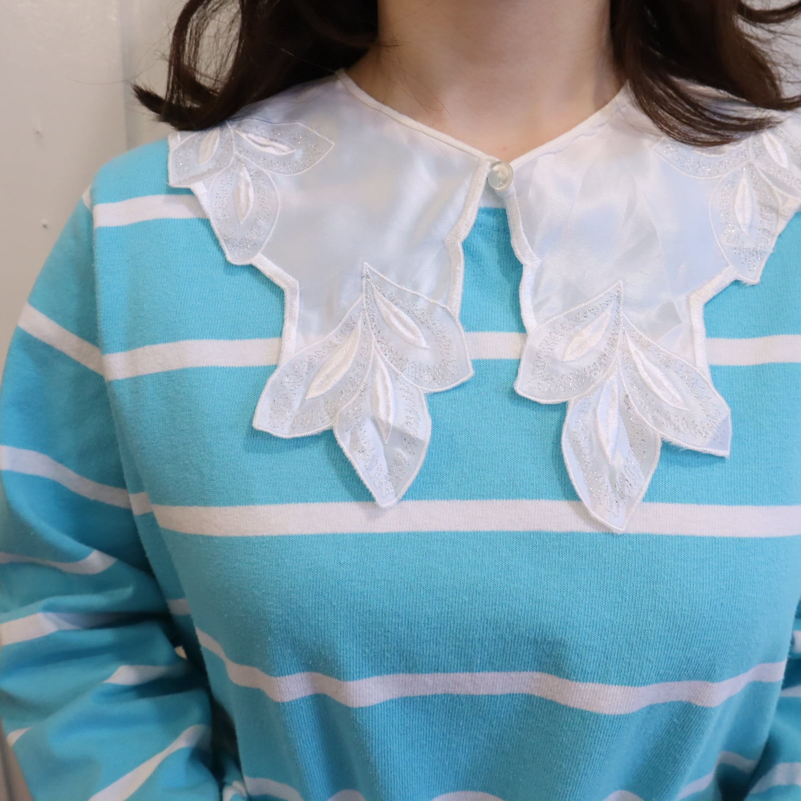 1枚目写真のように中心をずらして付けるのも可愛い付け襟。