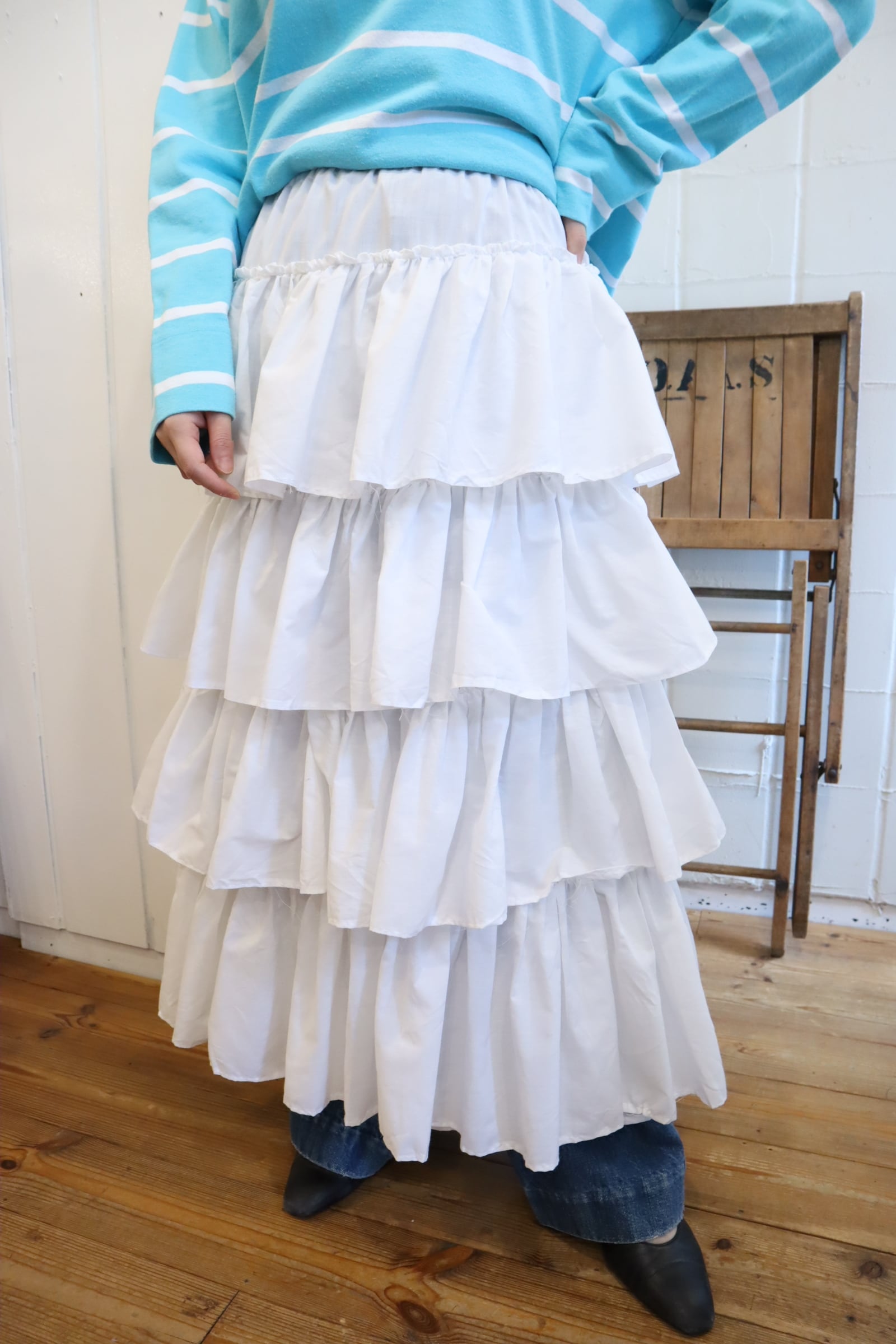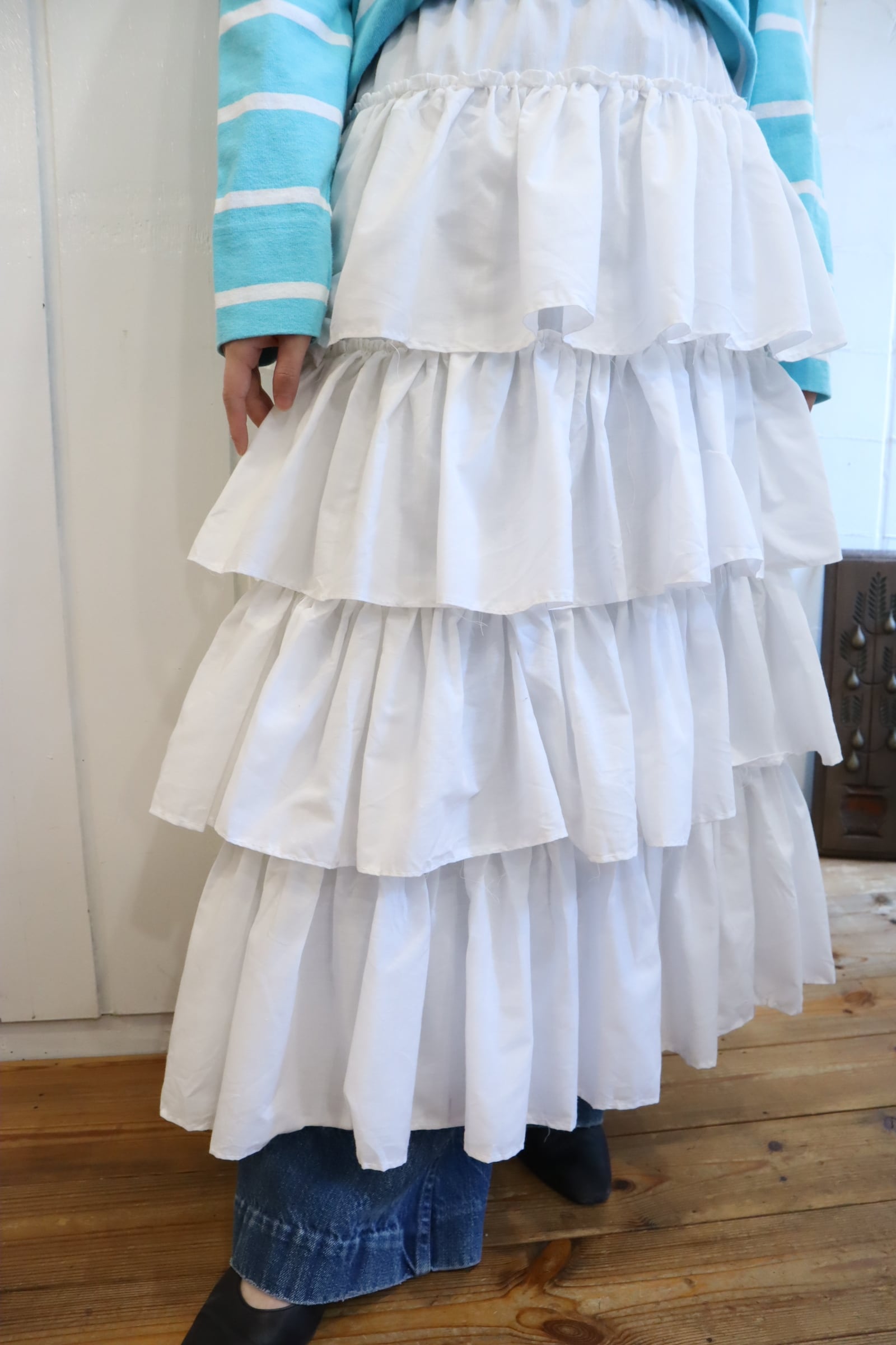 ボリュームのあるティアードデザインが可愛いホワイトスカート♡