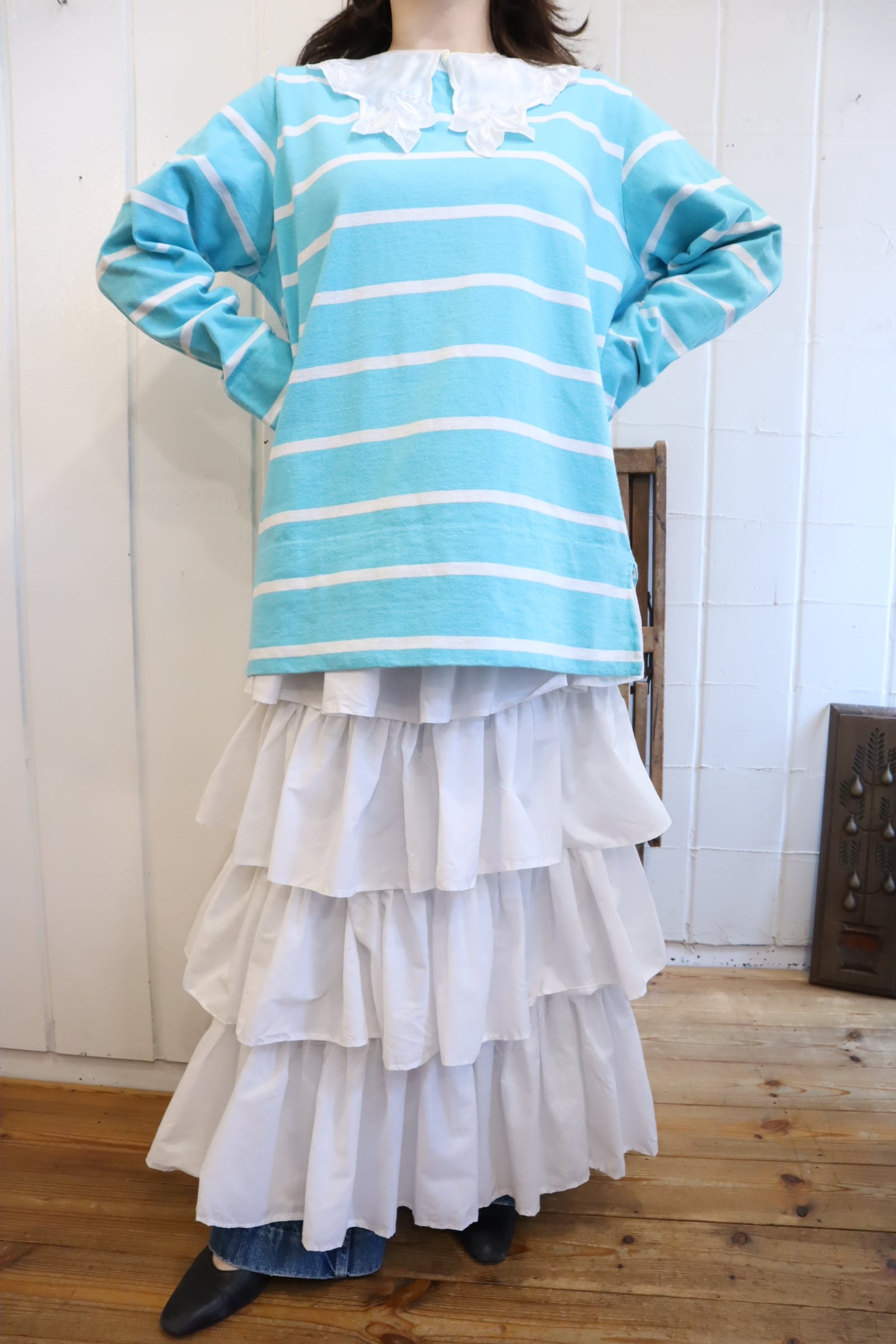 タイトなトップスとも、ゆったりめなトップスとも意外とバランスがとれる一点です◎