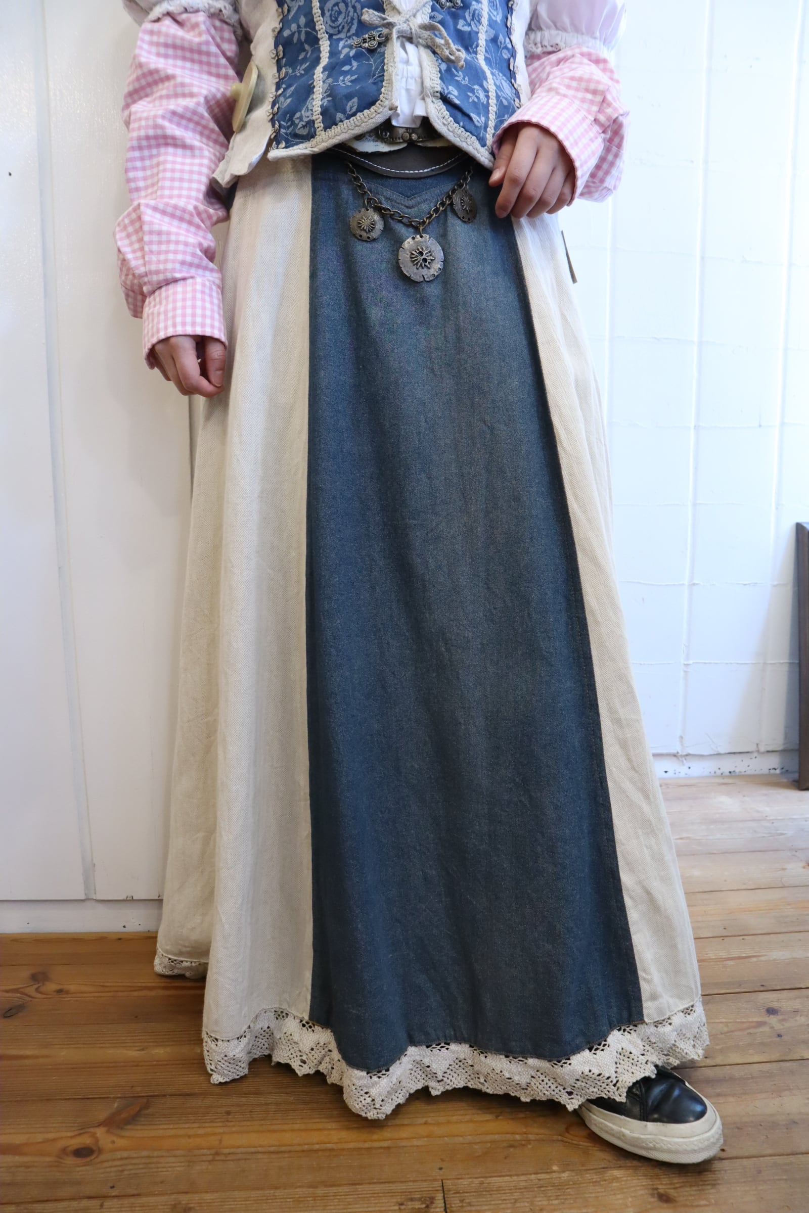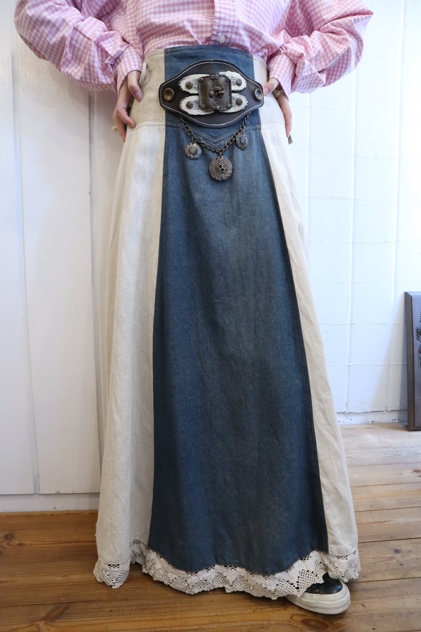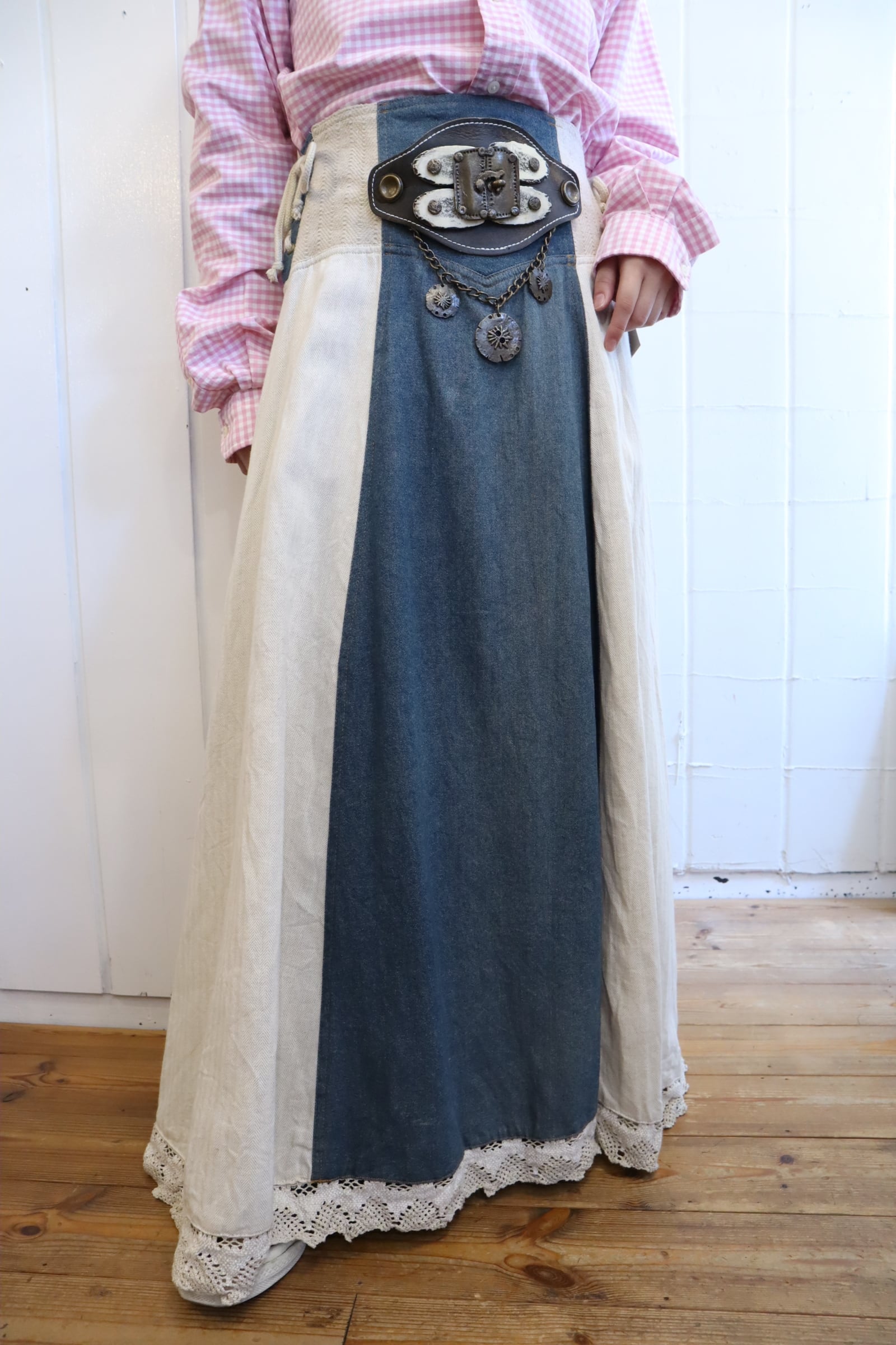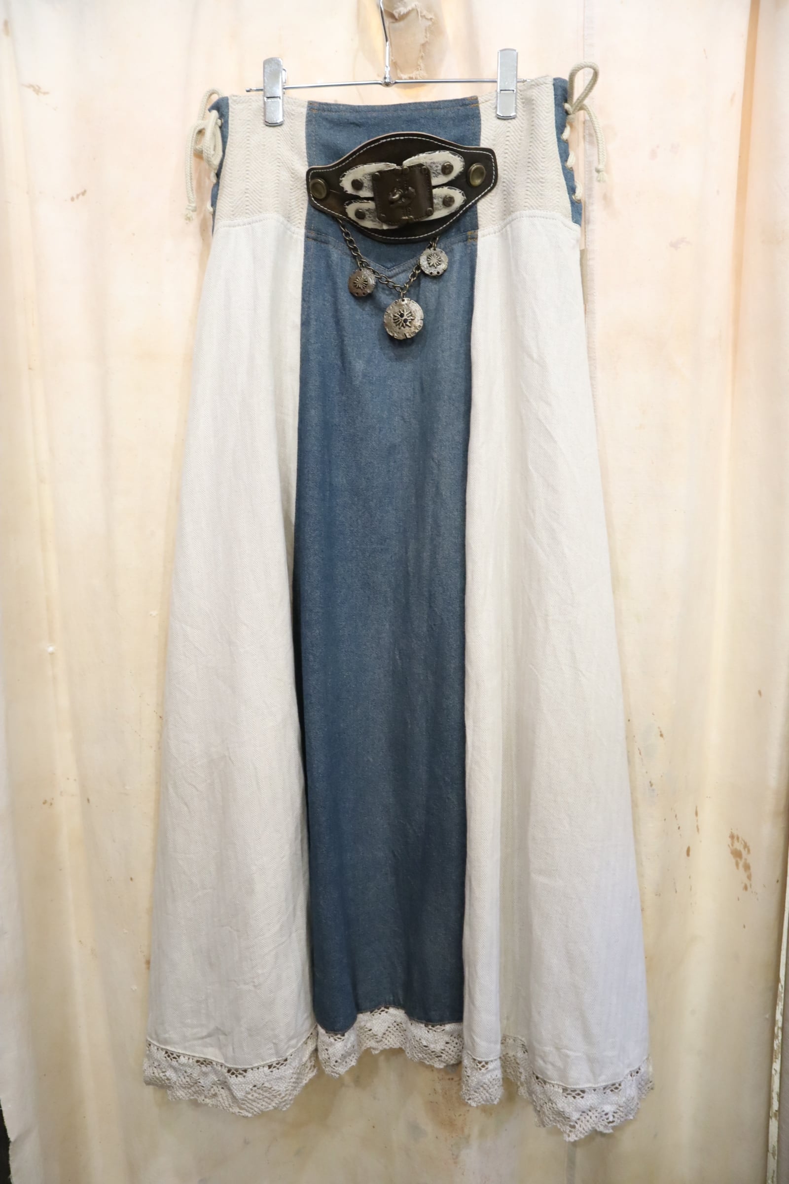 ivory×dullblue leather accessory tyrol long skirt [l-5108]