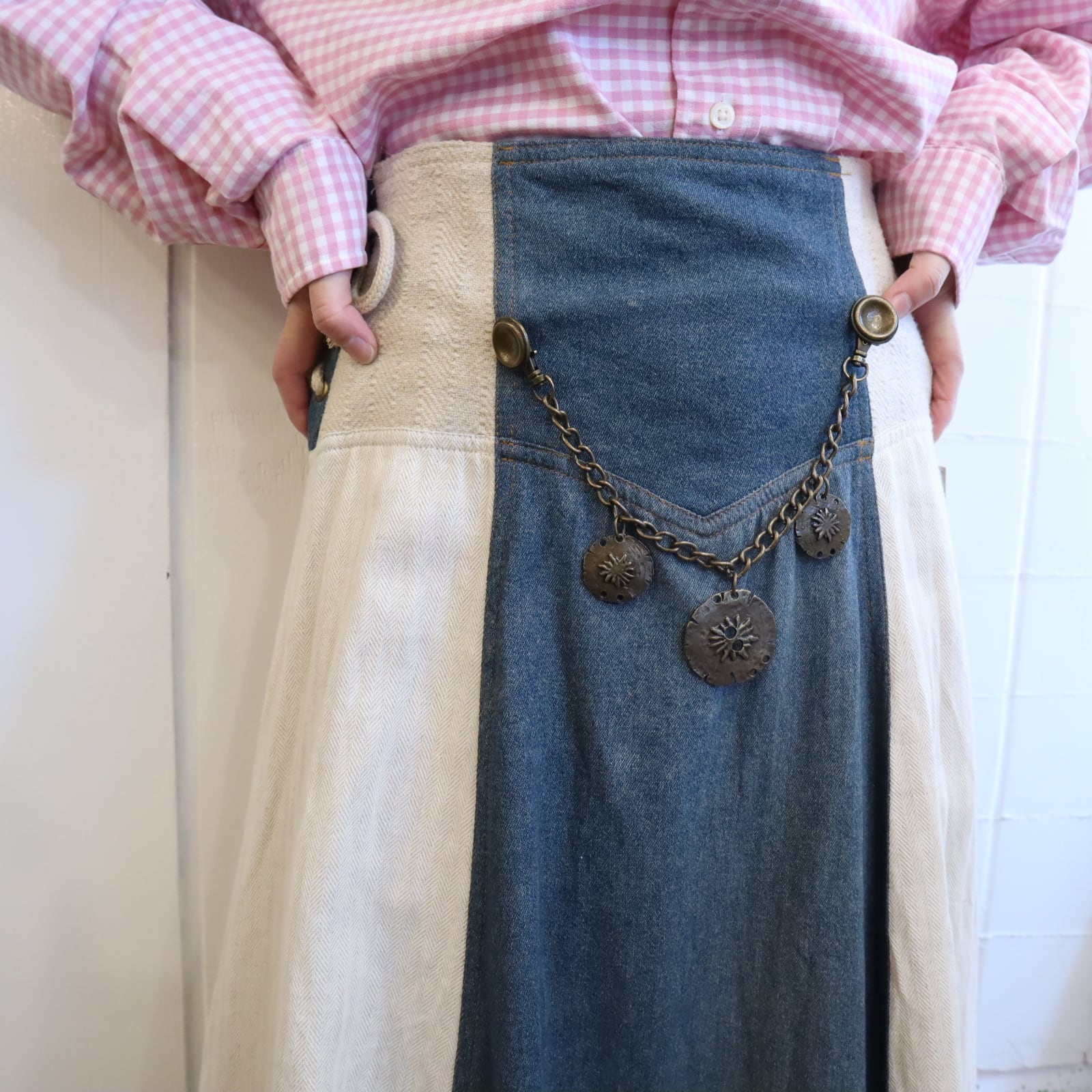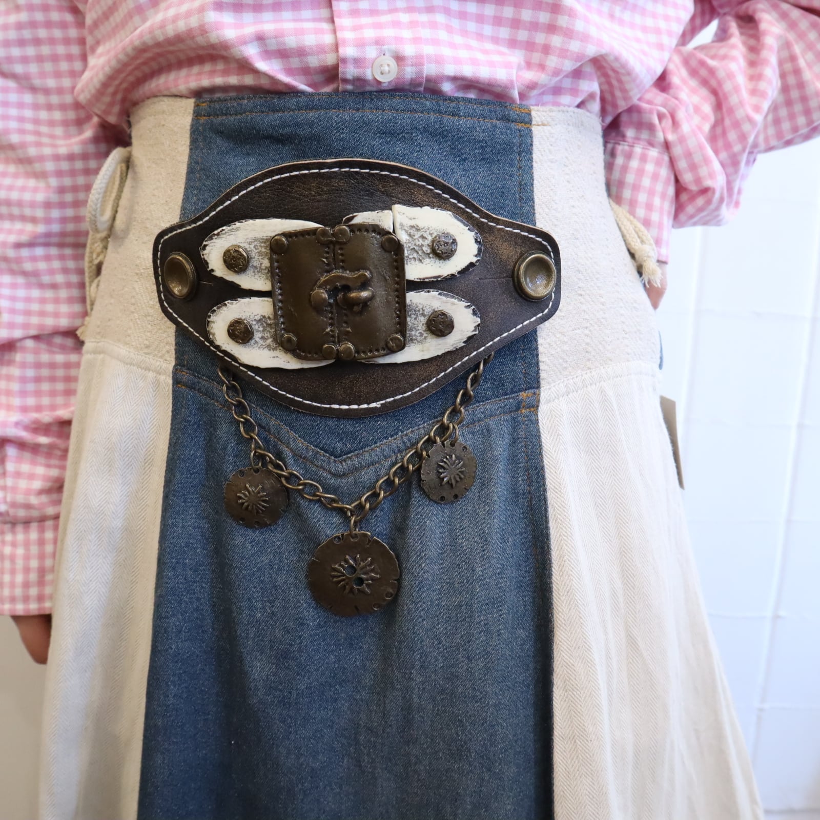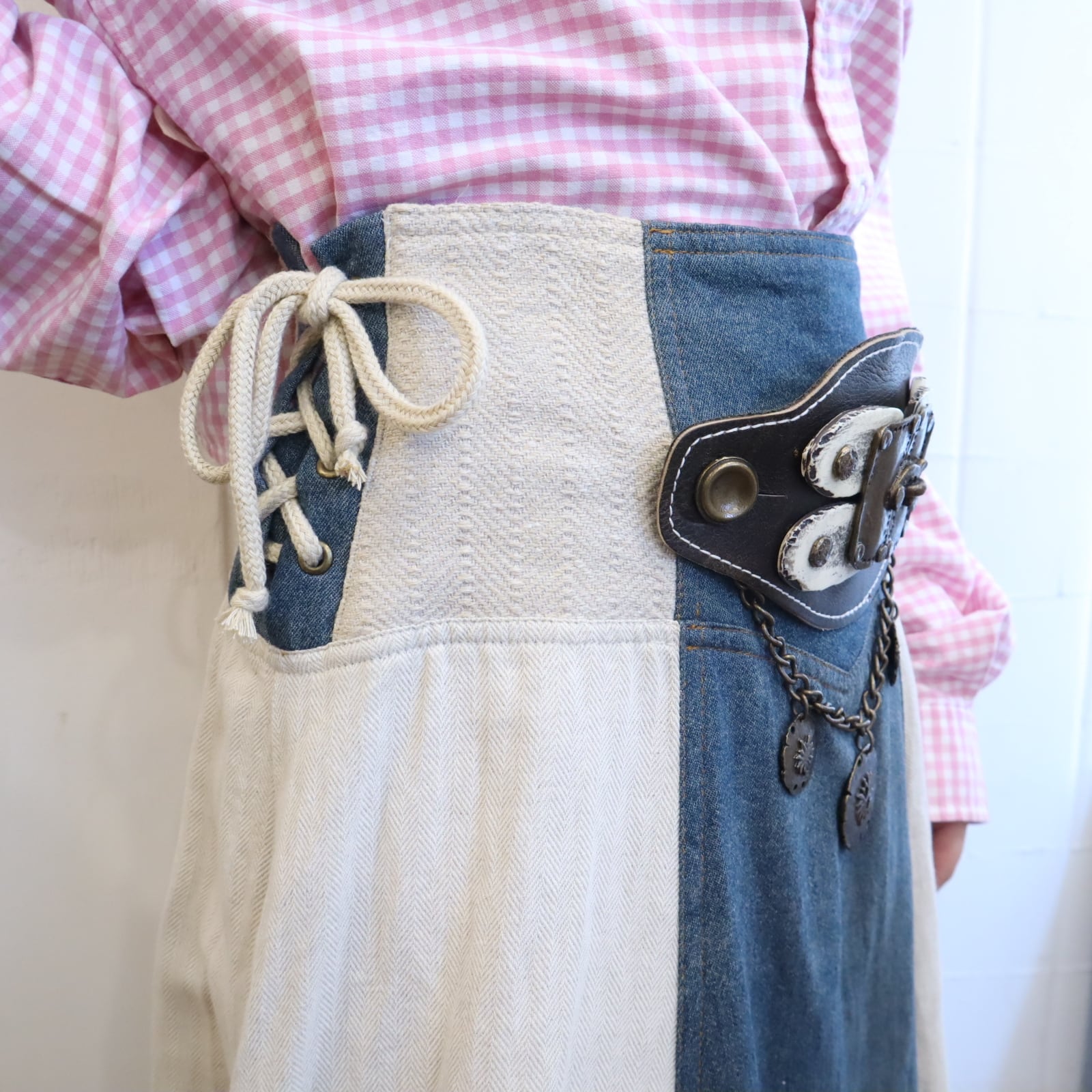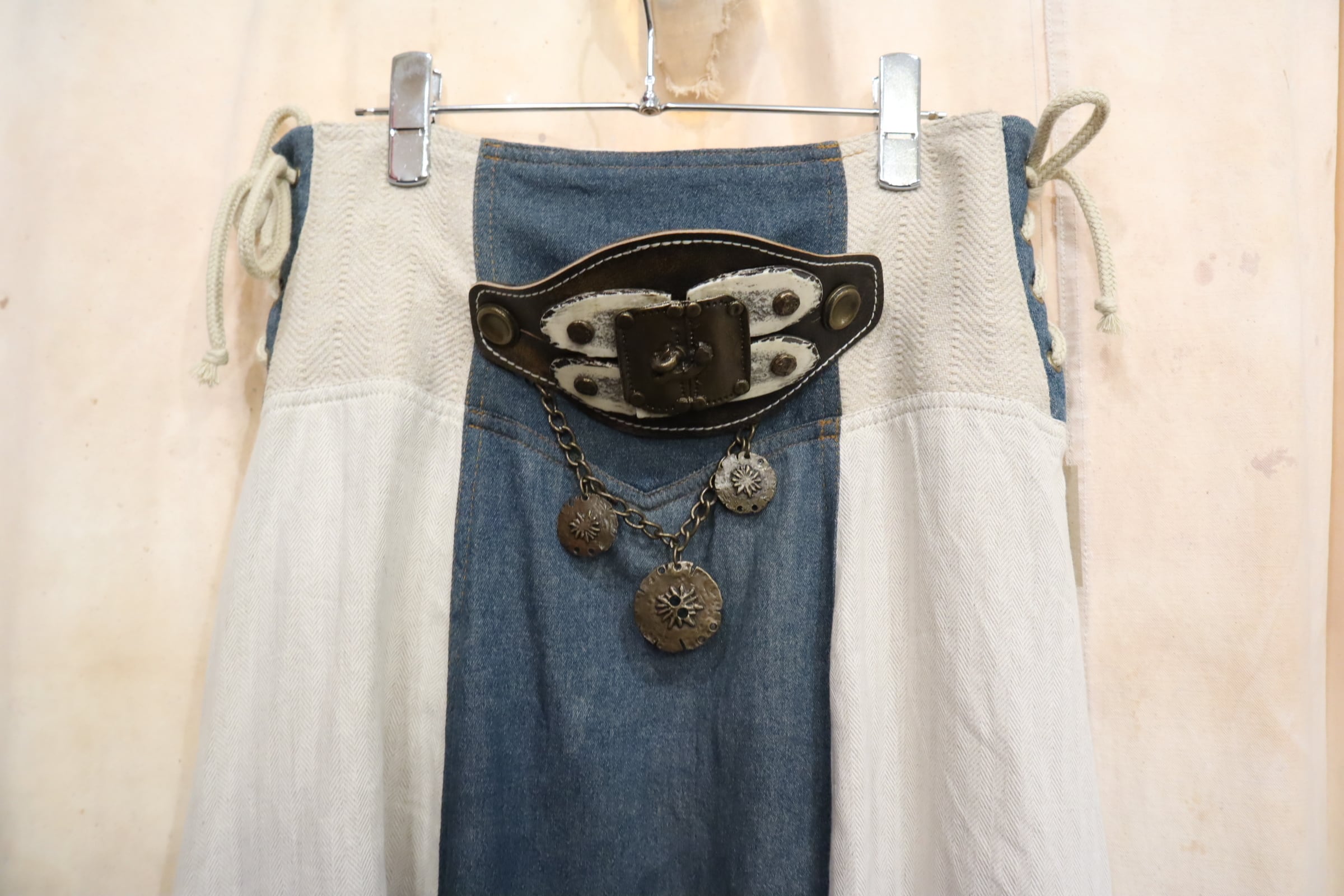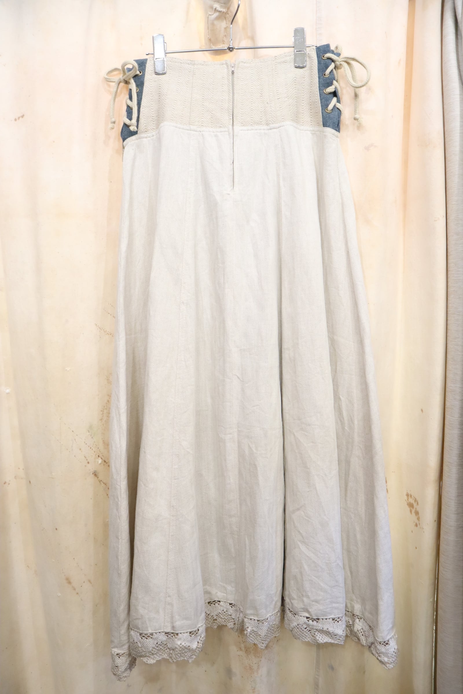 ivory×dullblue leather accessory tyrol long skirt [l-5108]