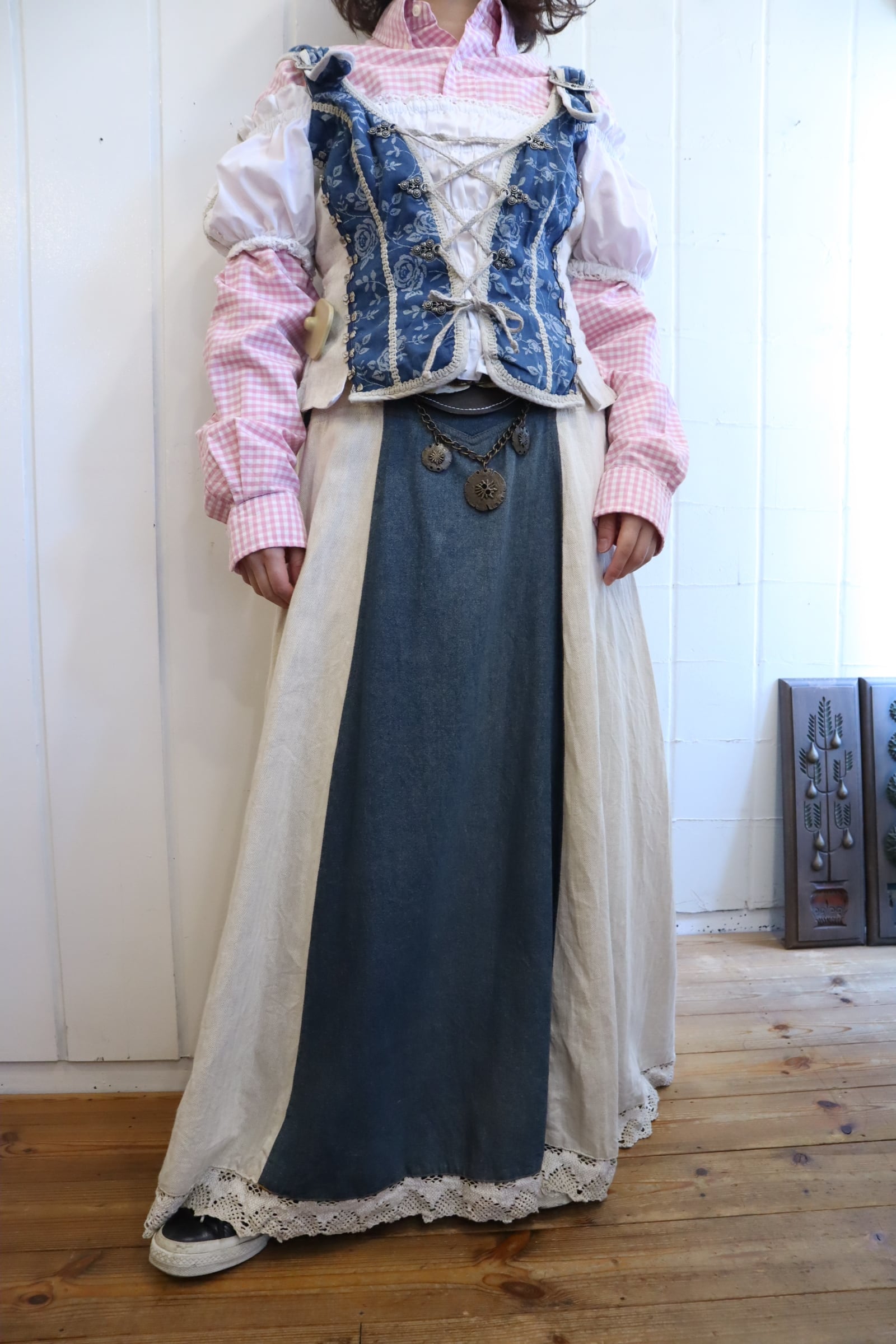 取り外せる装飾やサイドのレースアップが可愛いチロルロングスカート*