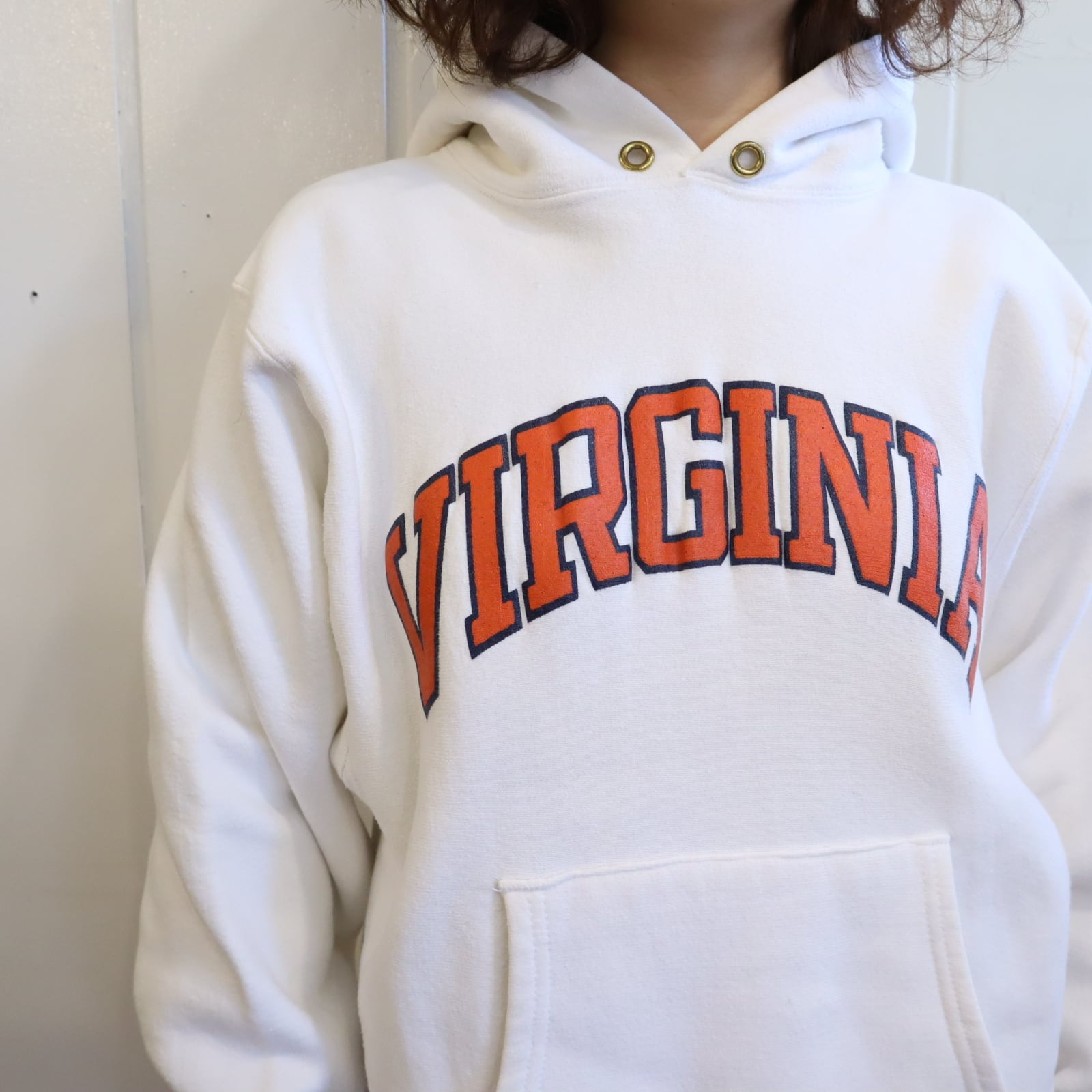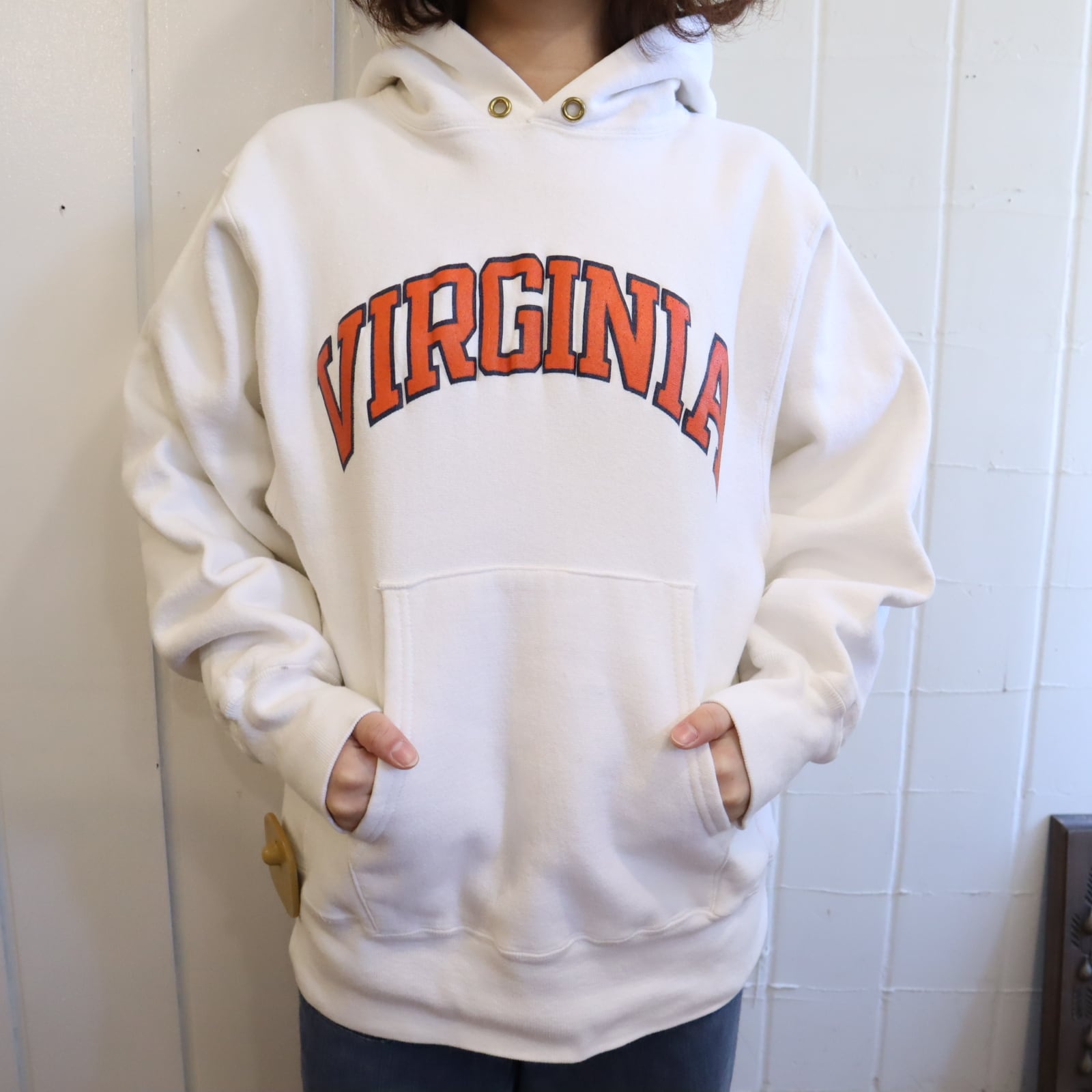 白地に映えるオレンジのカレッジプリントが可愛いリバース。