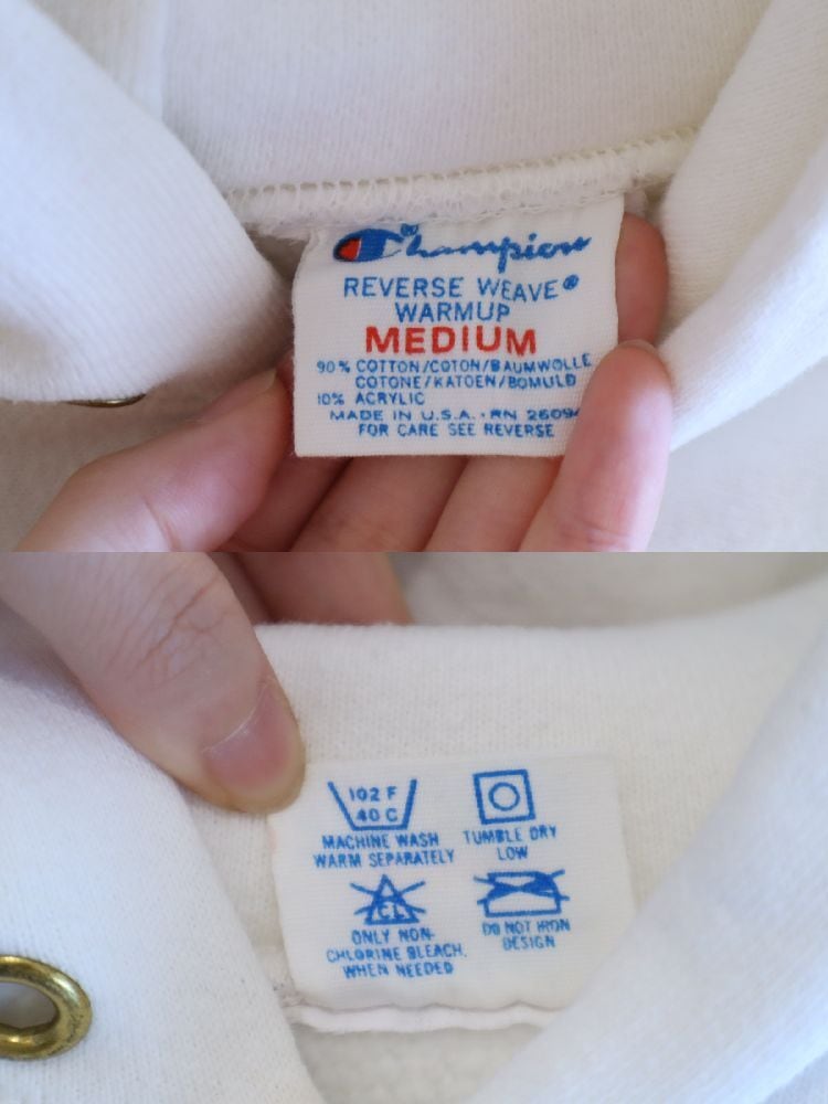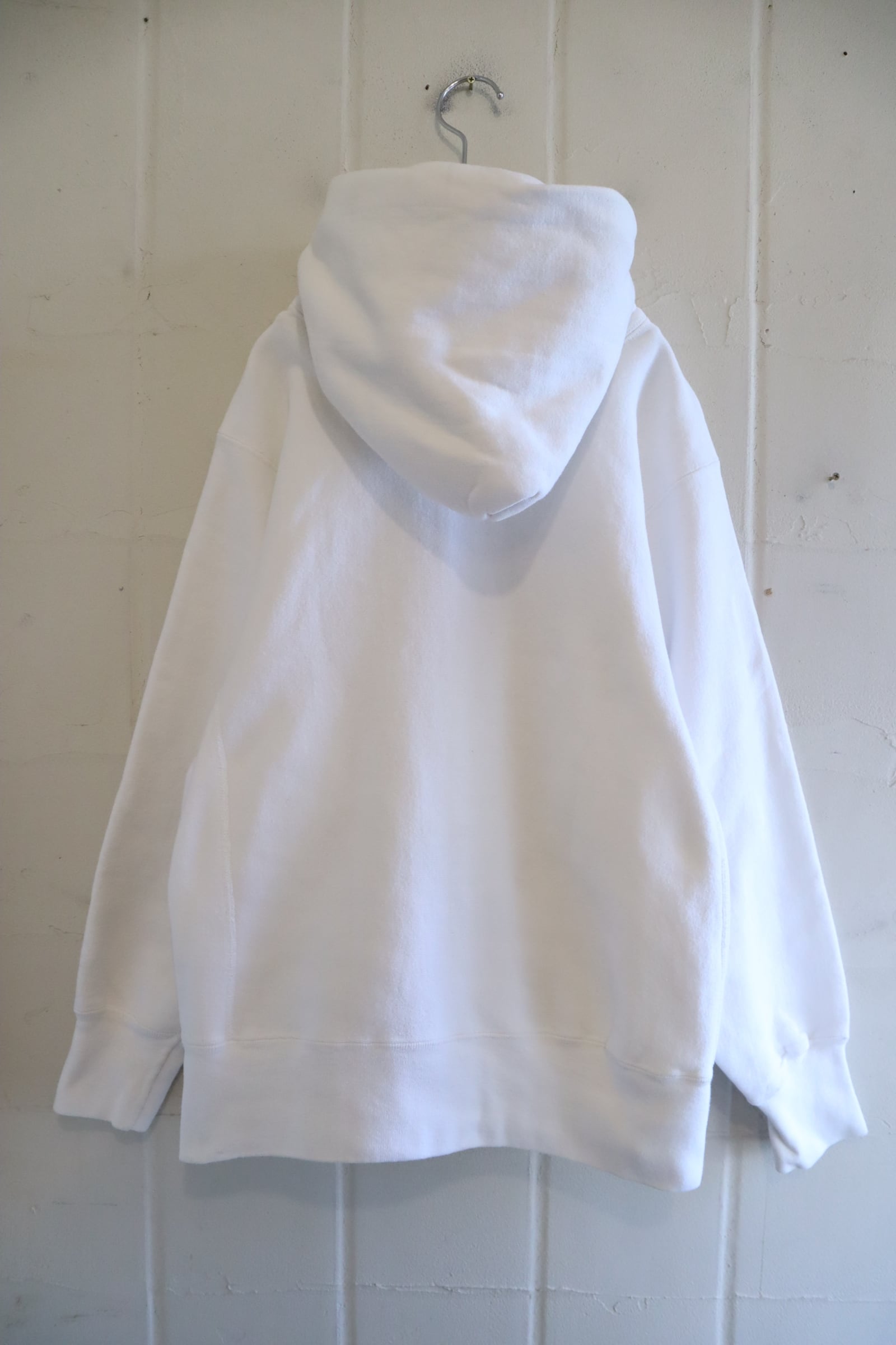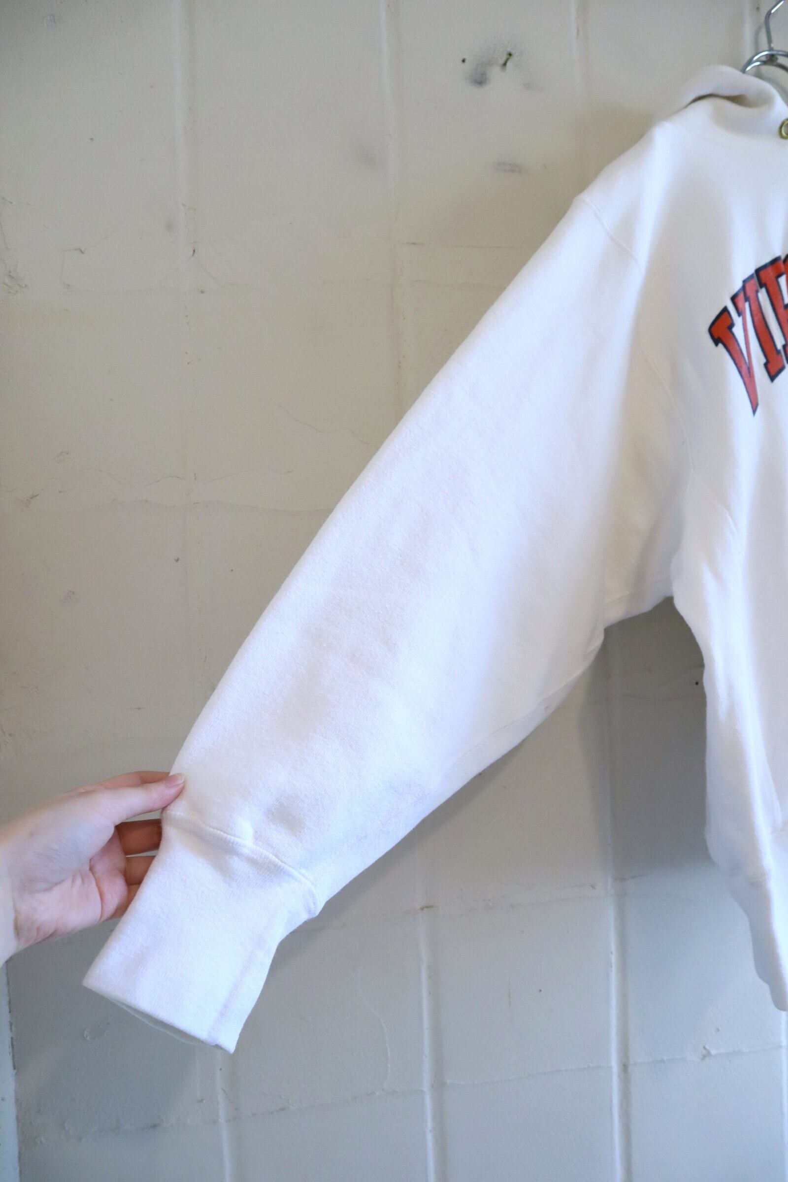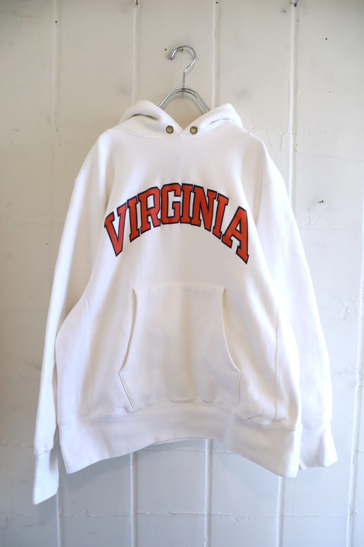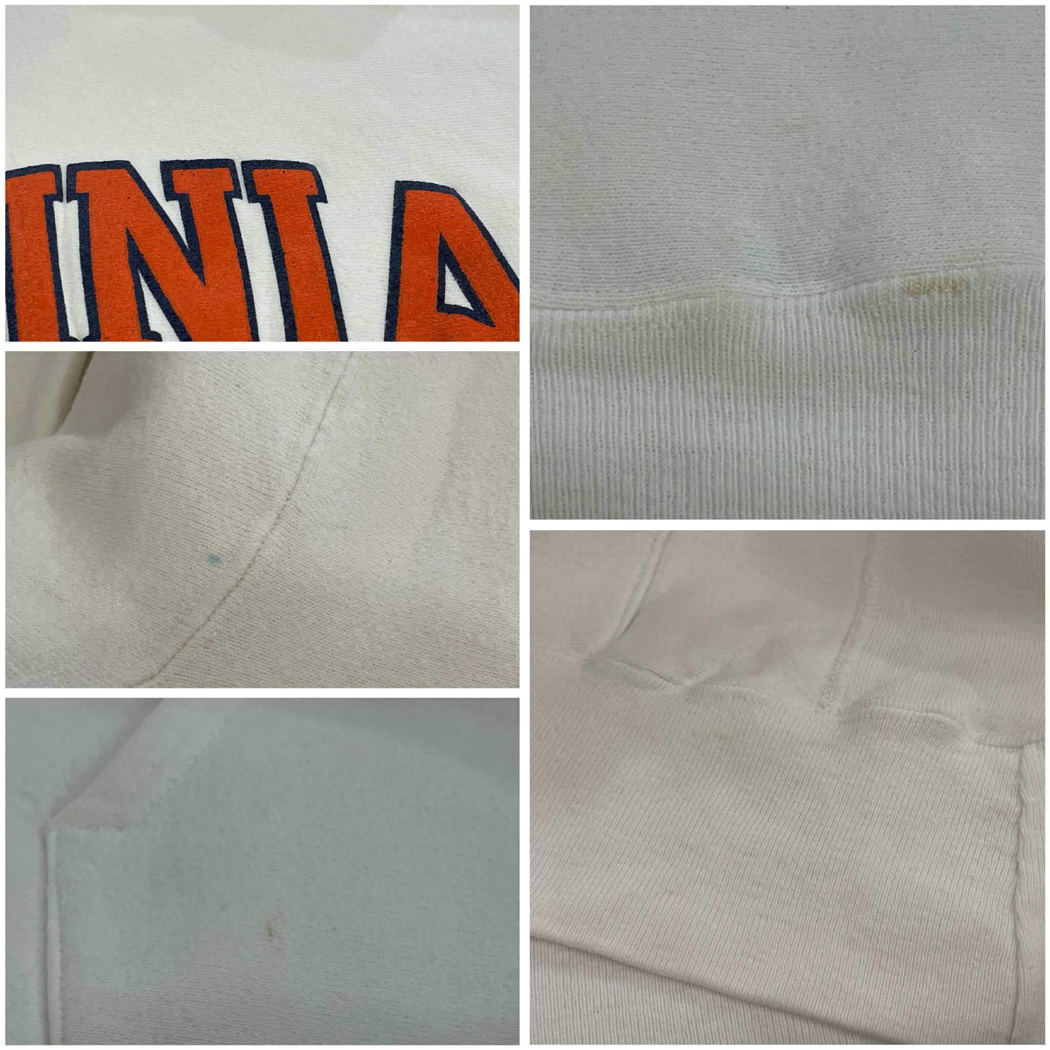80s white×orange college print reverse weave hoodie sweat [l-5110]