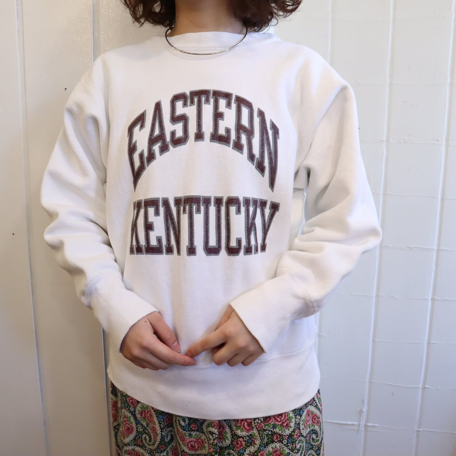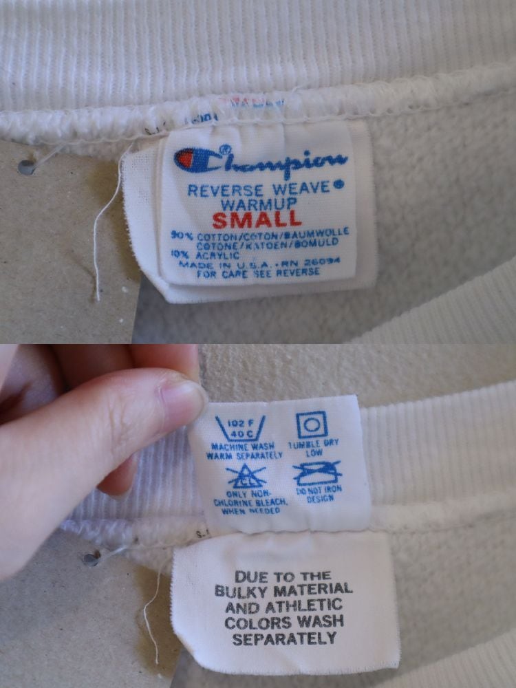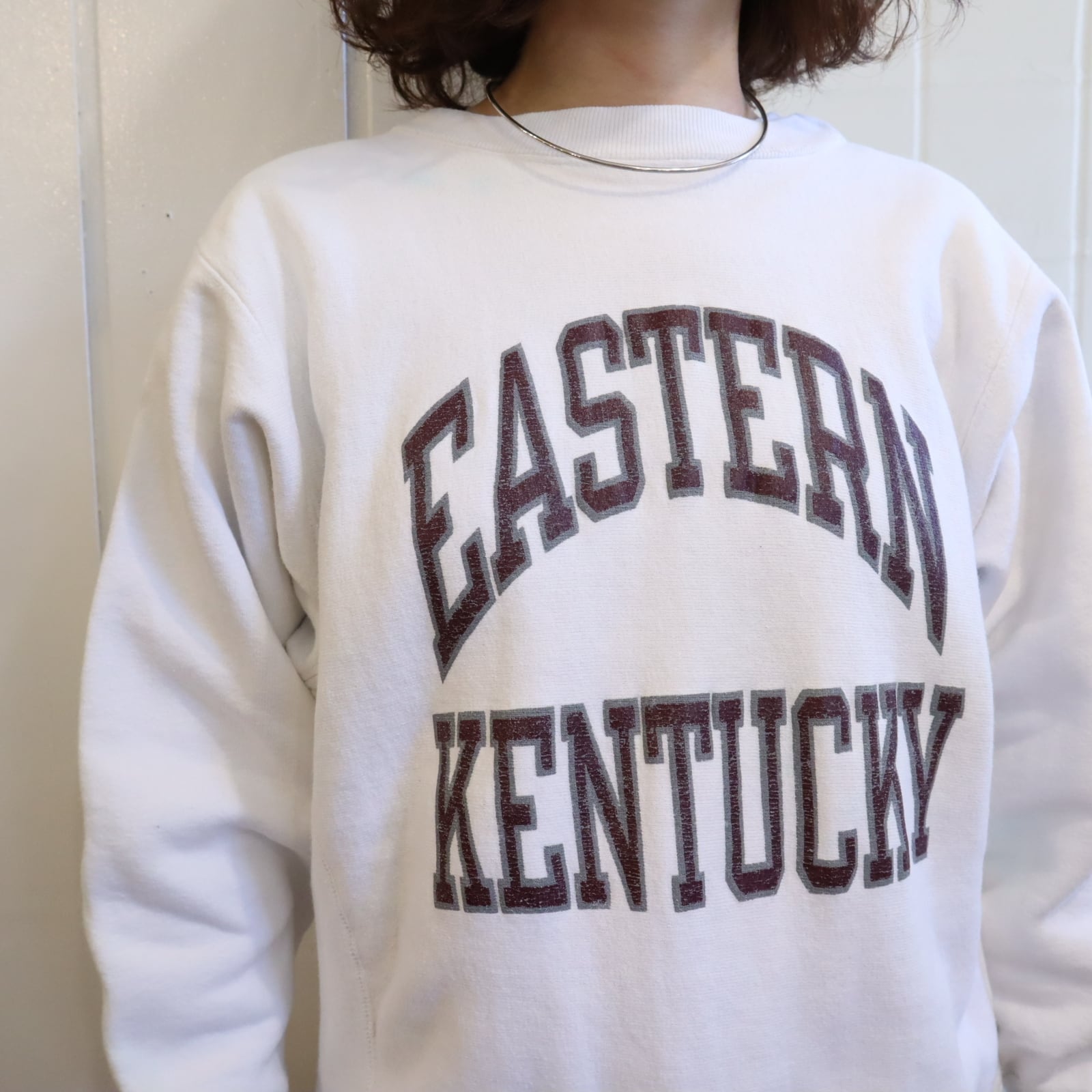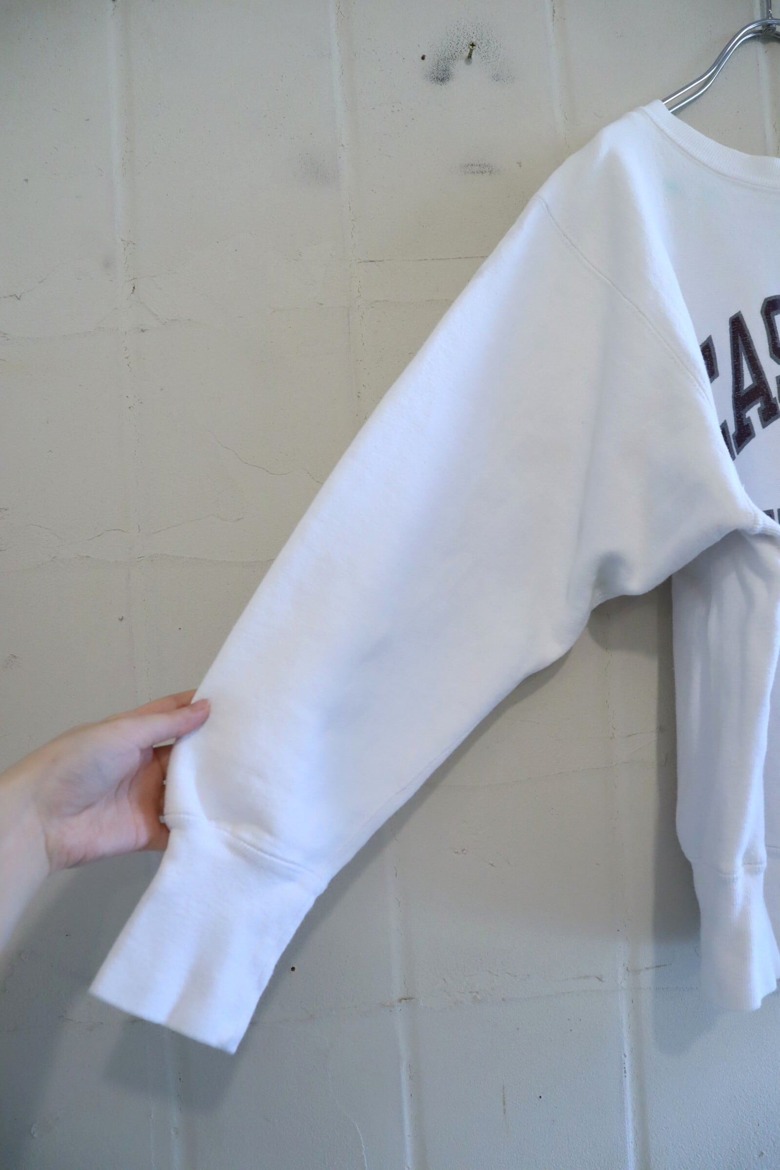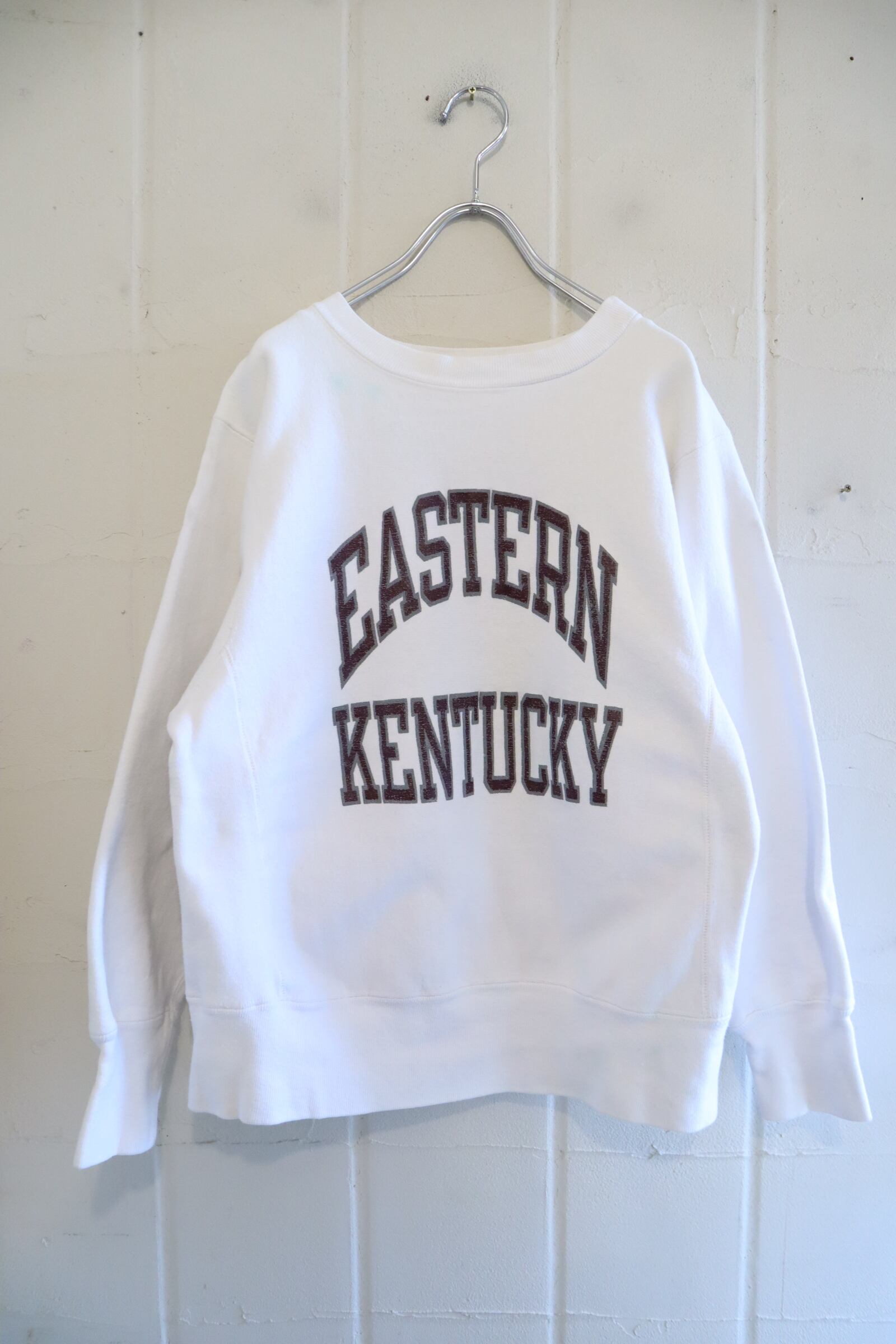 80s white×brown college print reverse weave sweat [l-5111]