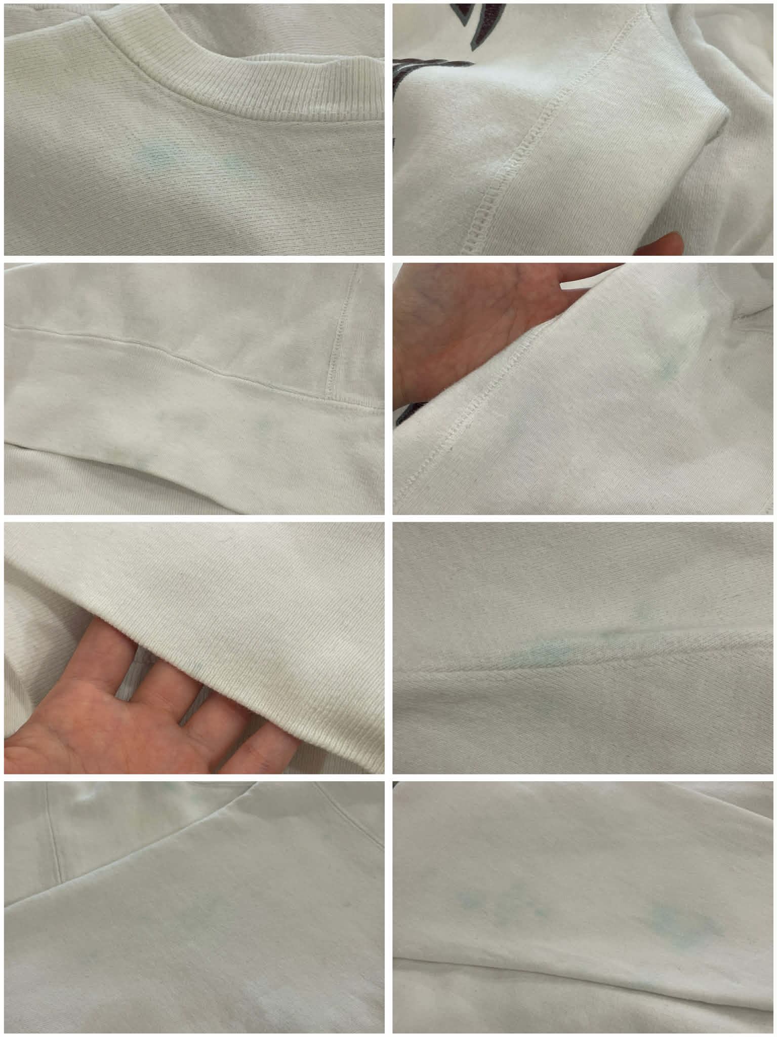 また所々に汚れやキズ、プリントのひび割れ、ネックにステッチのホツレが見受けられますが、いずれも古着の味として着ていただけるかと思います。