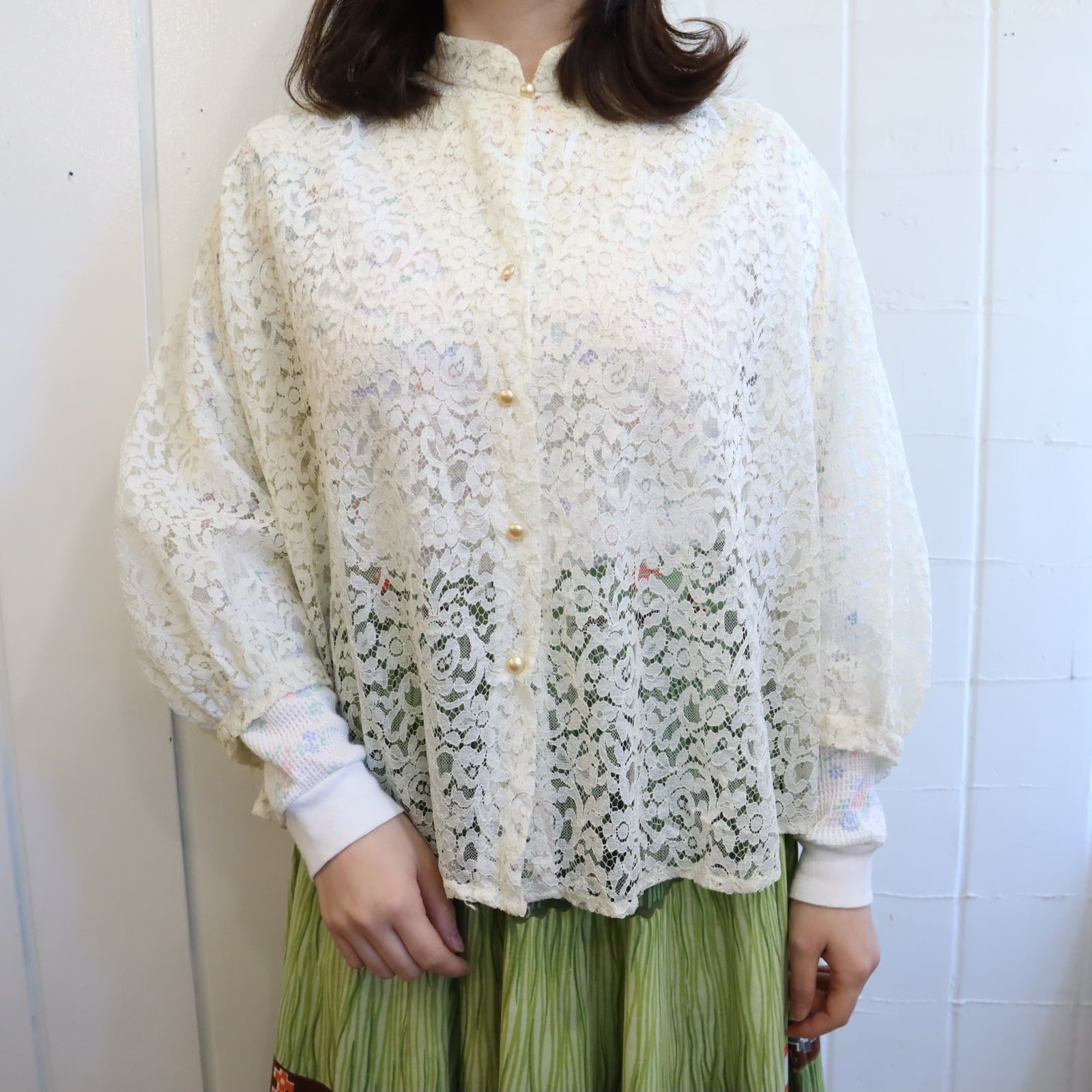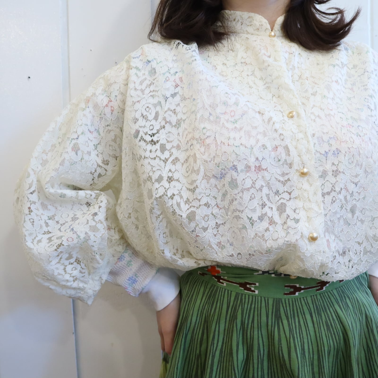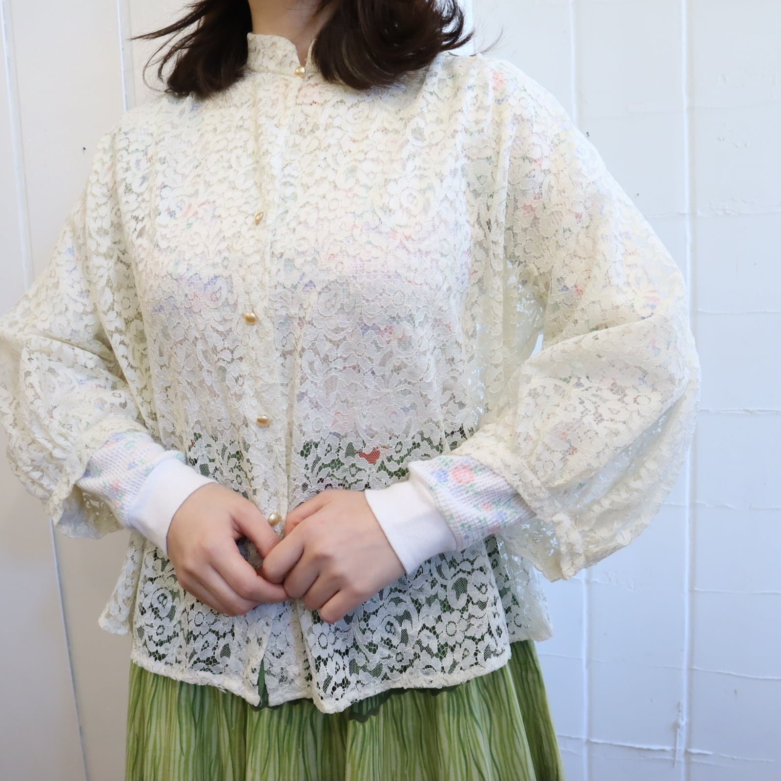 ふわっとしたお袖がキュートな総レースブラウスです。
