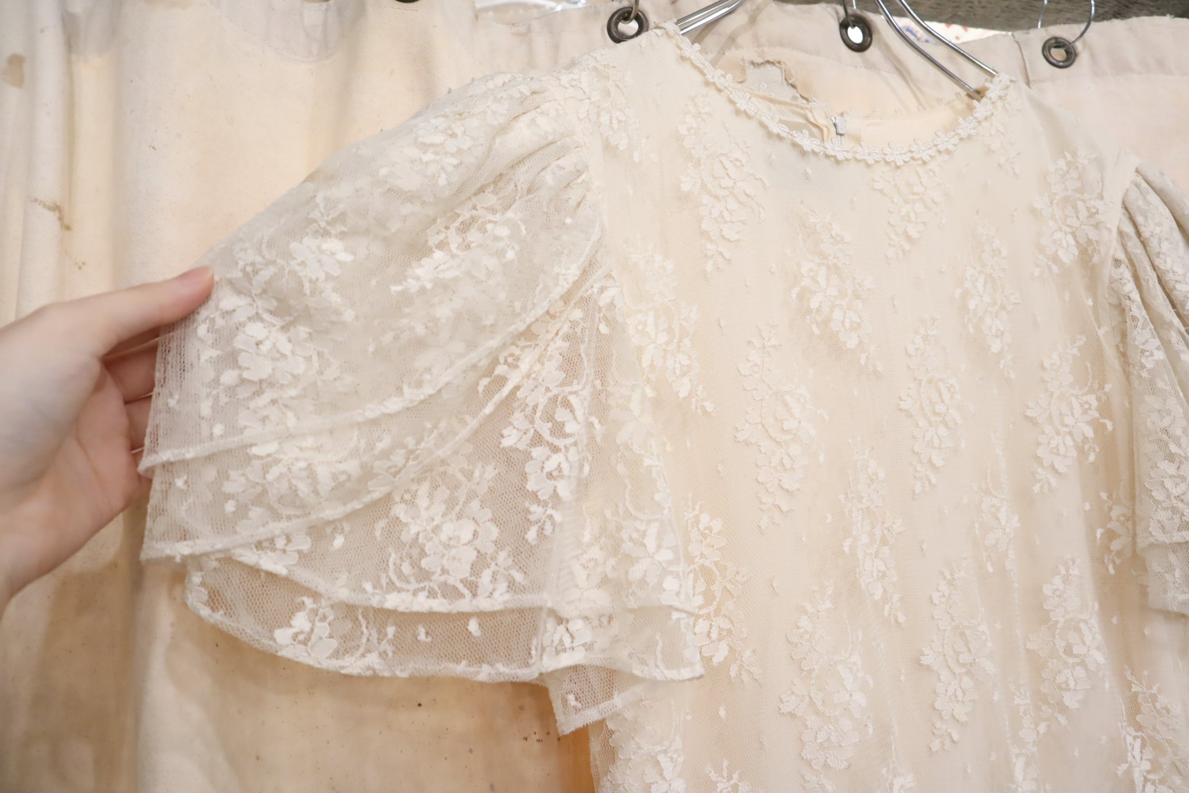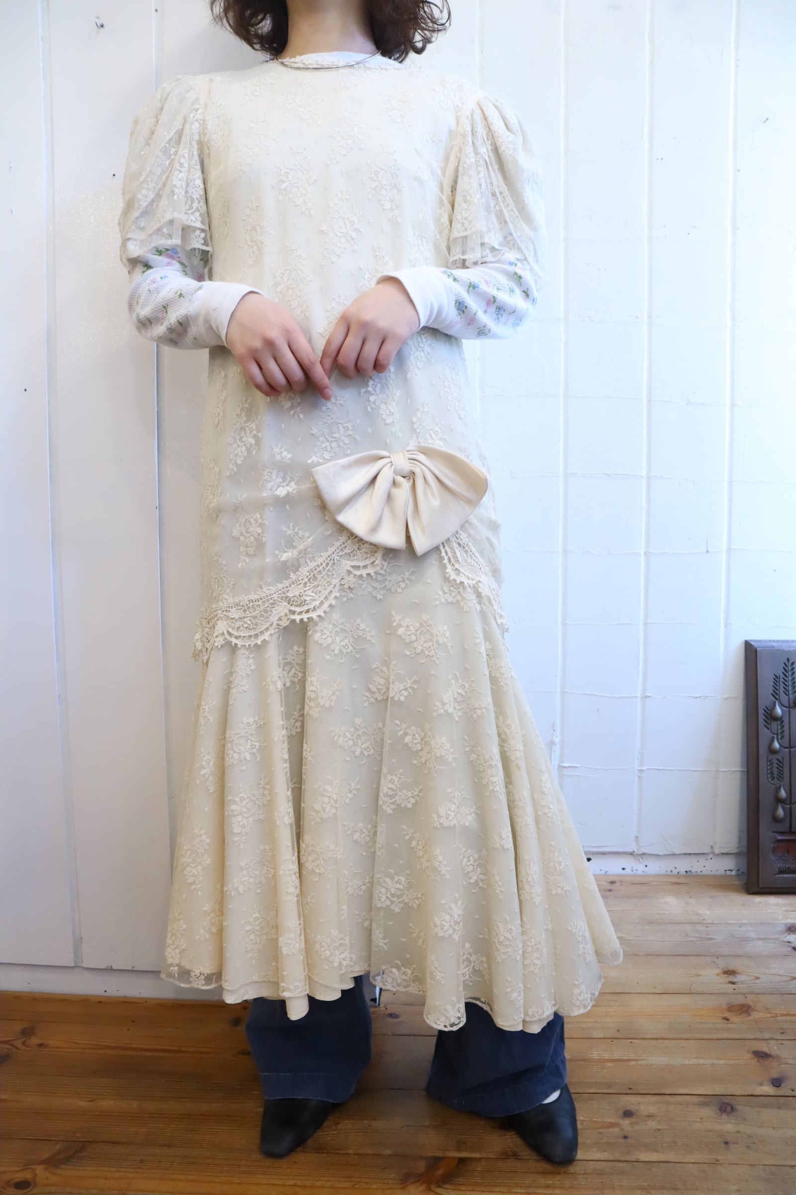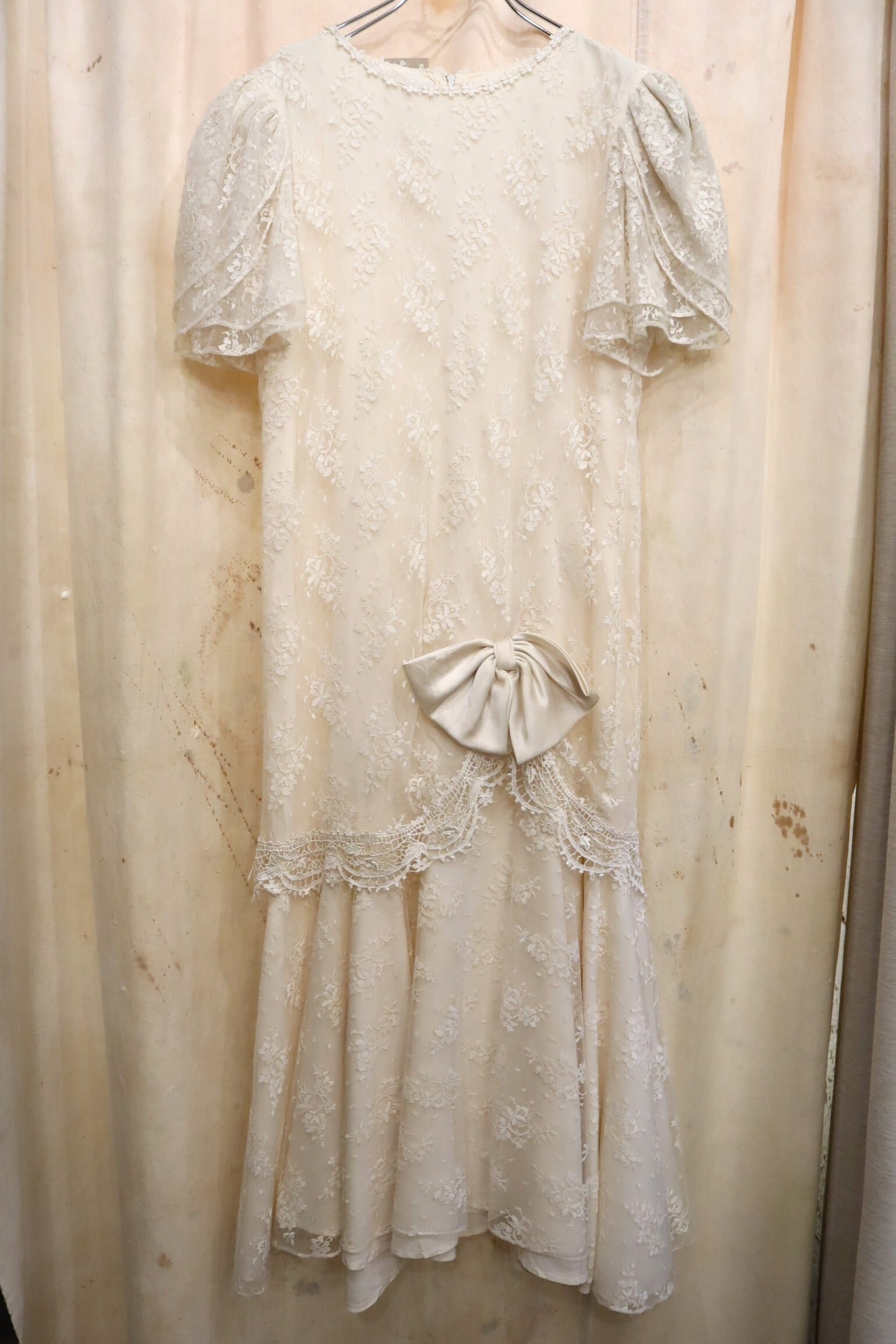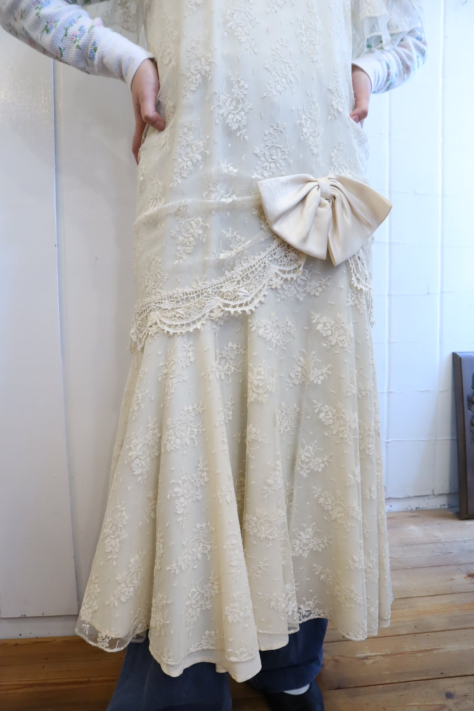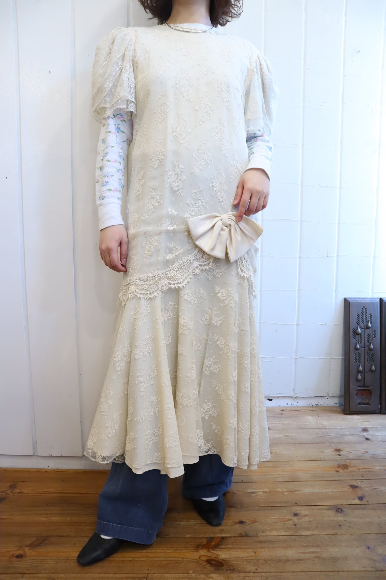 offwhite lace&ribbon short sleeve dress [l-5114]