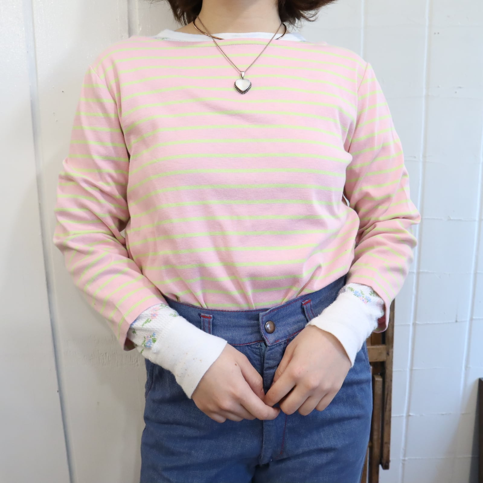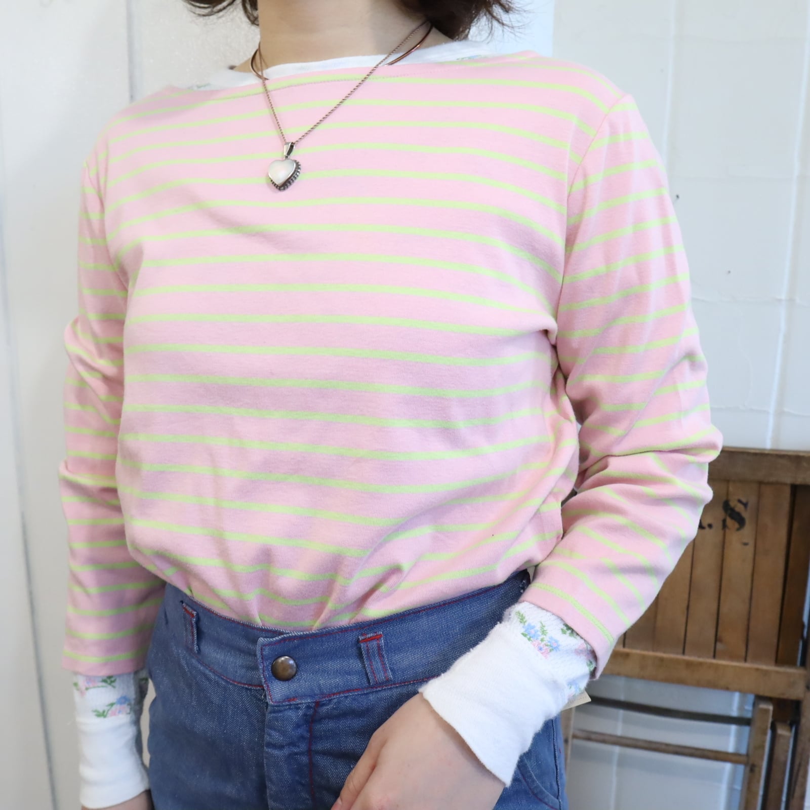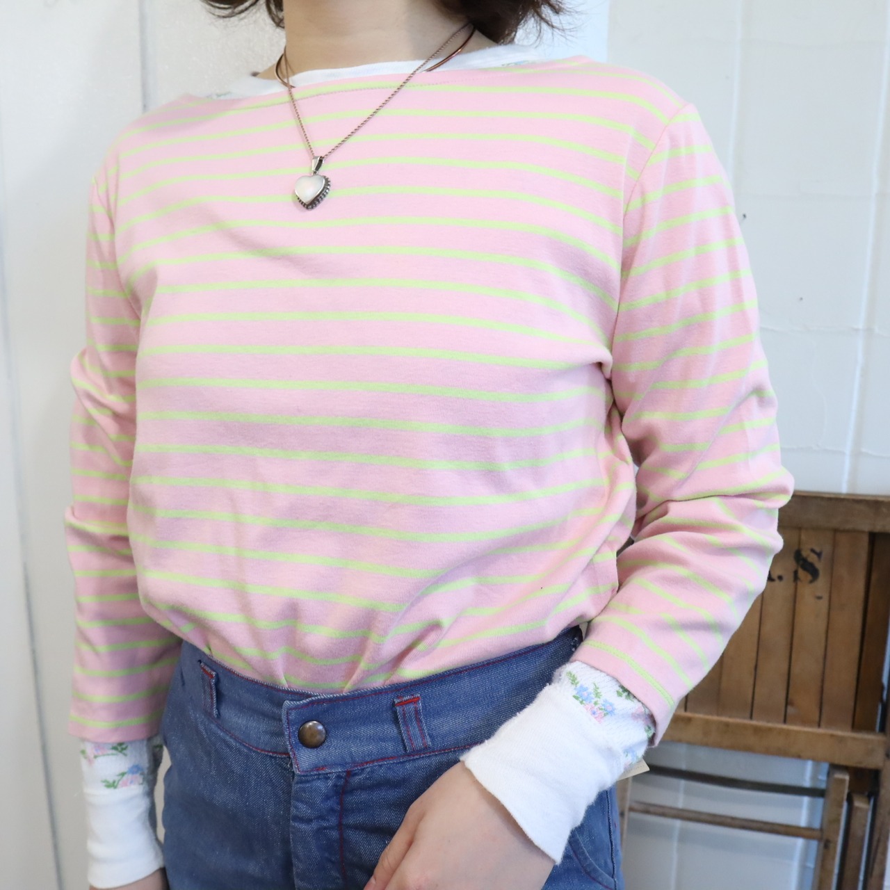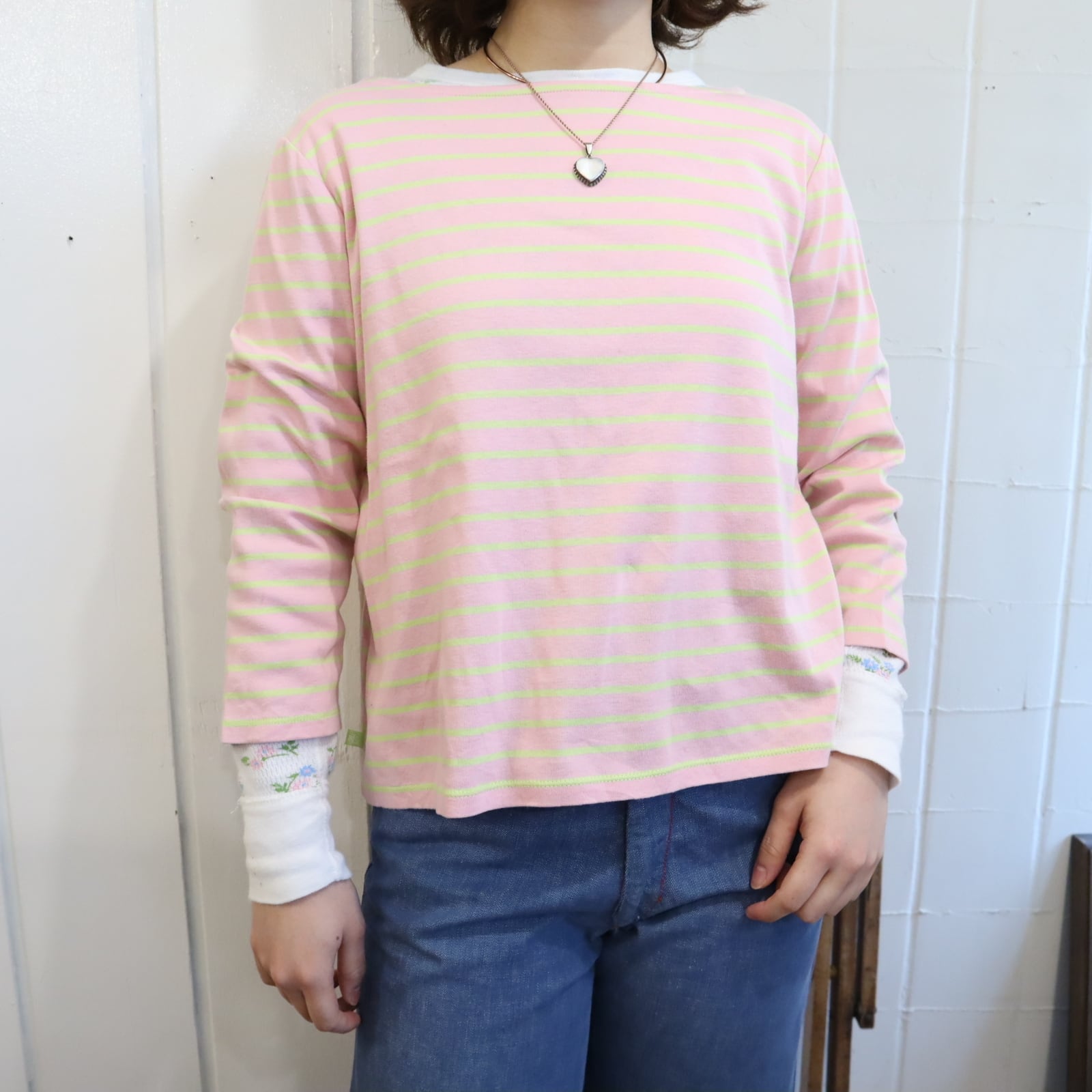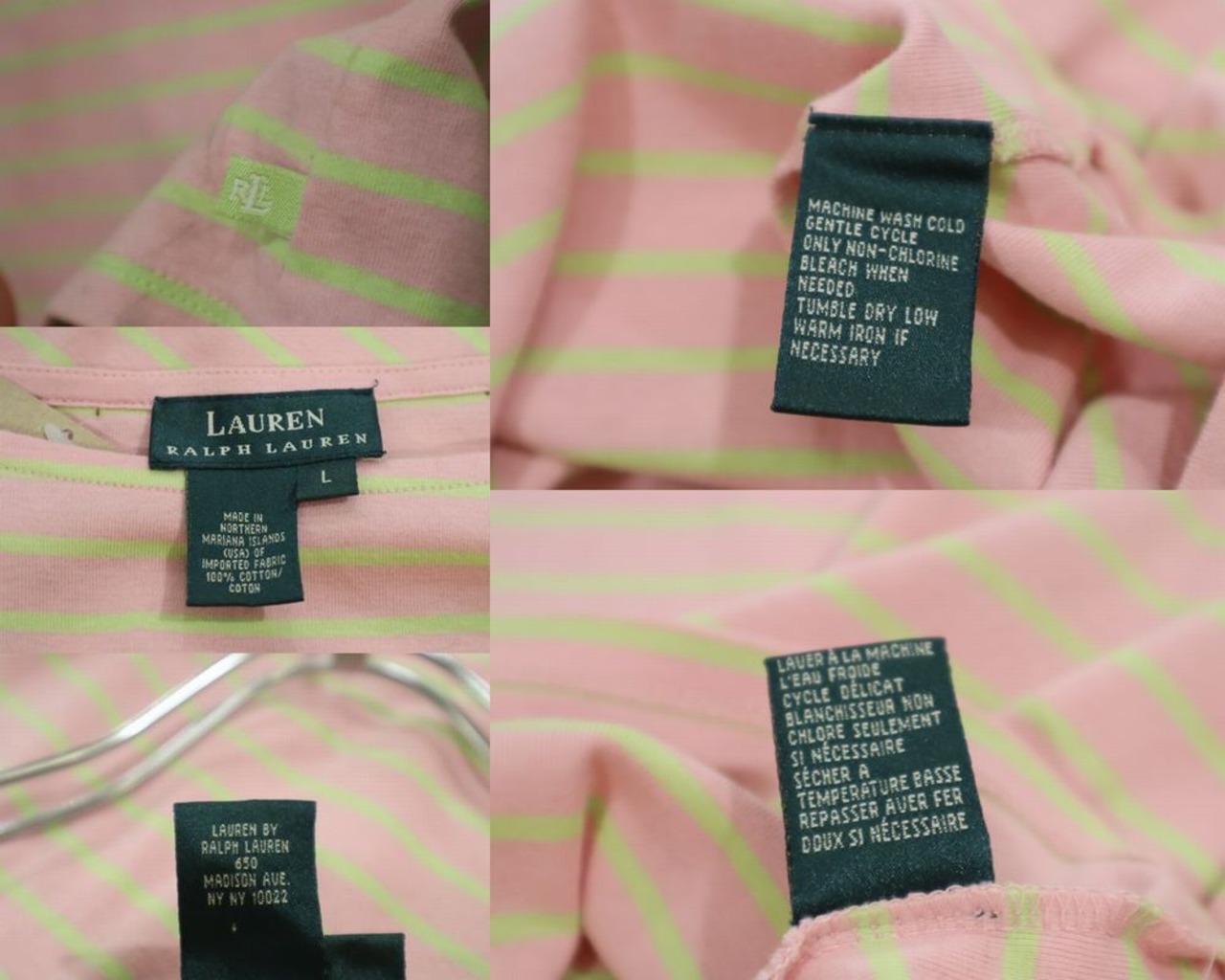 Ralph Lauren pink×limegreen border tops [l-5119]