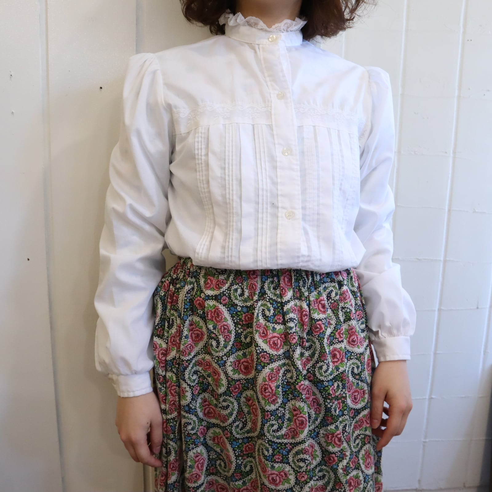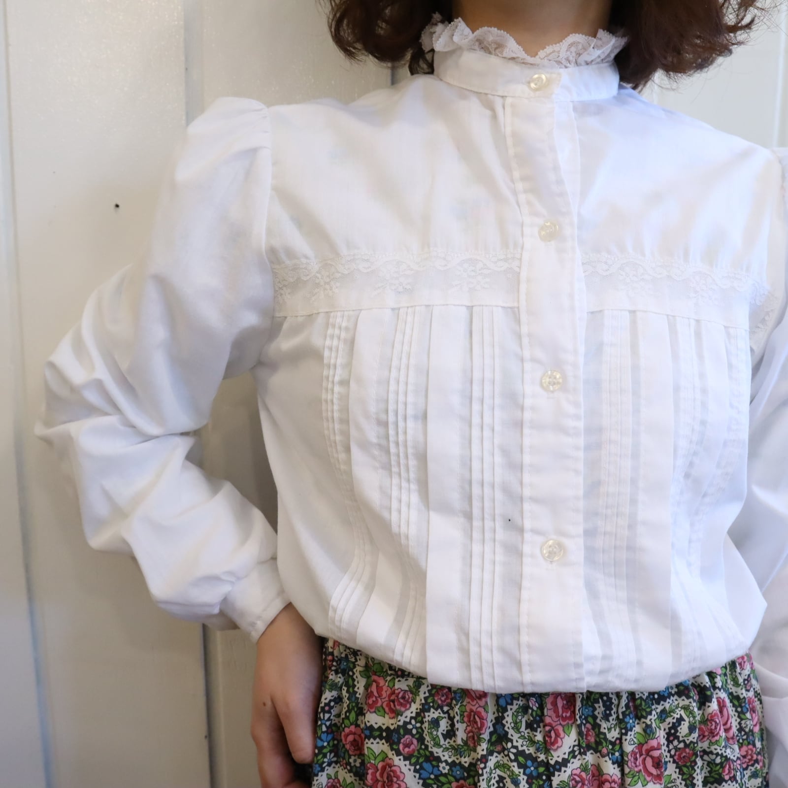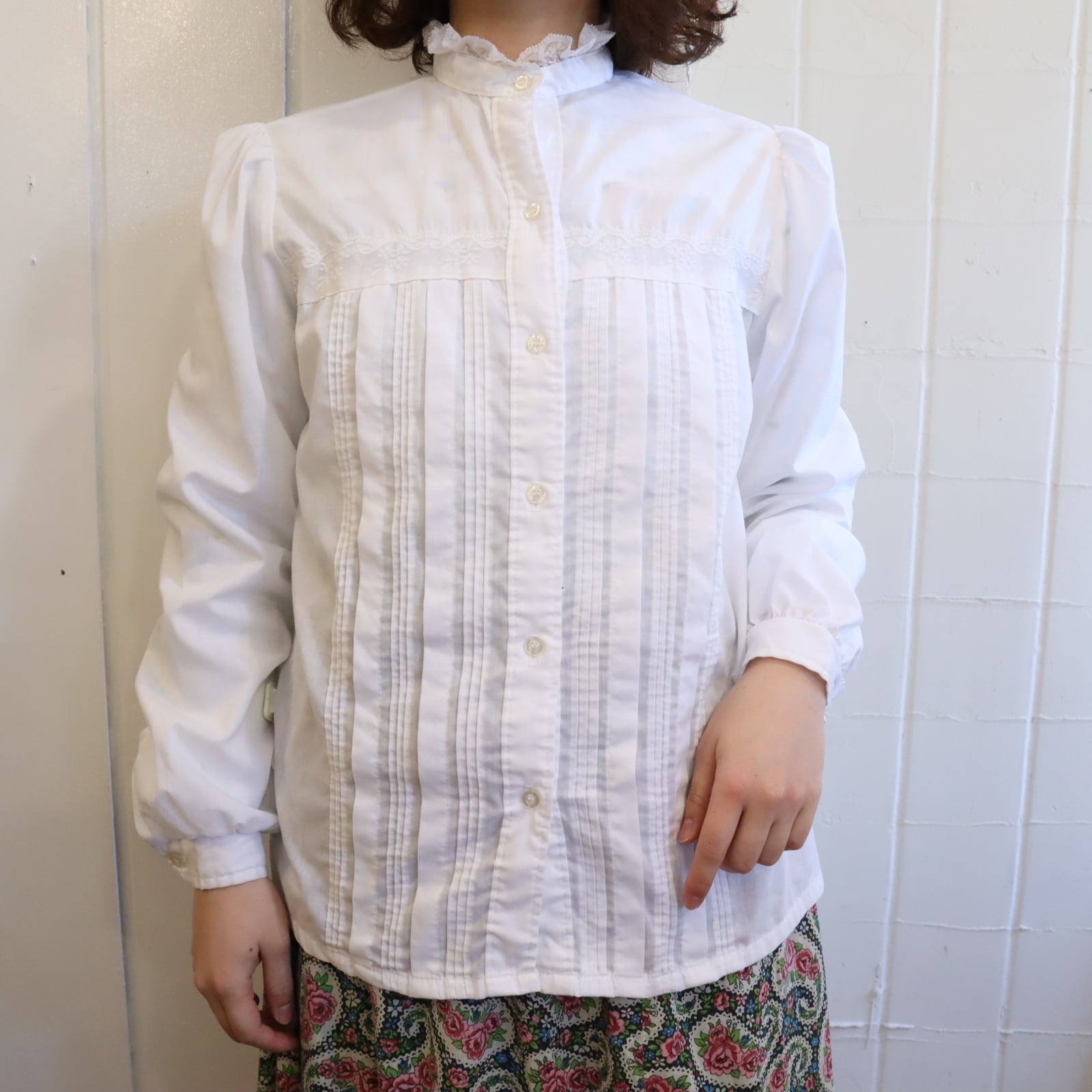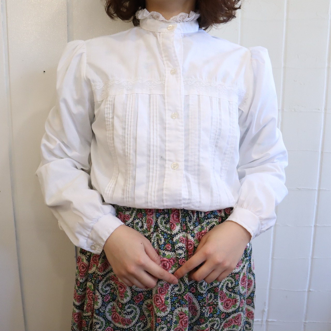 white stand collar blouse [l-5122]