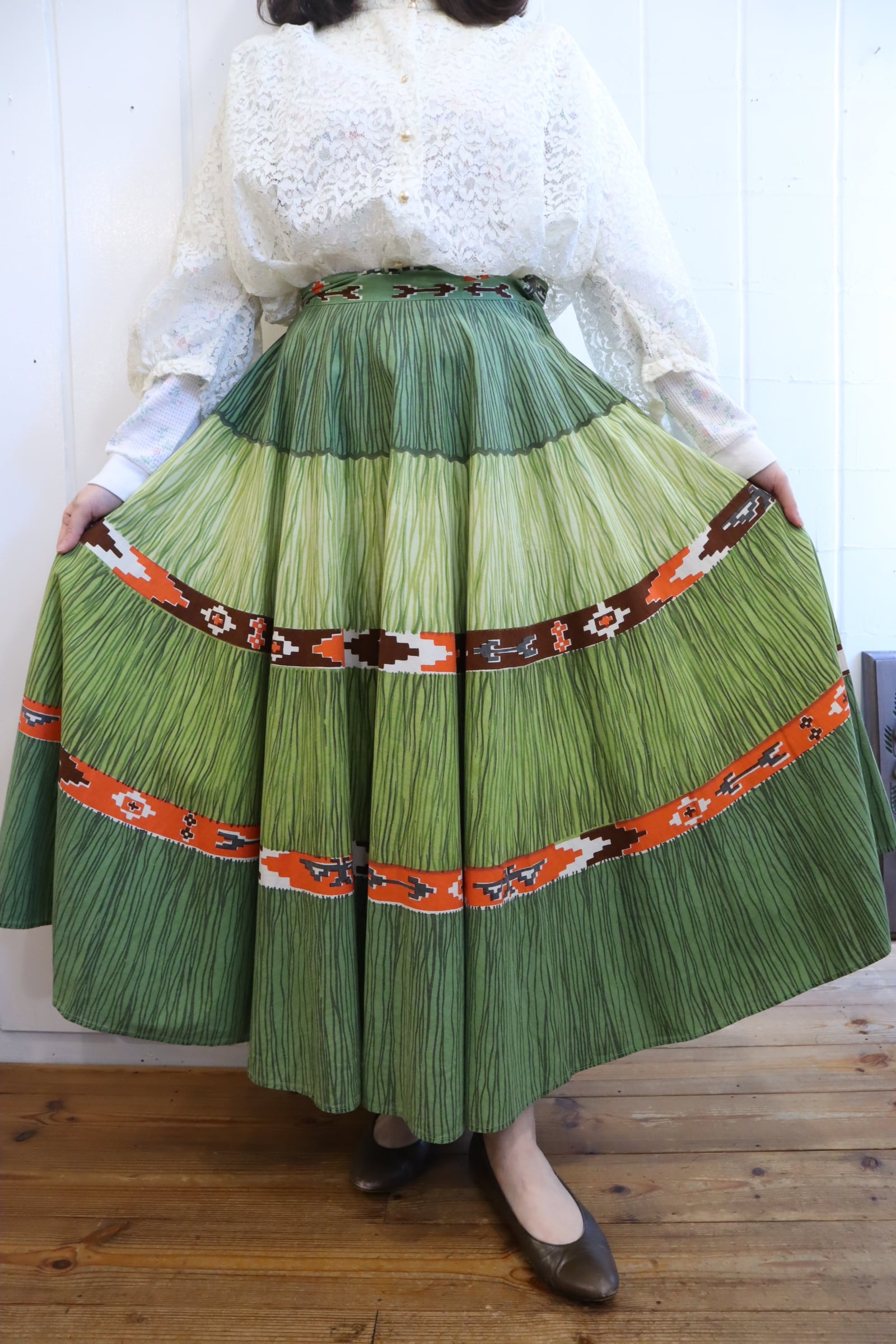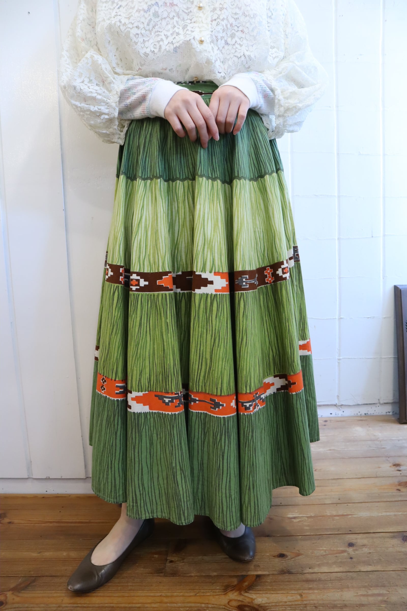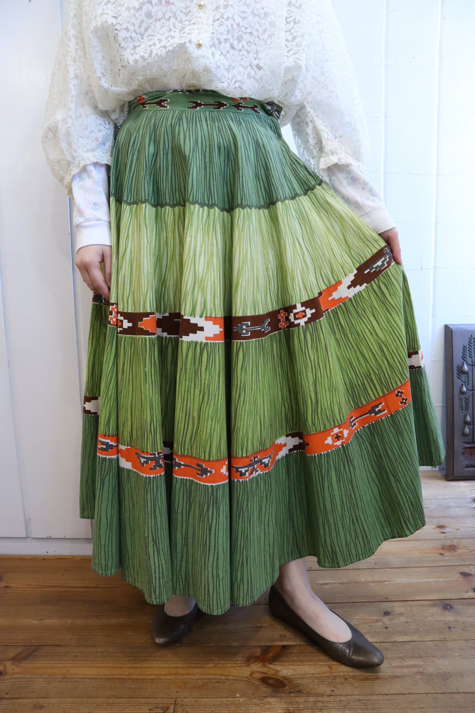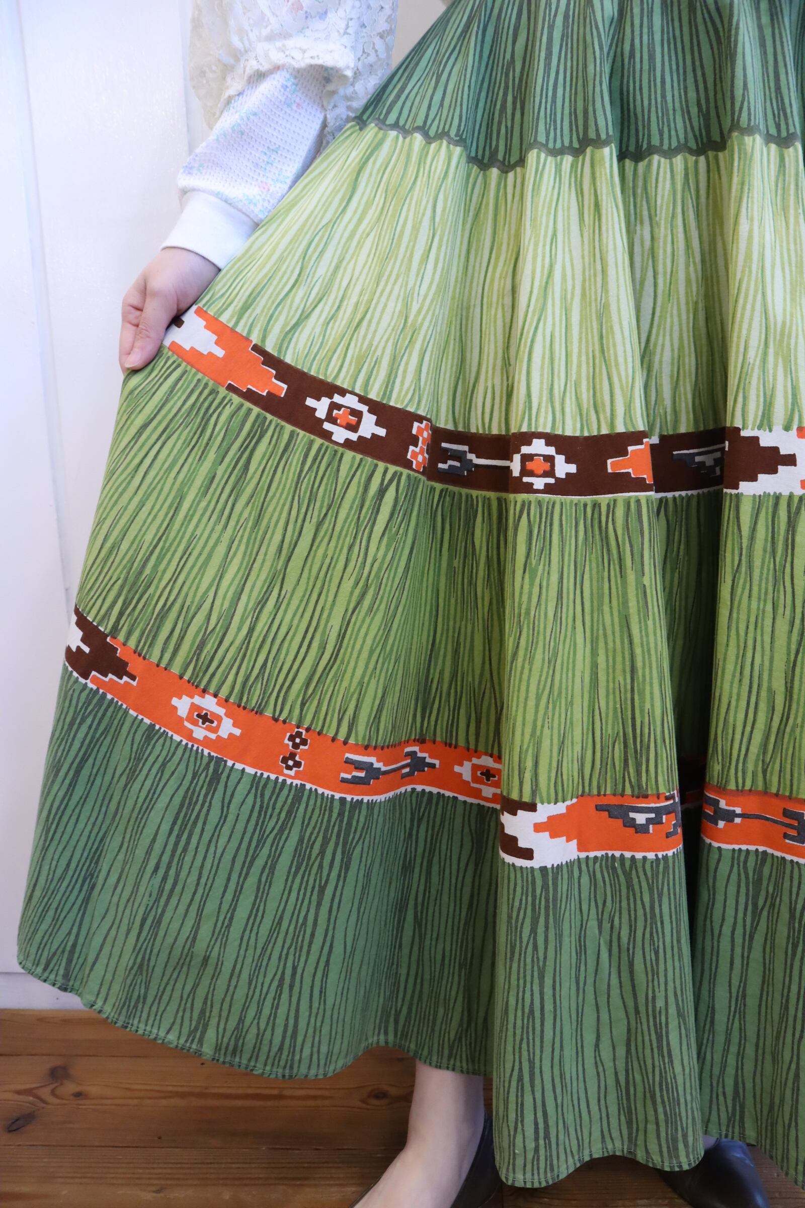グリーン×オレンジのカラーリングが可愛い50-60sスカート*
