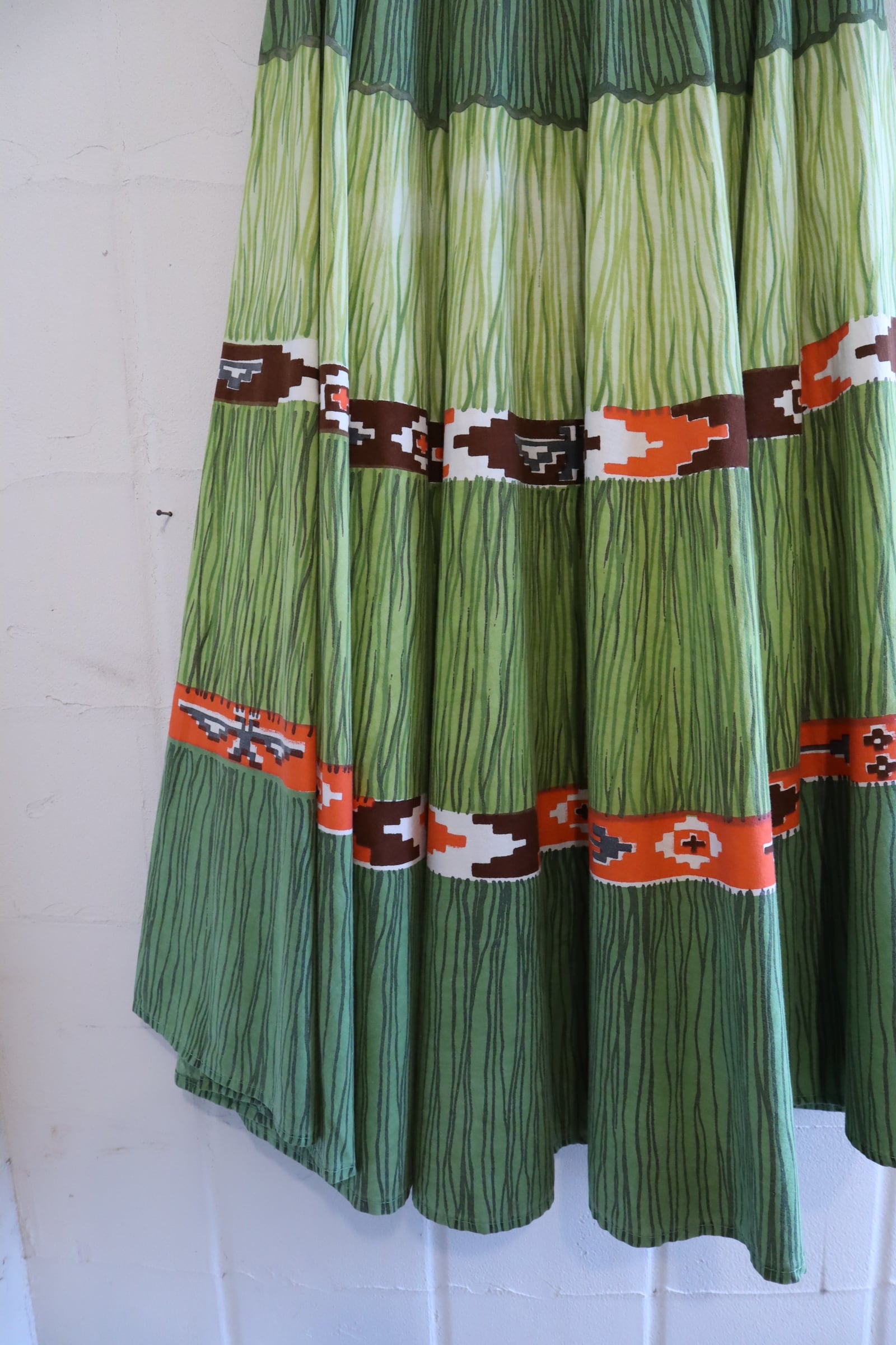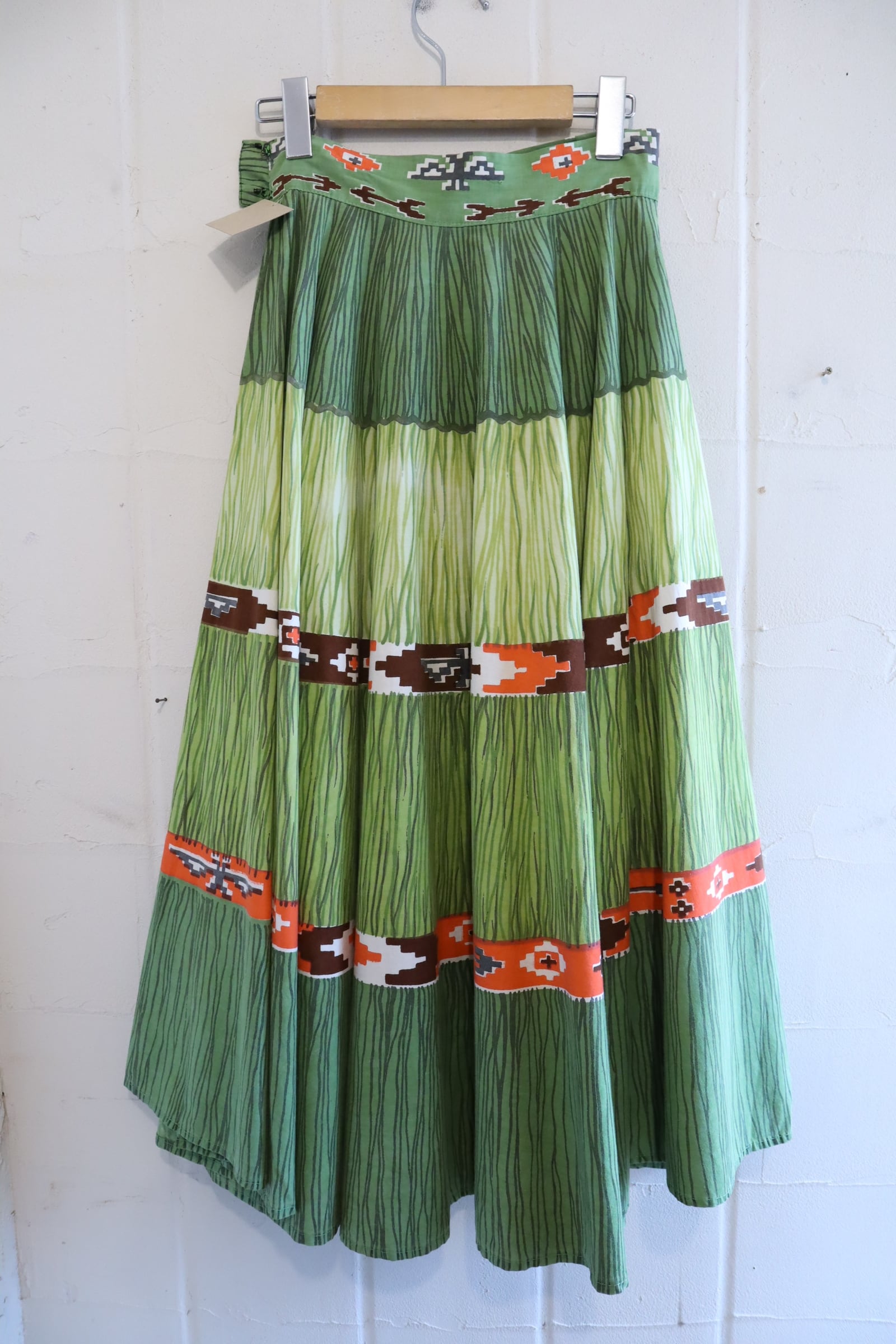 50-60s dullgreen×orange line design skirt [l-5135]