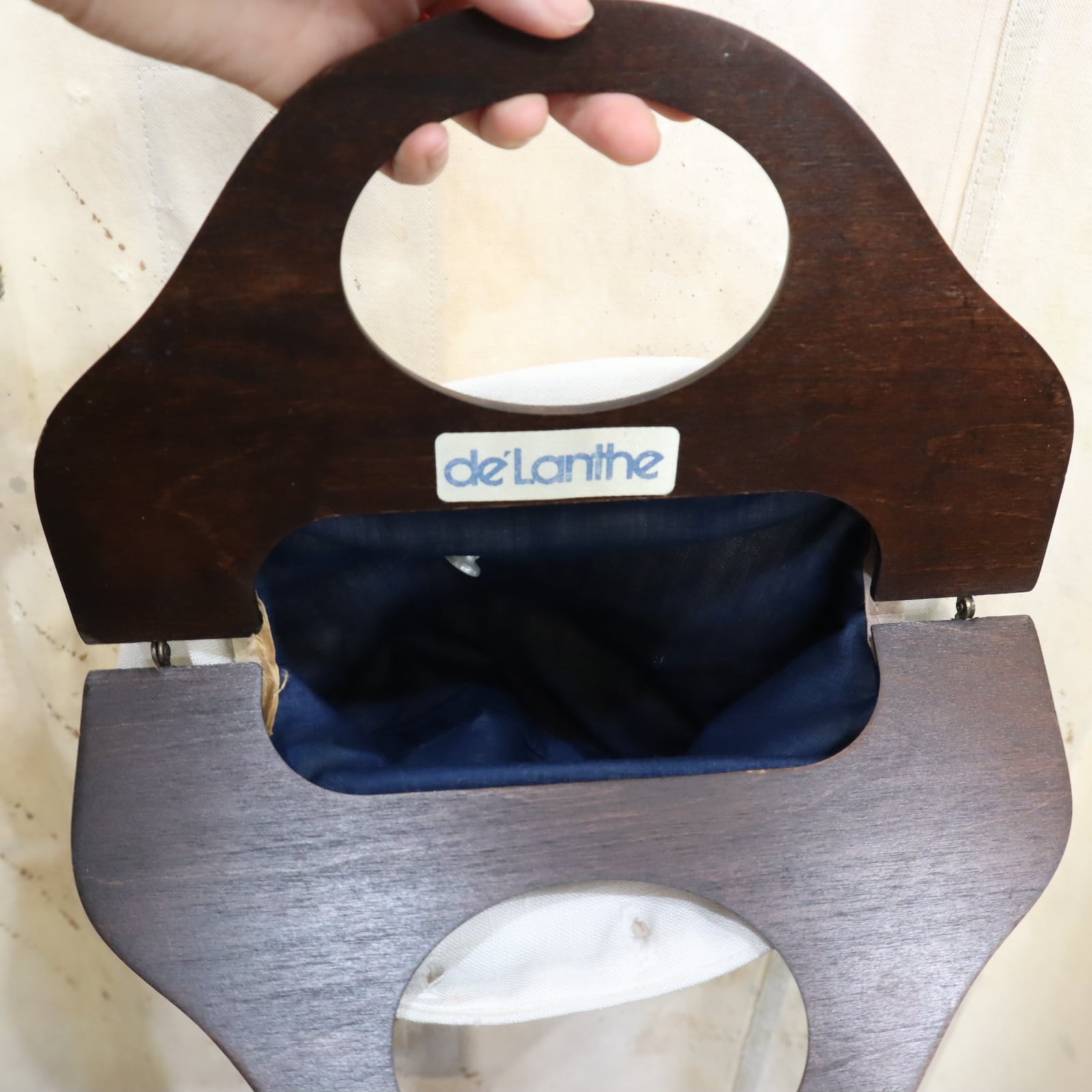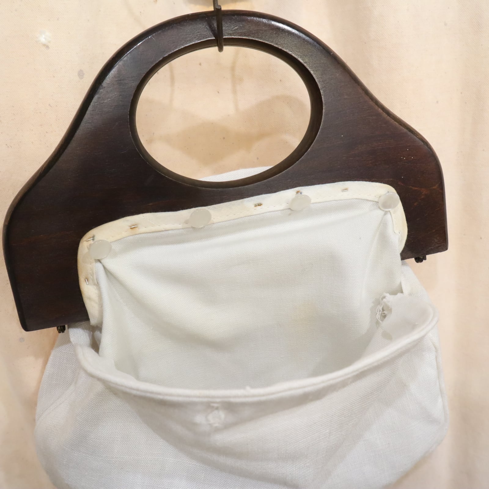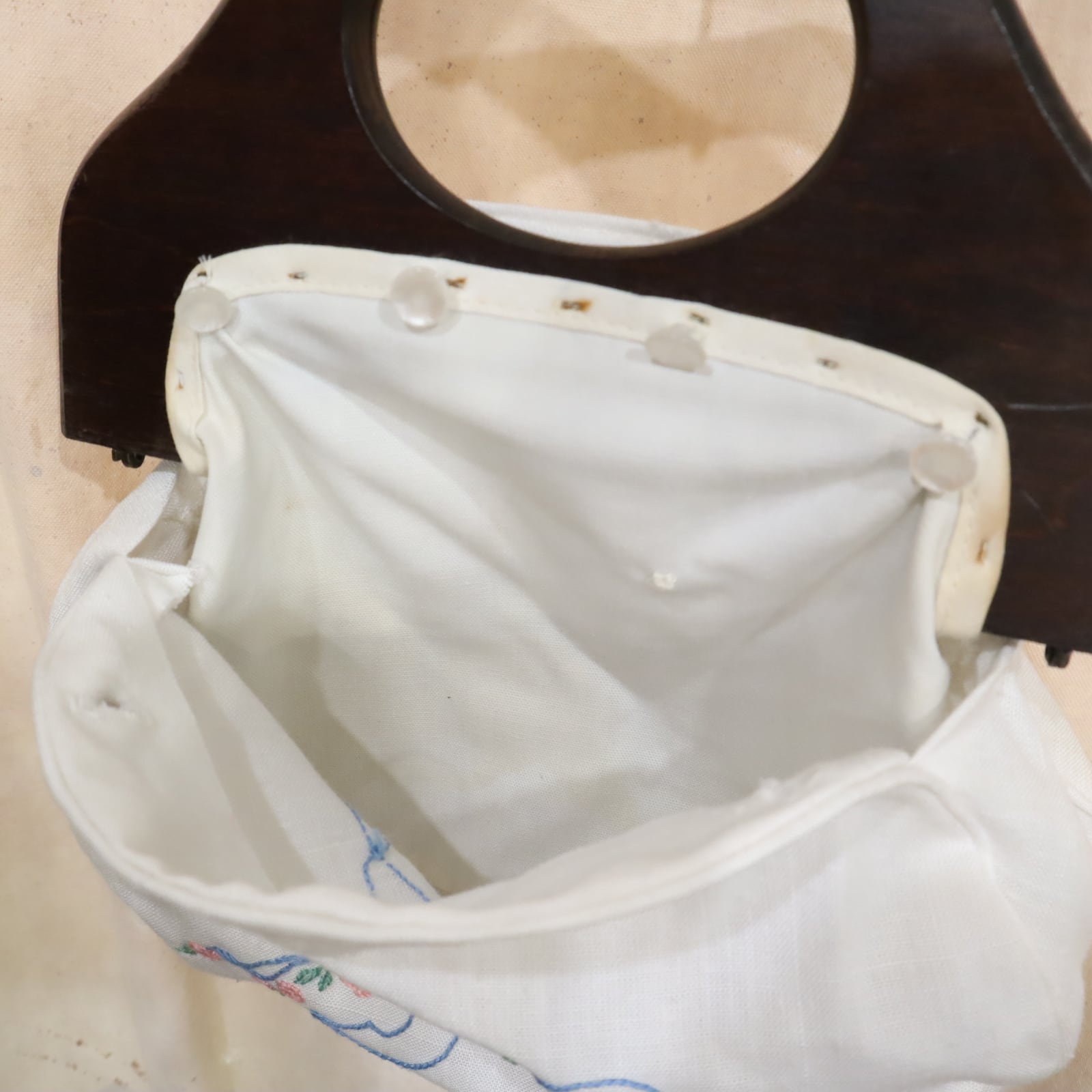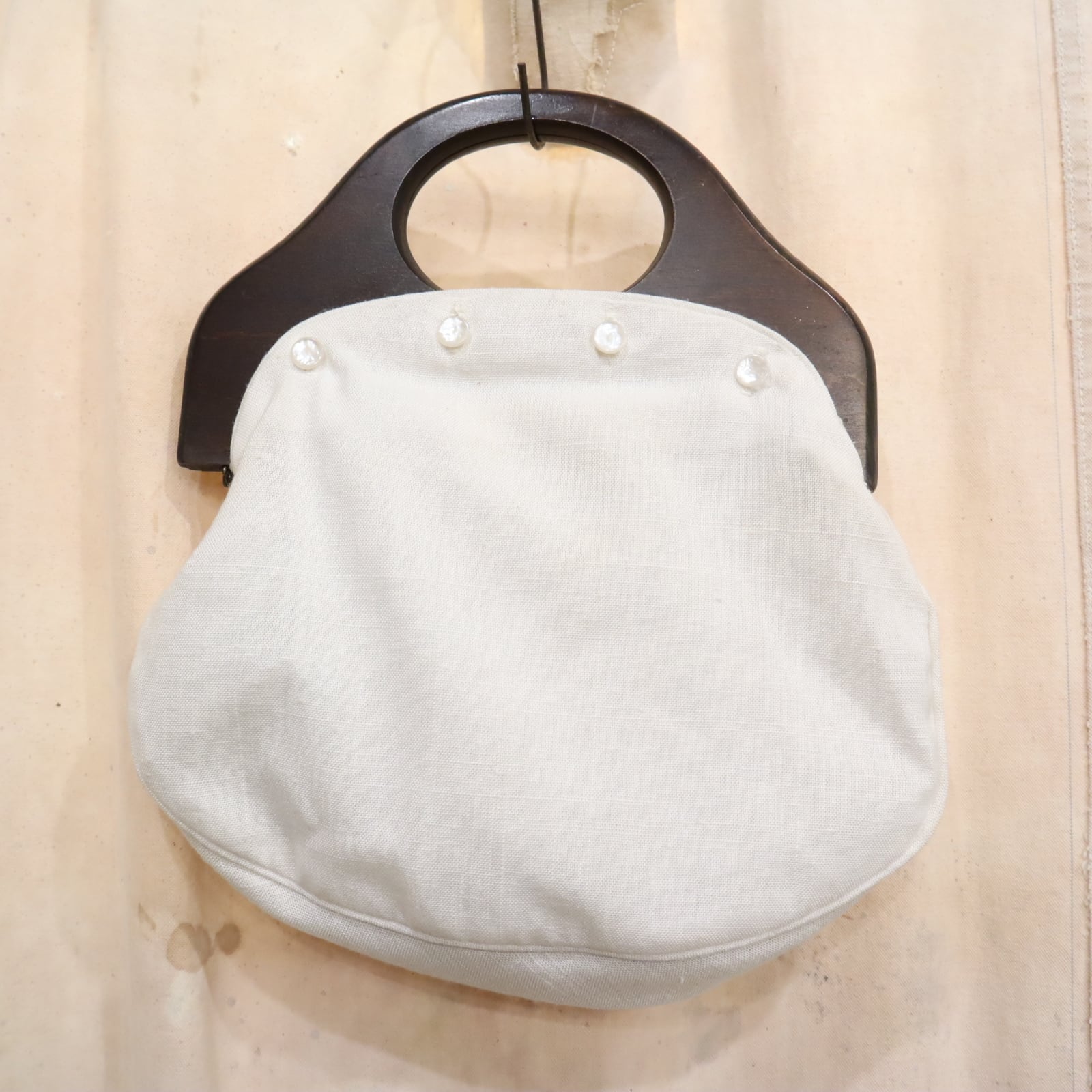 お花とリボンでガーリーな印象がありますが木製の持ち手で大人っぽいハンドバッグです。