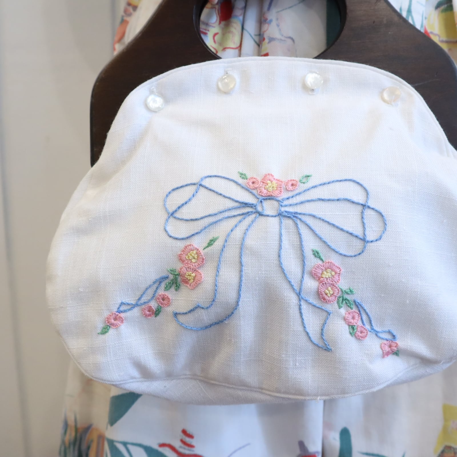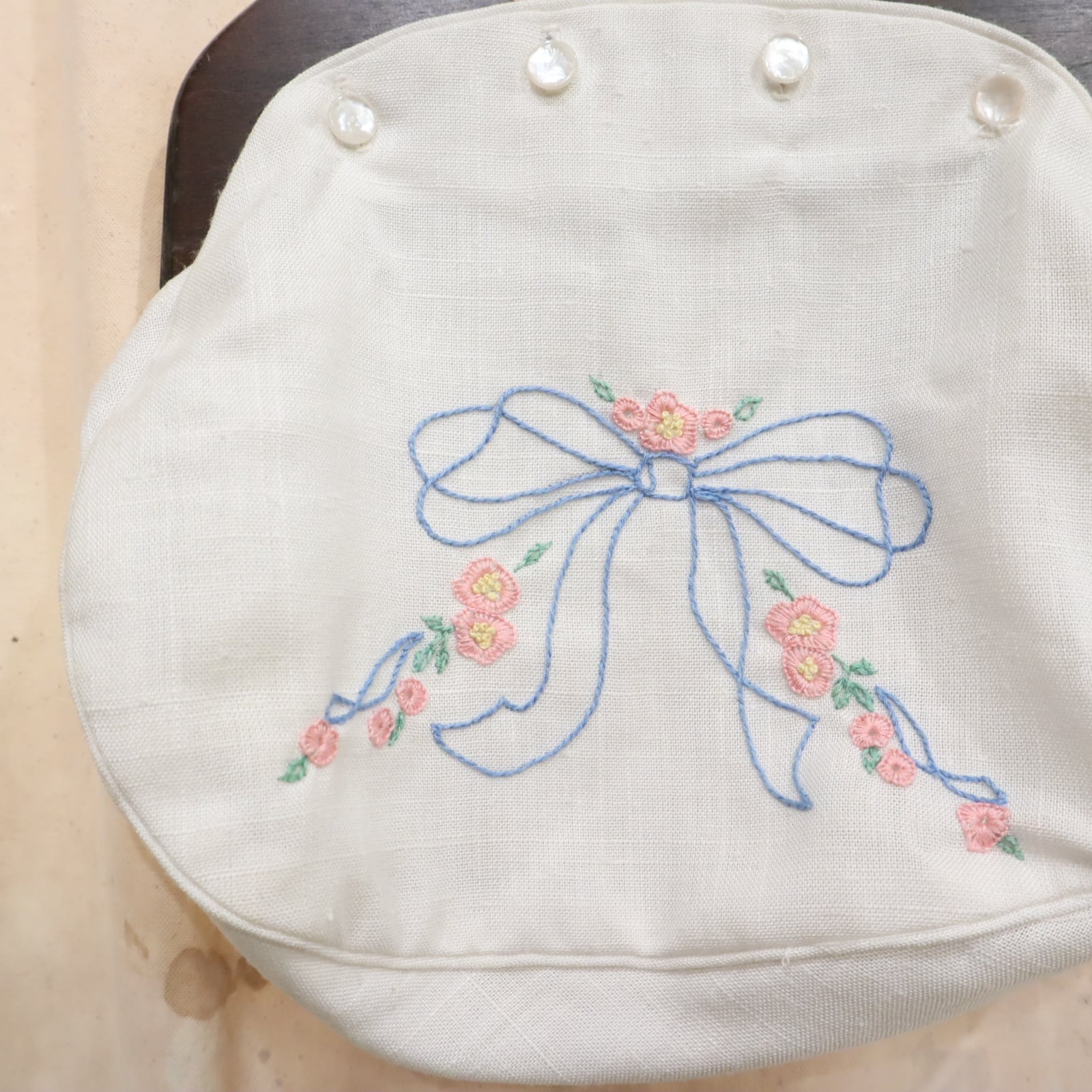 white×pink×blue ribbon&flower embroidery bag [l-5132]