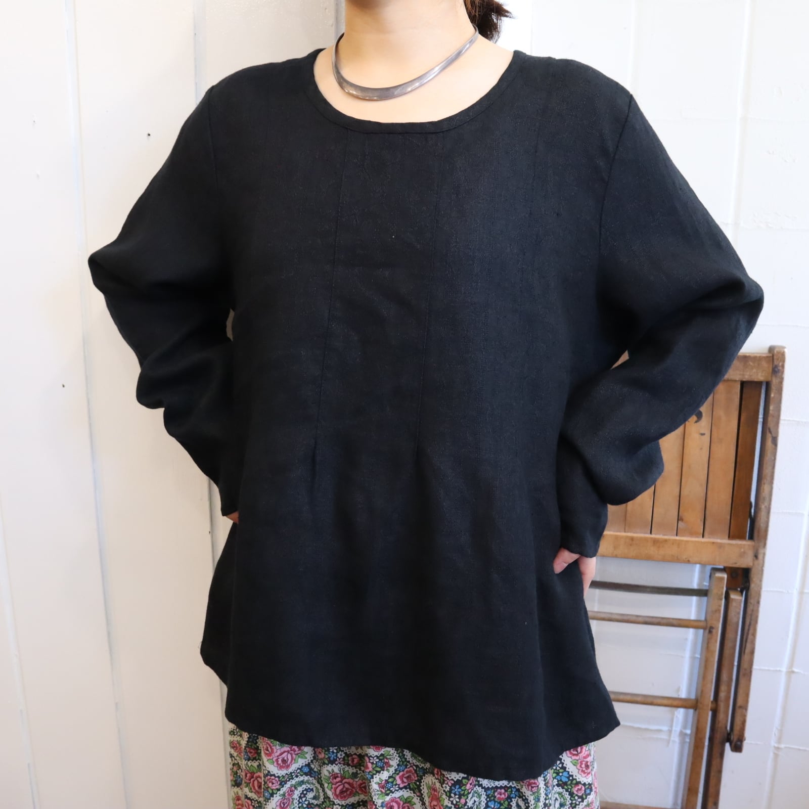 デコルテが見えて上品で大人なFLAXトップスです。