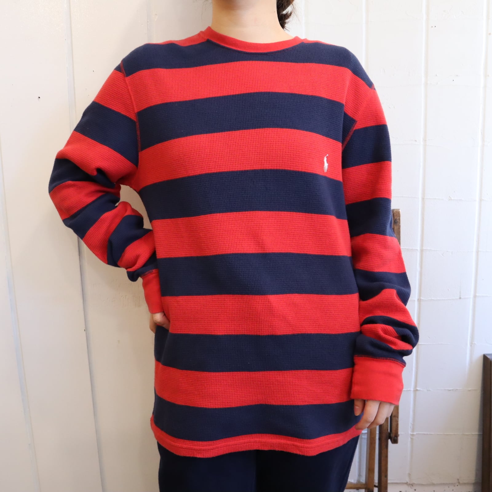 Ralph Lauren red×navy border thermal tops [k-5143]