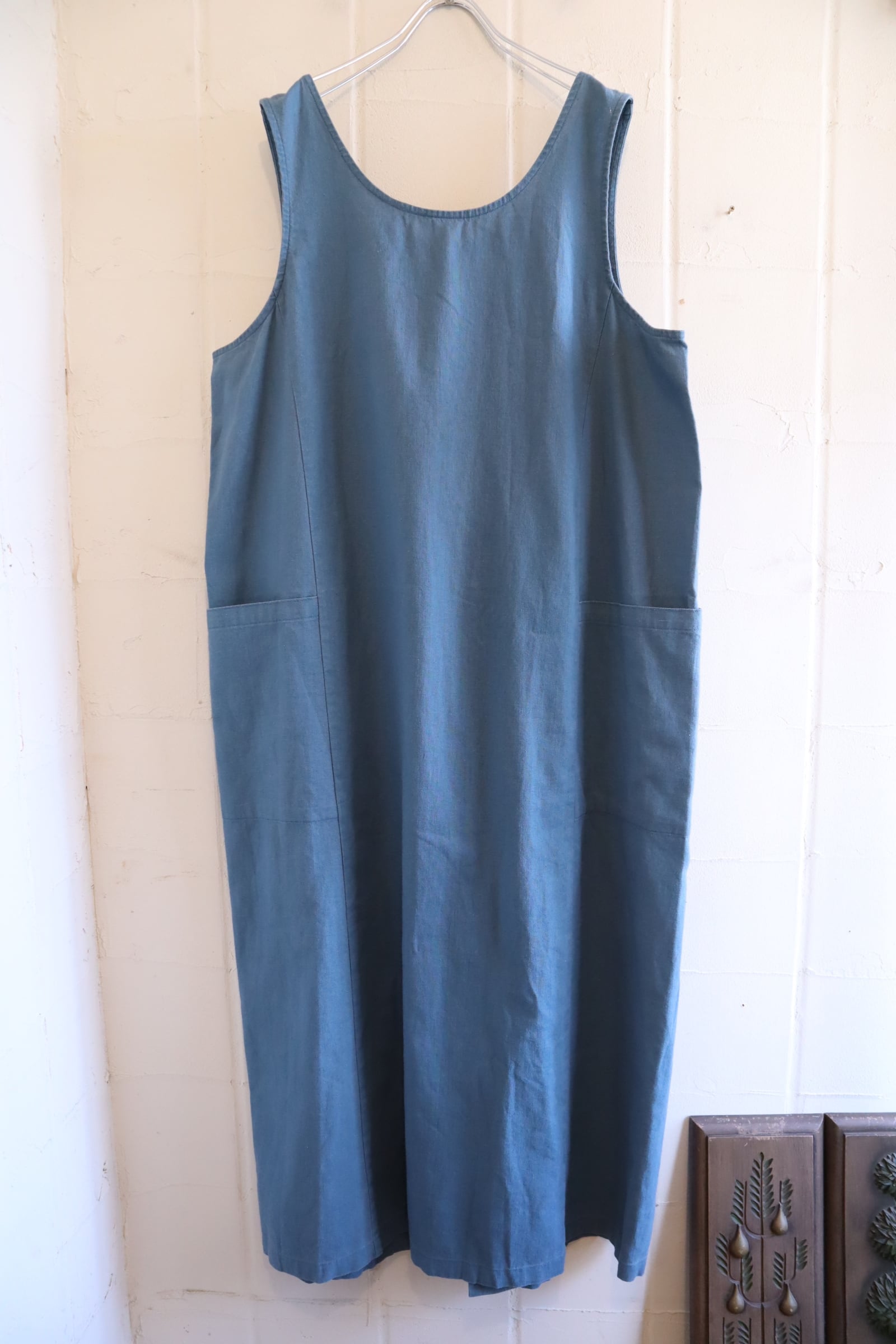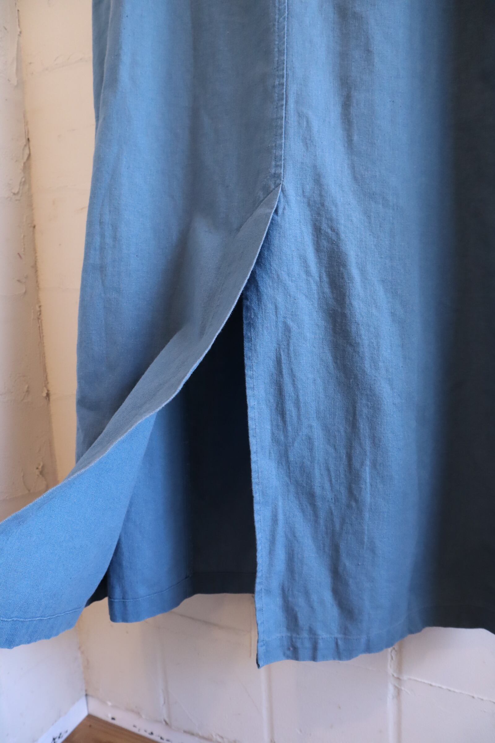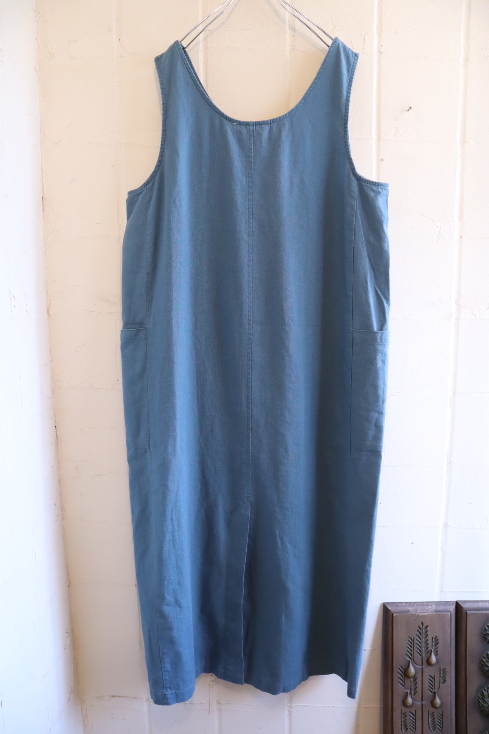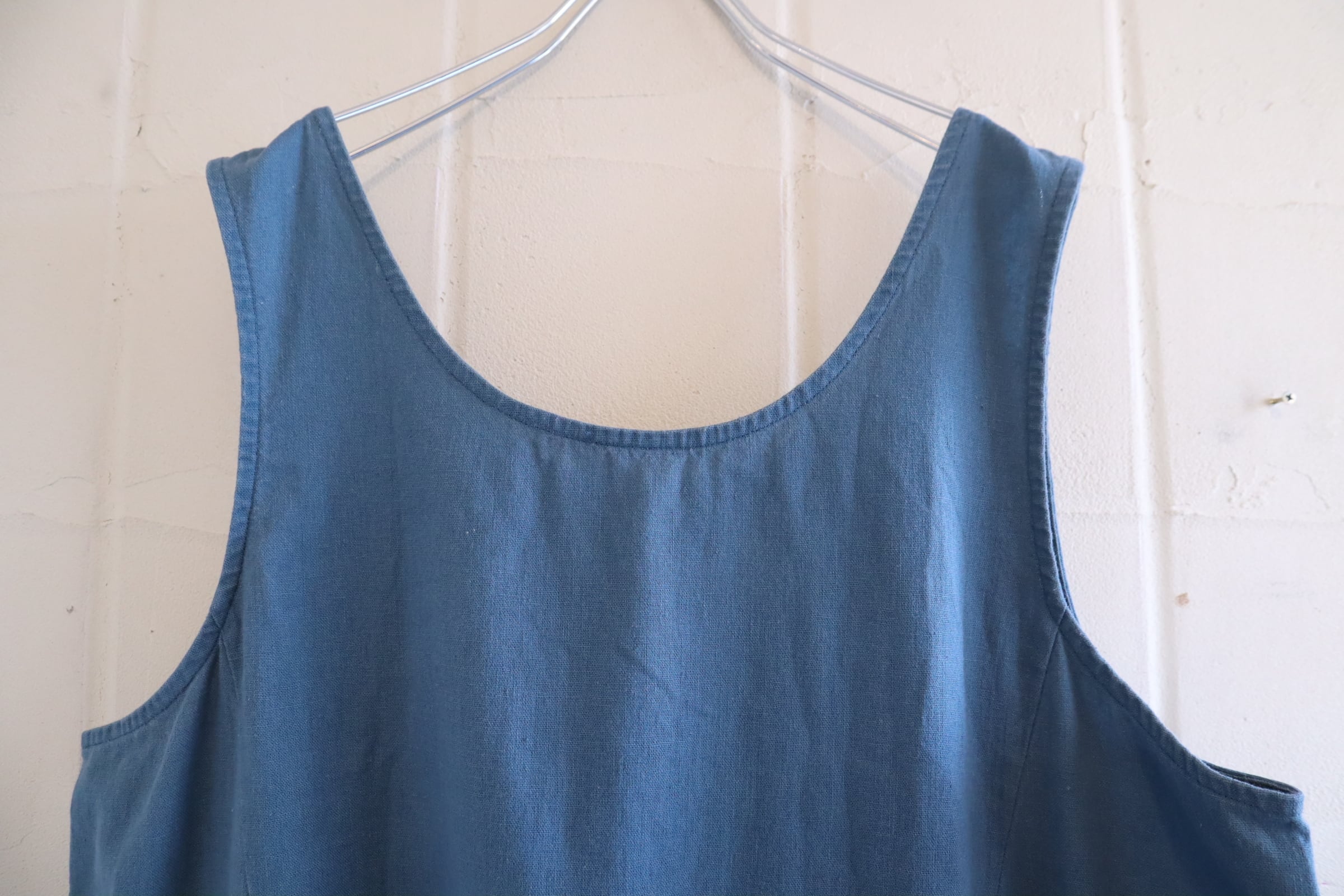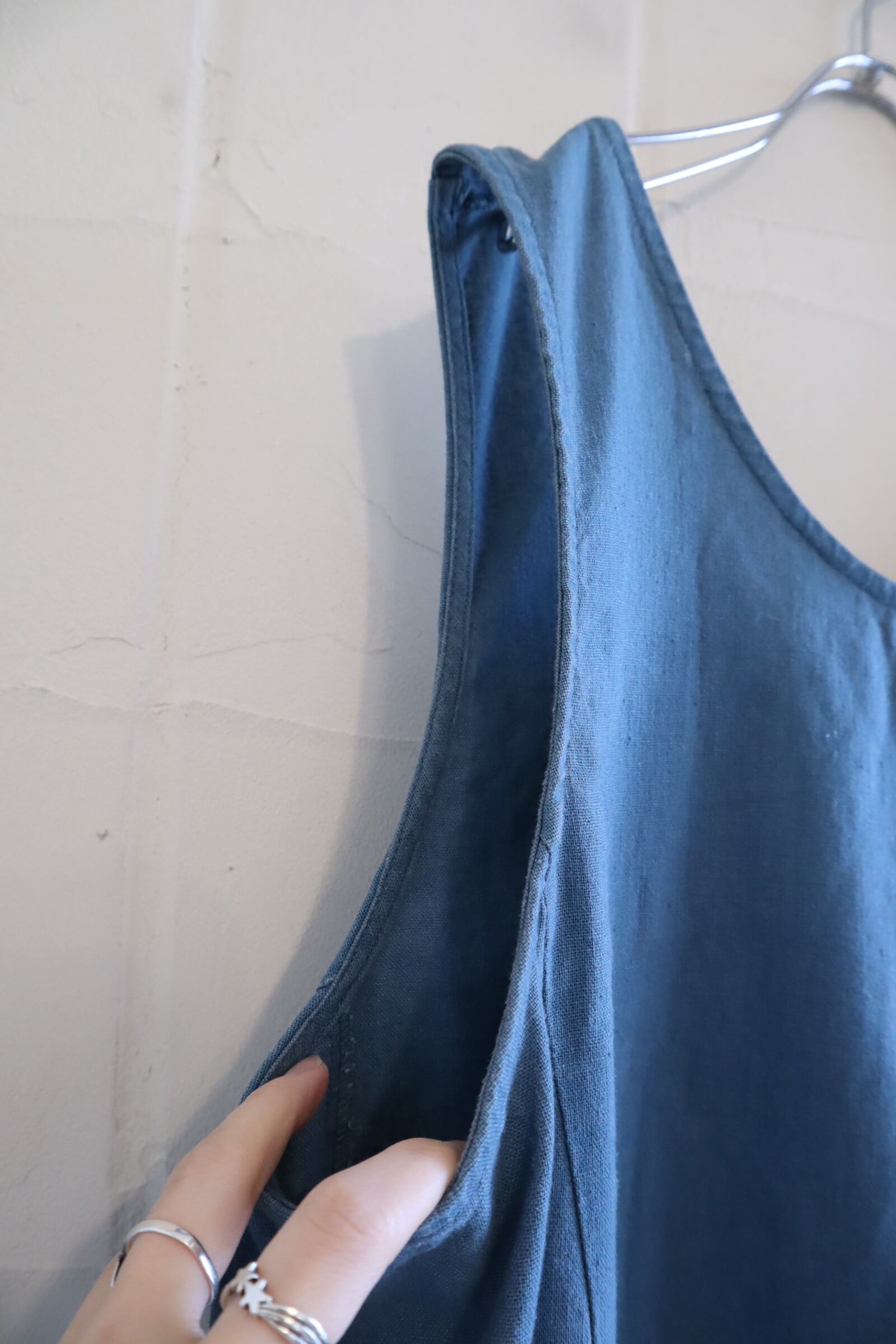 dullblue plain linen / cotton sleeveless dress [l-5146]