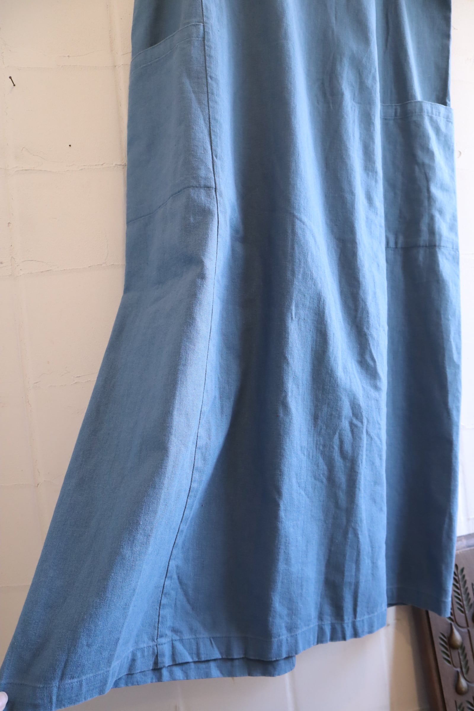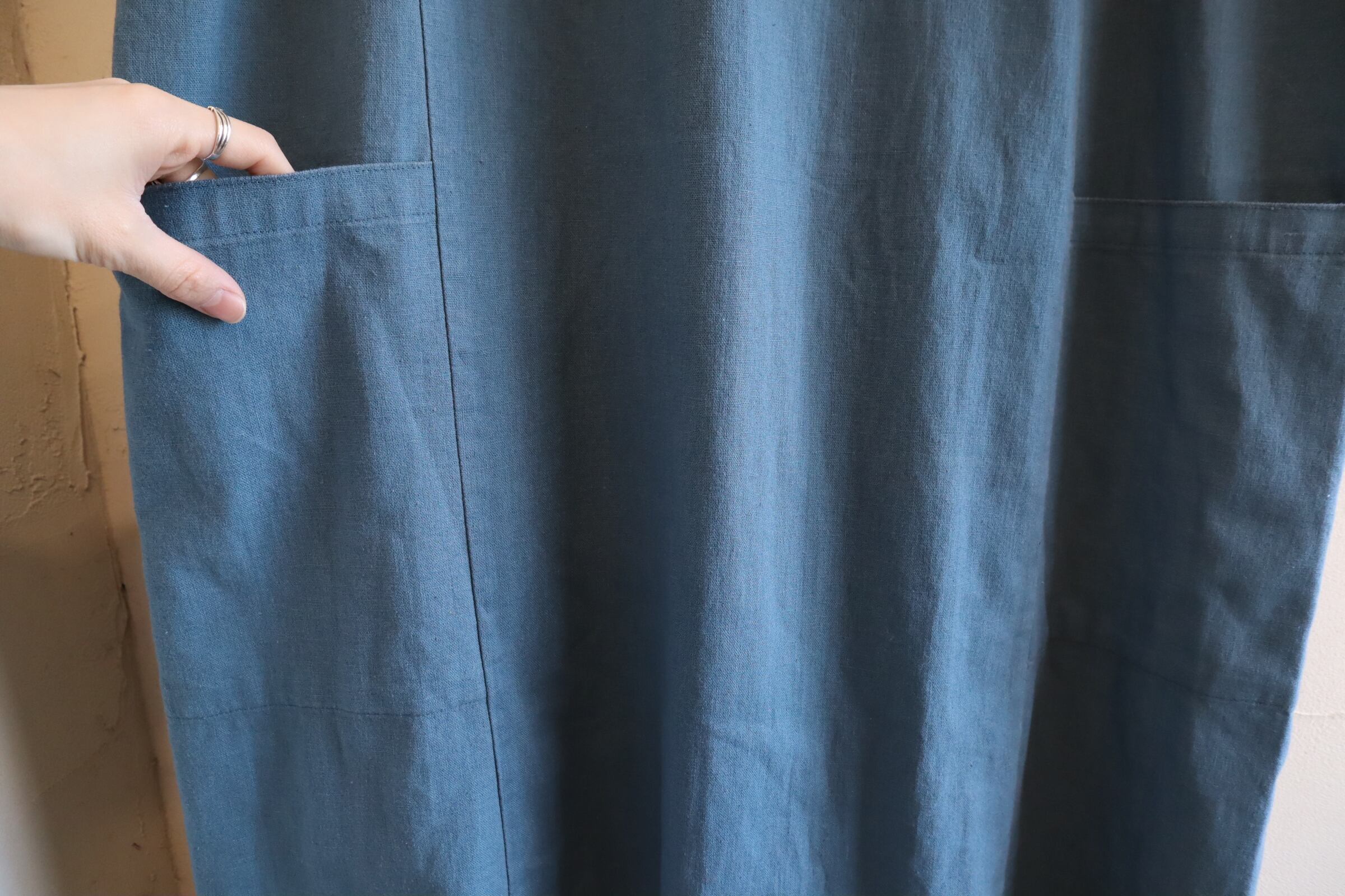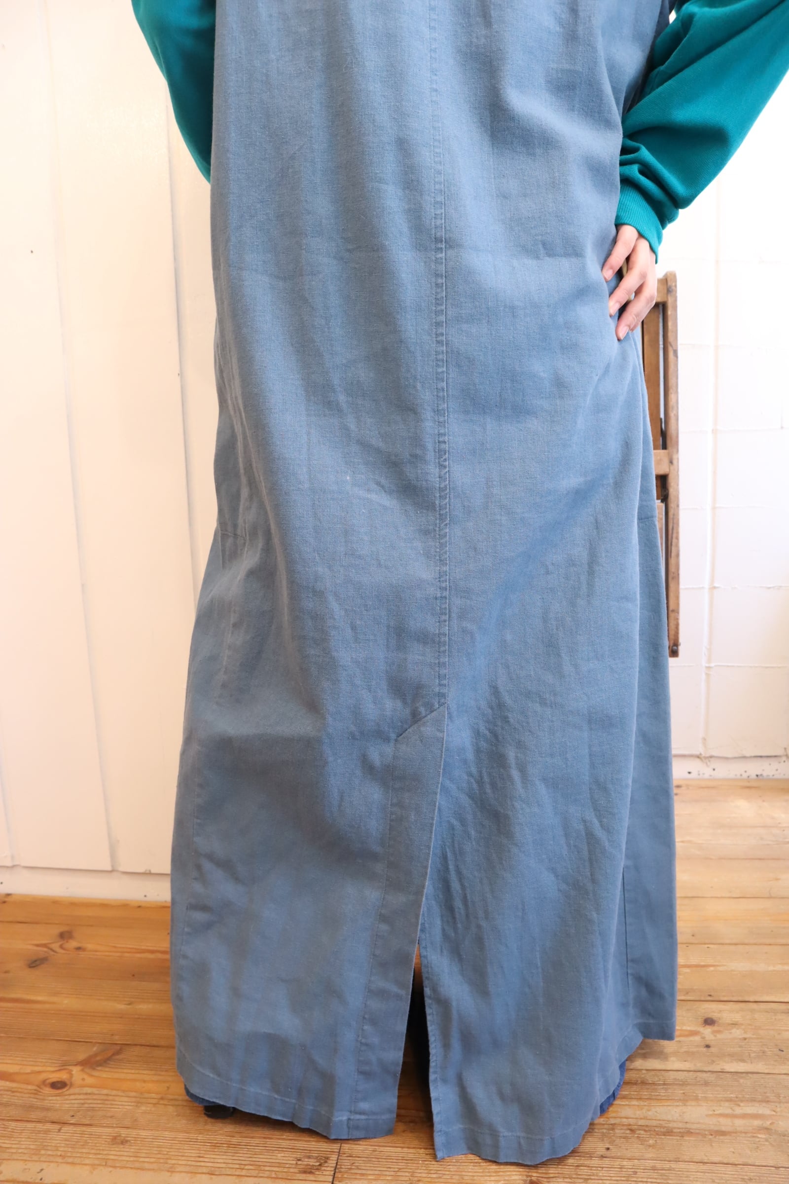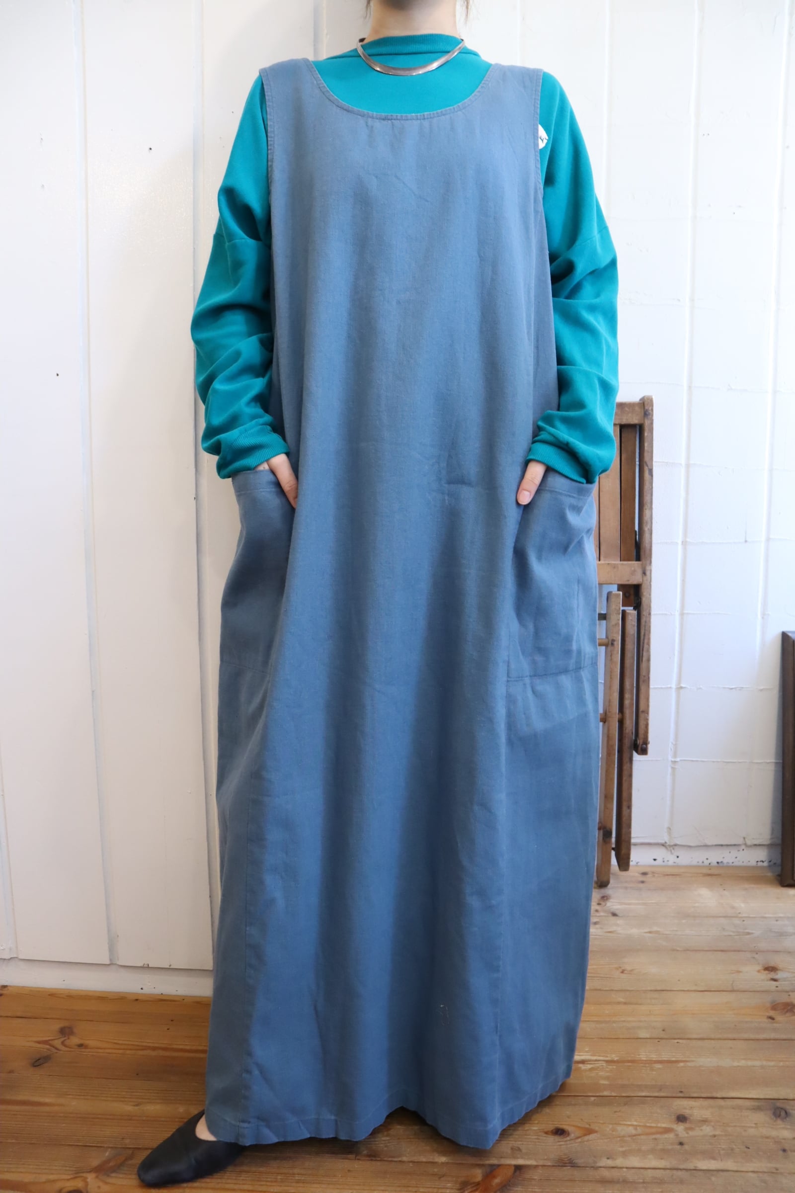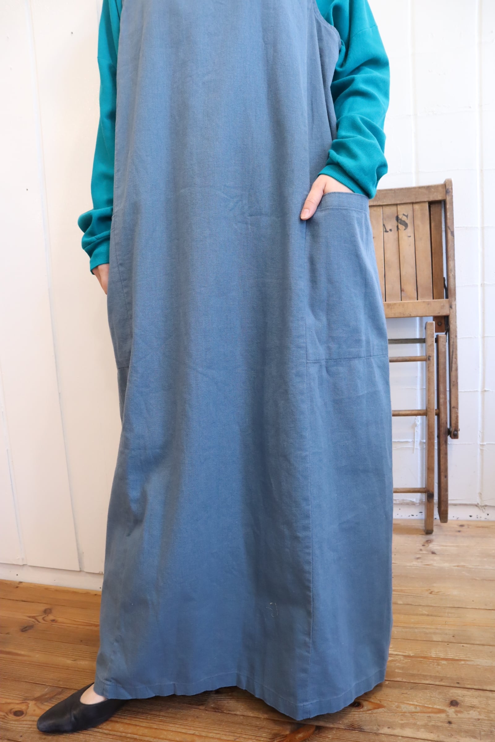 dullblue plain linen / cotton sleeveless dress [l-5146]