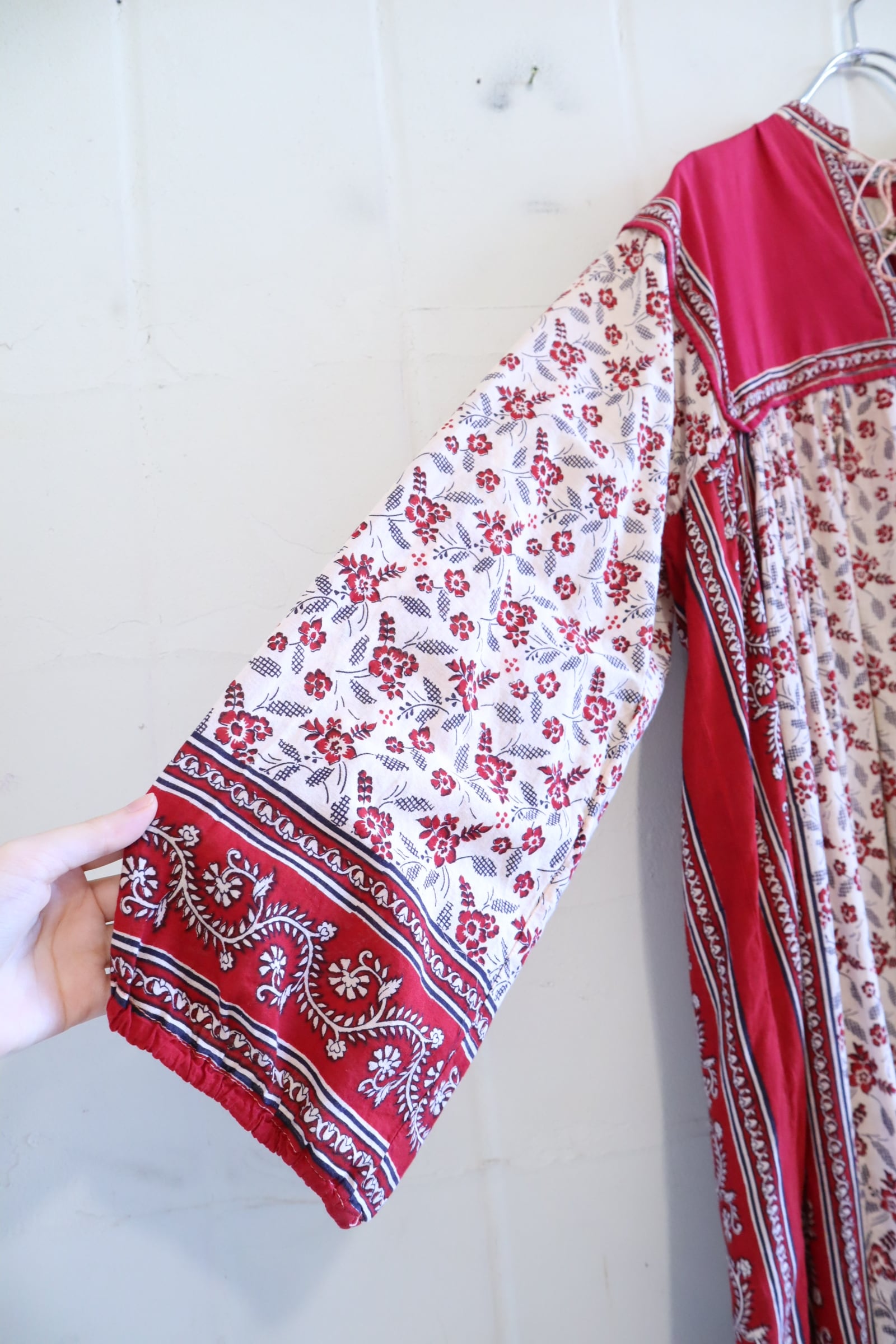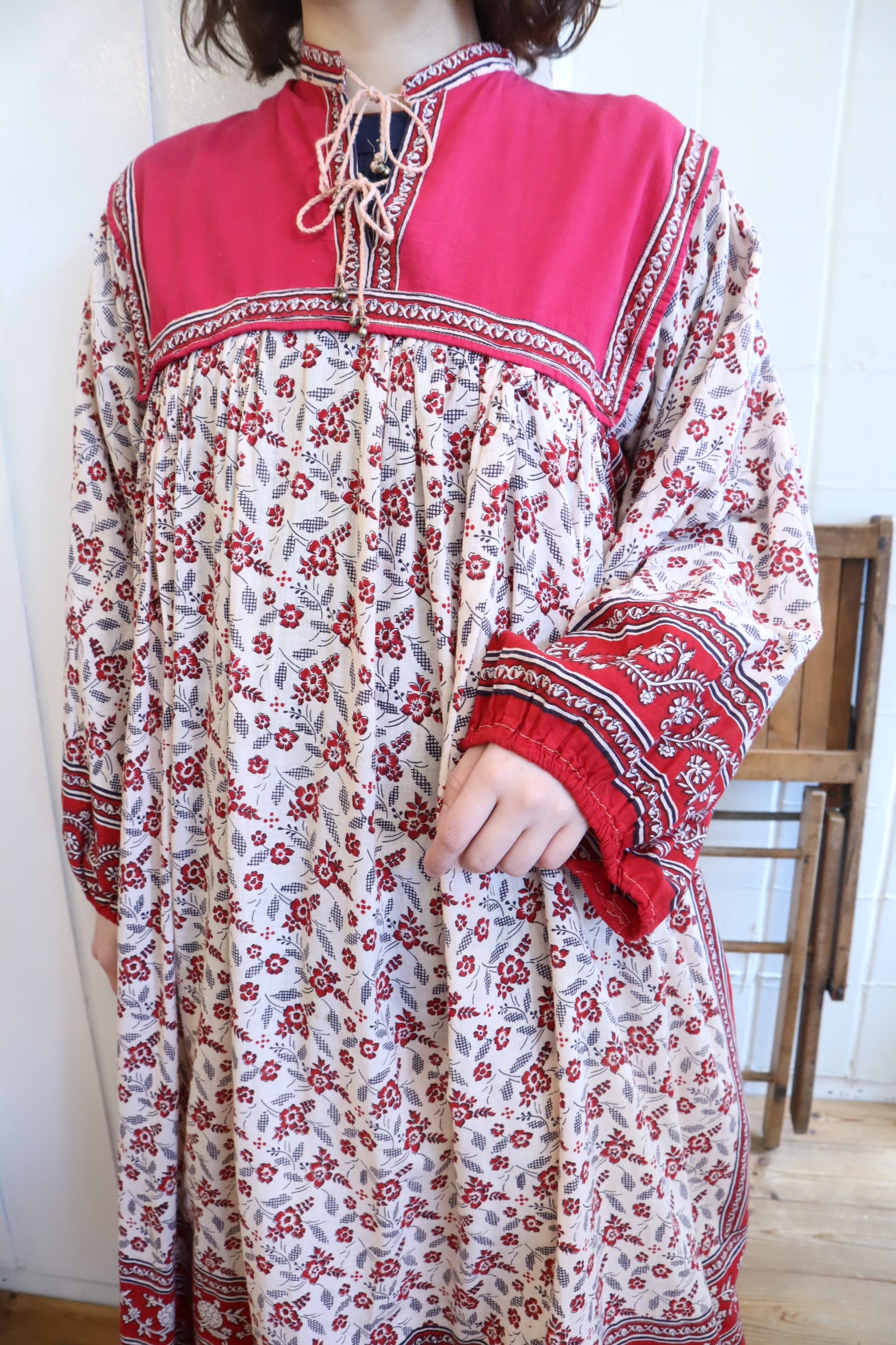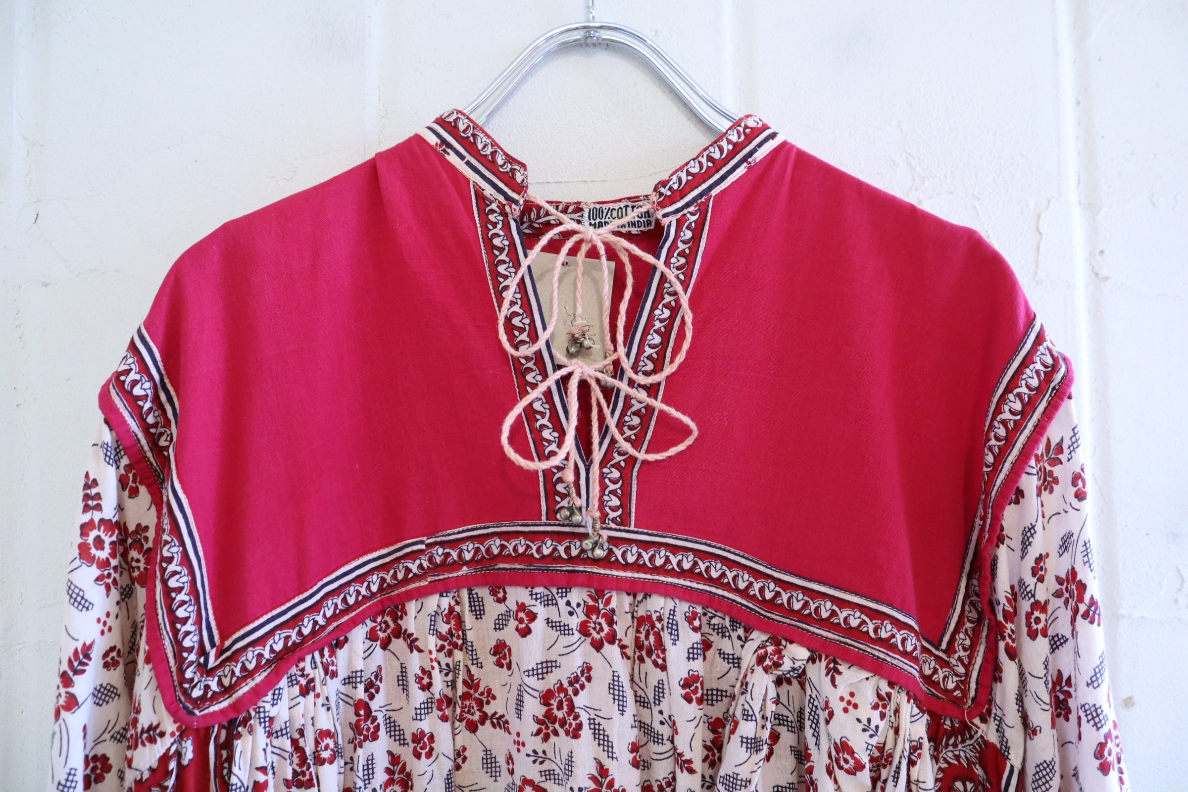 ワイドなお袖のシルエットが素敵なインド綿ドレス。