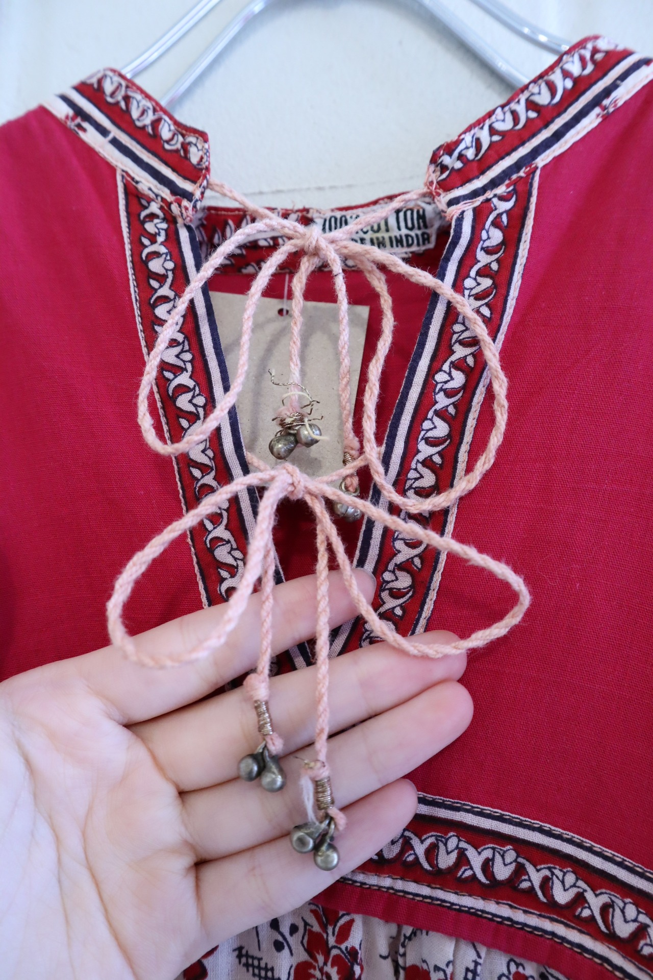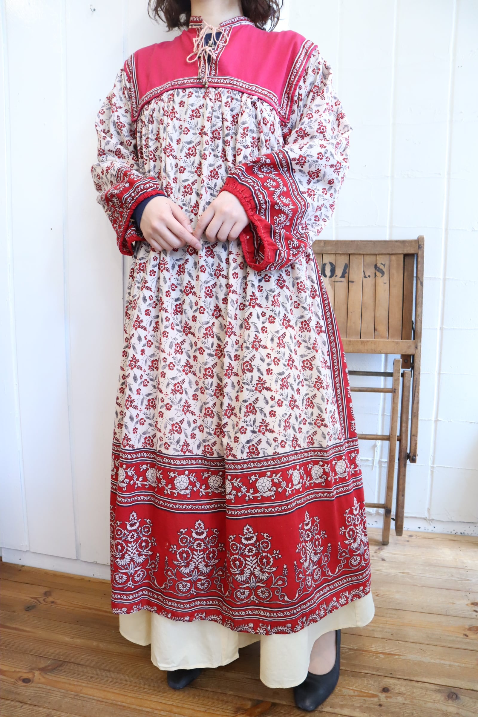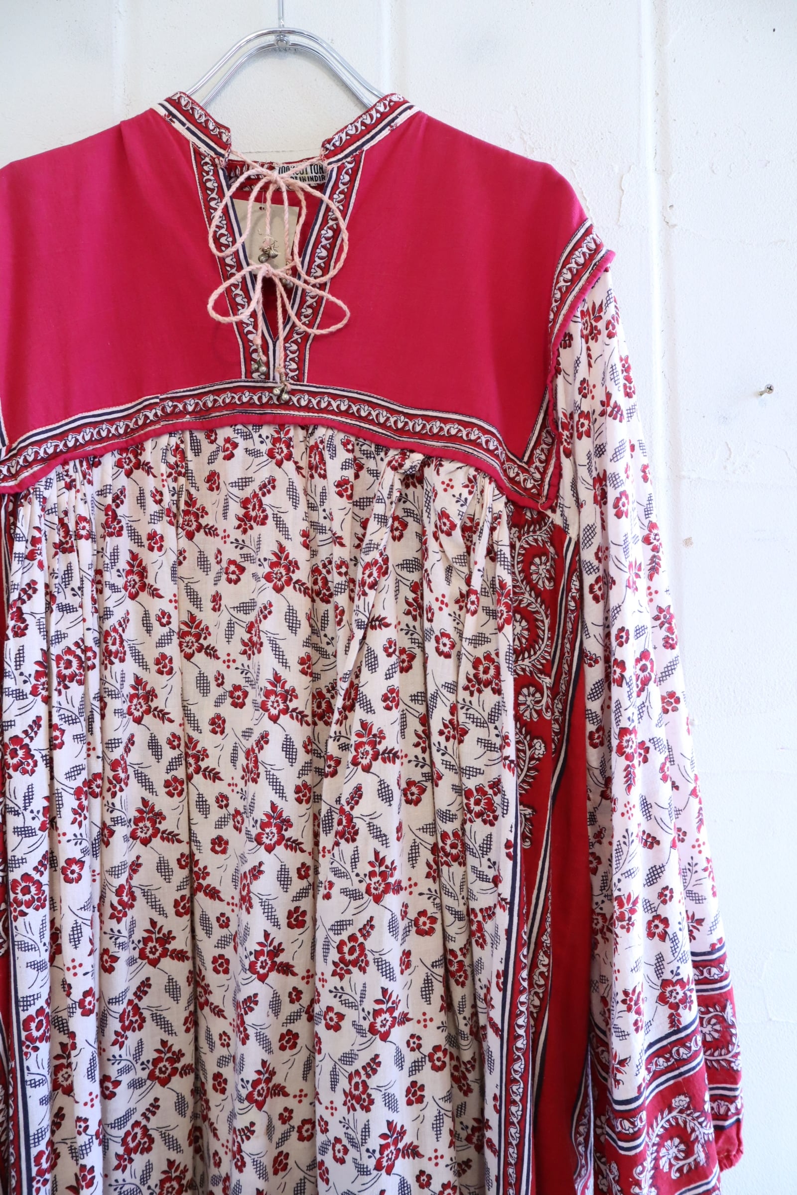 ワイドなお袖のシルエットが素敵なインド綿ドレス。