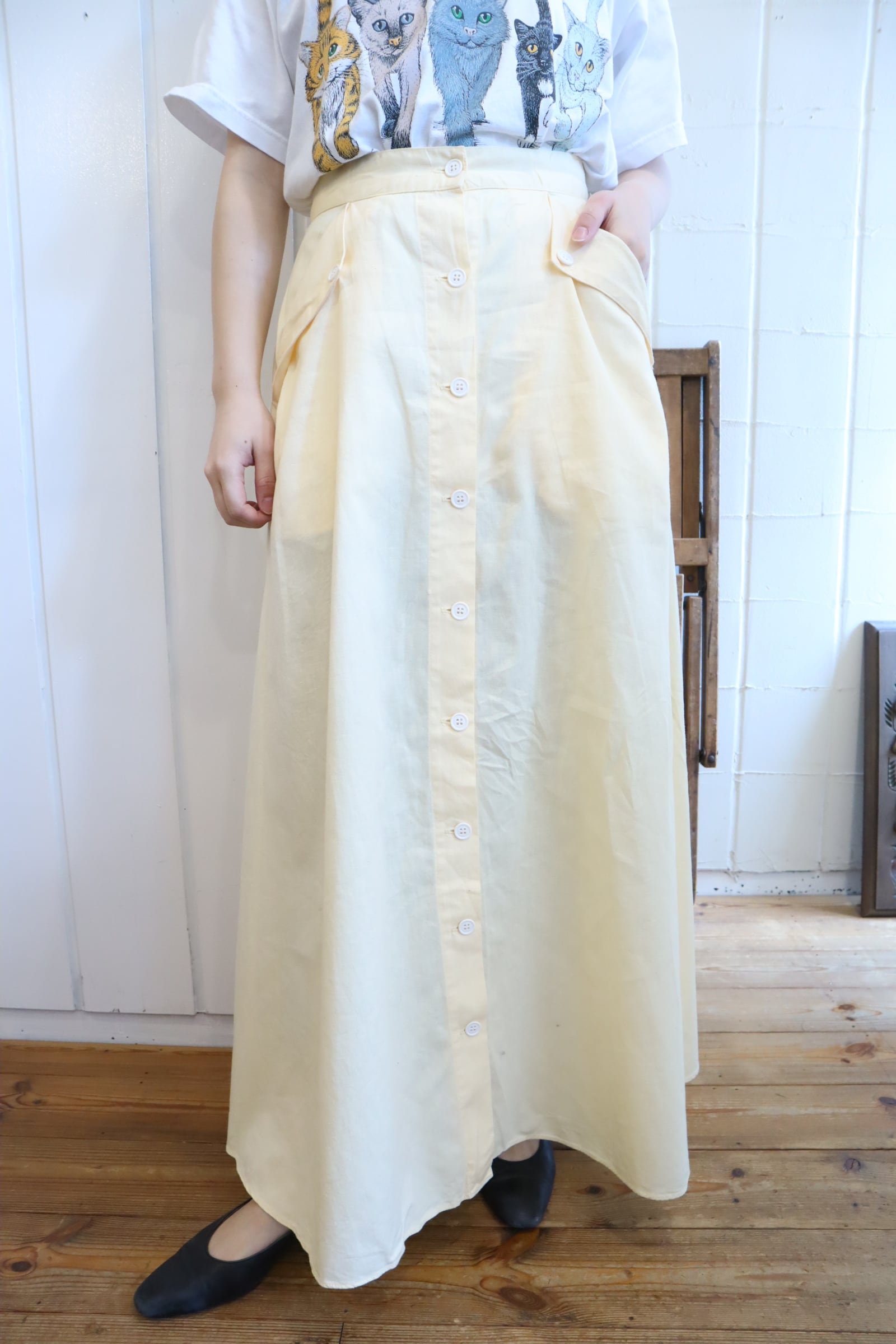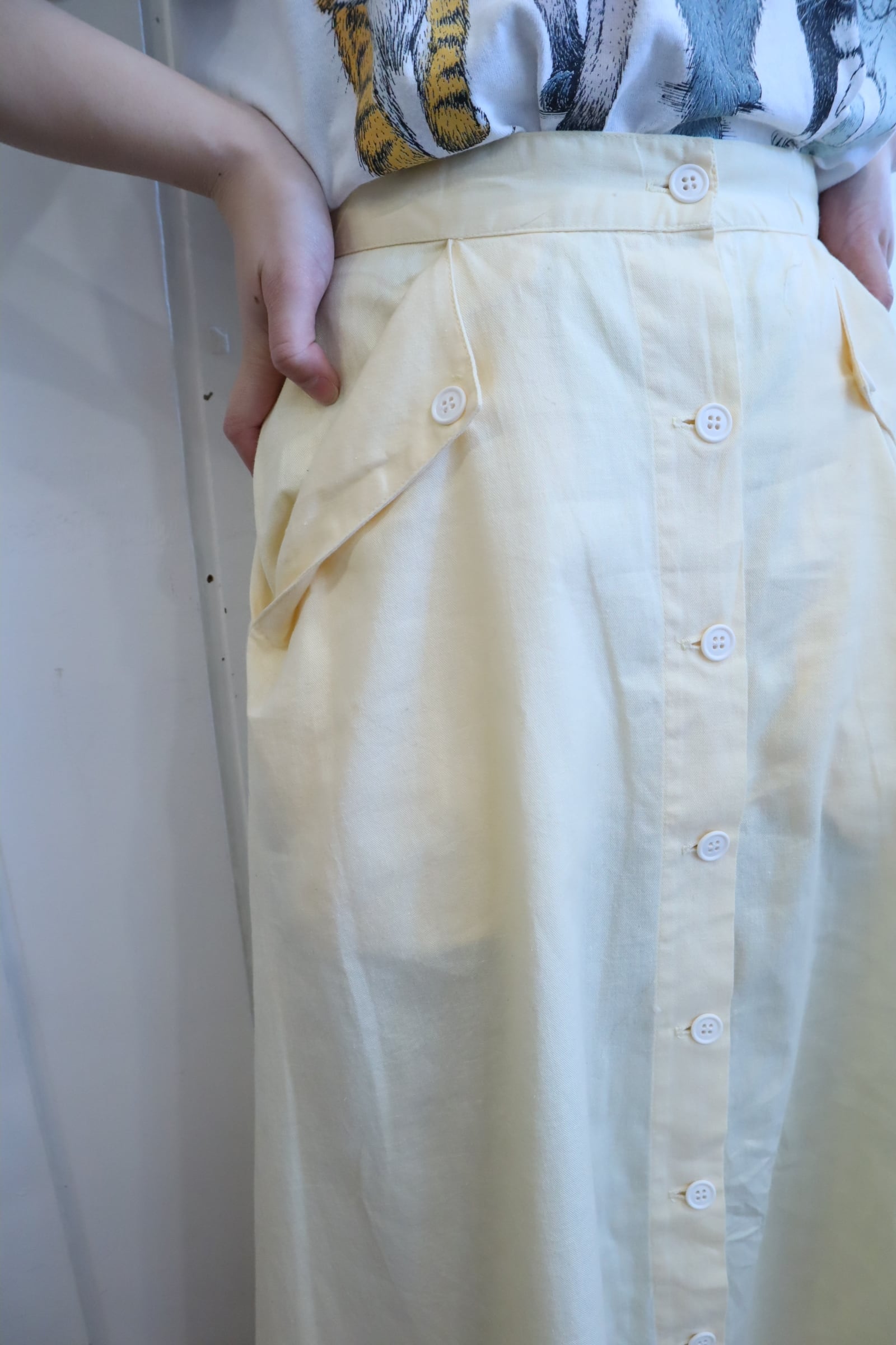 Ralph Lauren lightyellow plain front button skirt [l-5162]