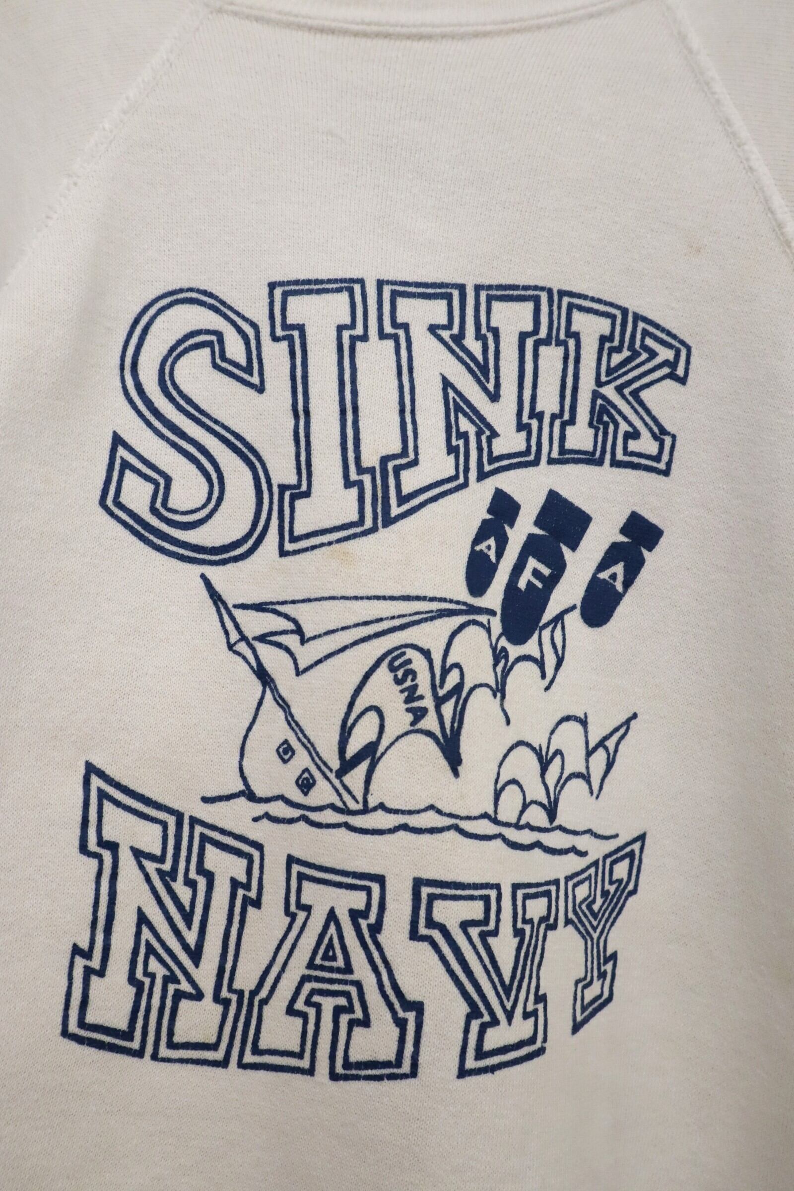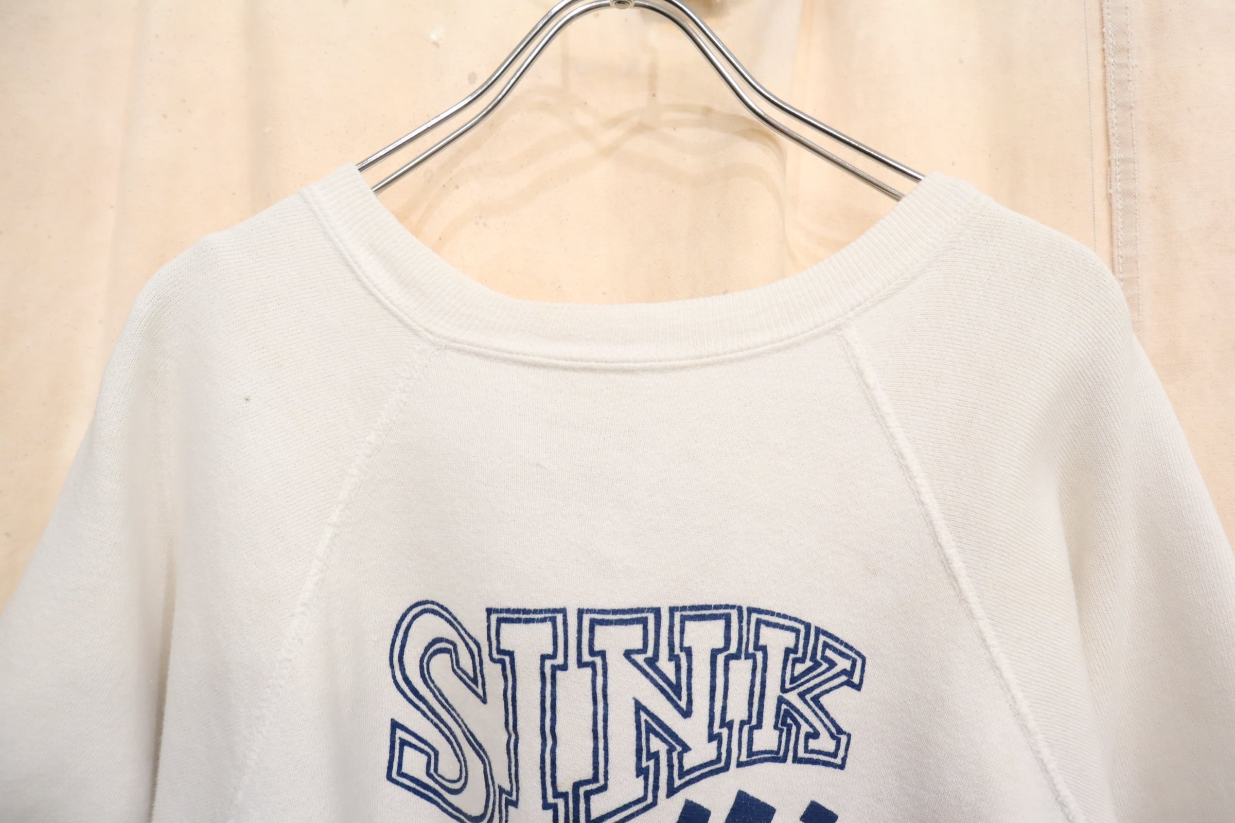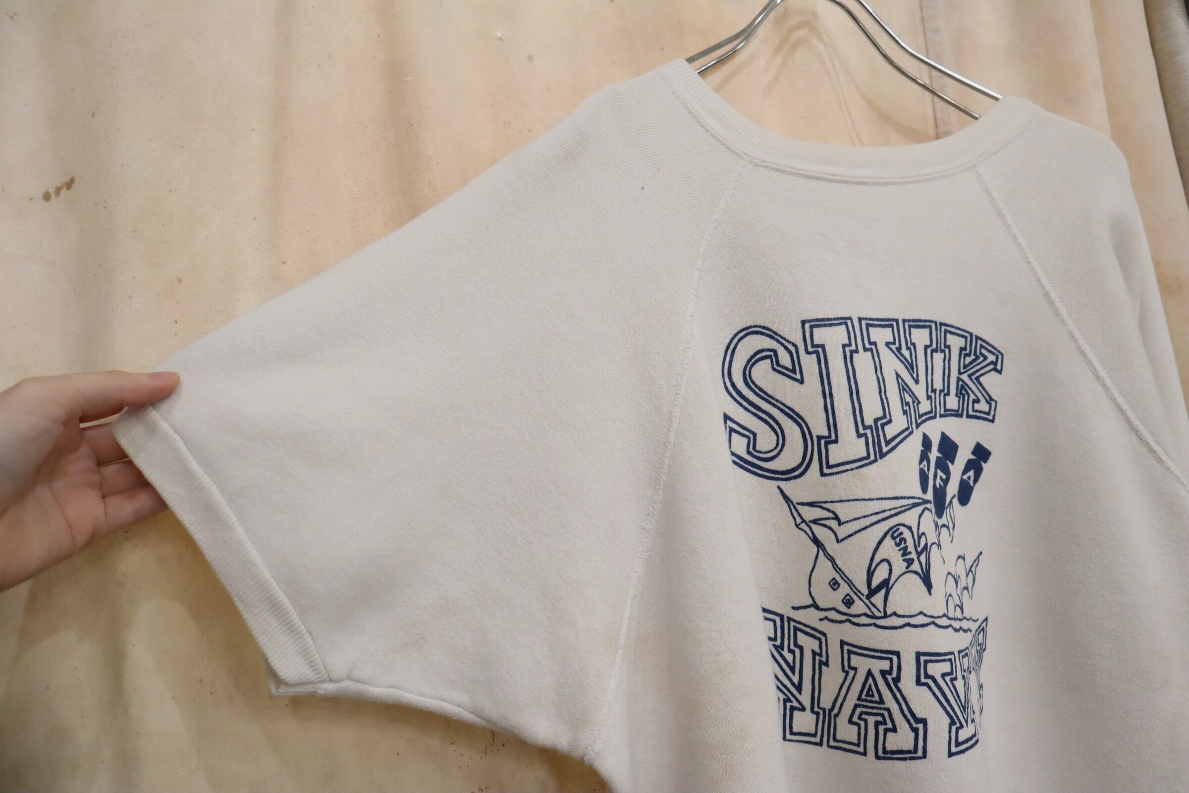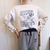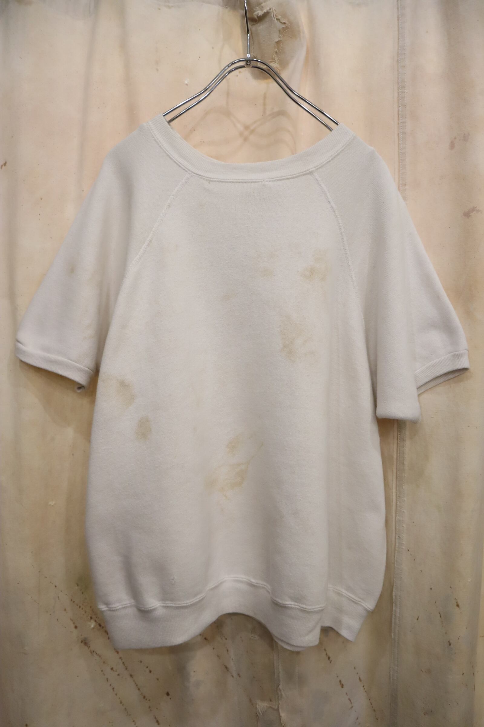 60s‐ white×blue print short sleeve sweat [k-5167]