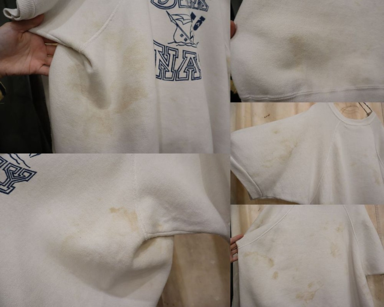 全体的に目立ったシミ汚れや汚れ、一部傷がございますが、古着の雰囲気として着て頂けるかと思います。(大きなシミ汚れ部分にワッペンをつけたりしても可愛いです。)