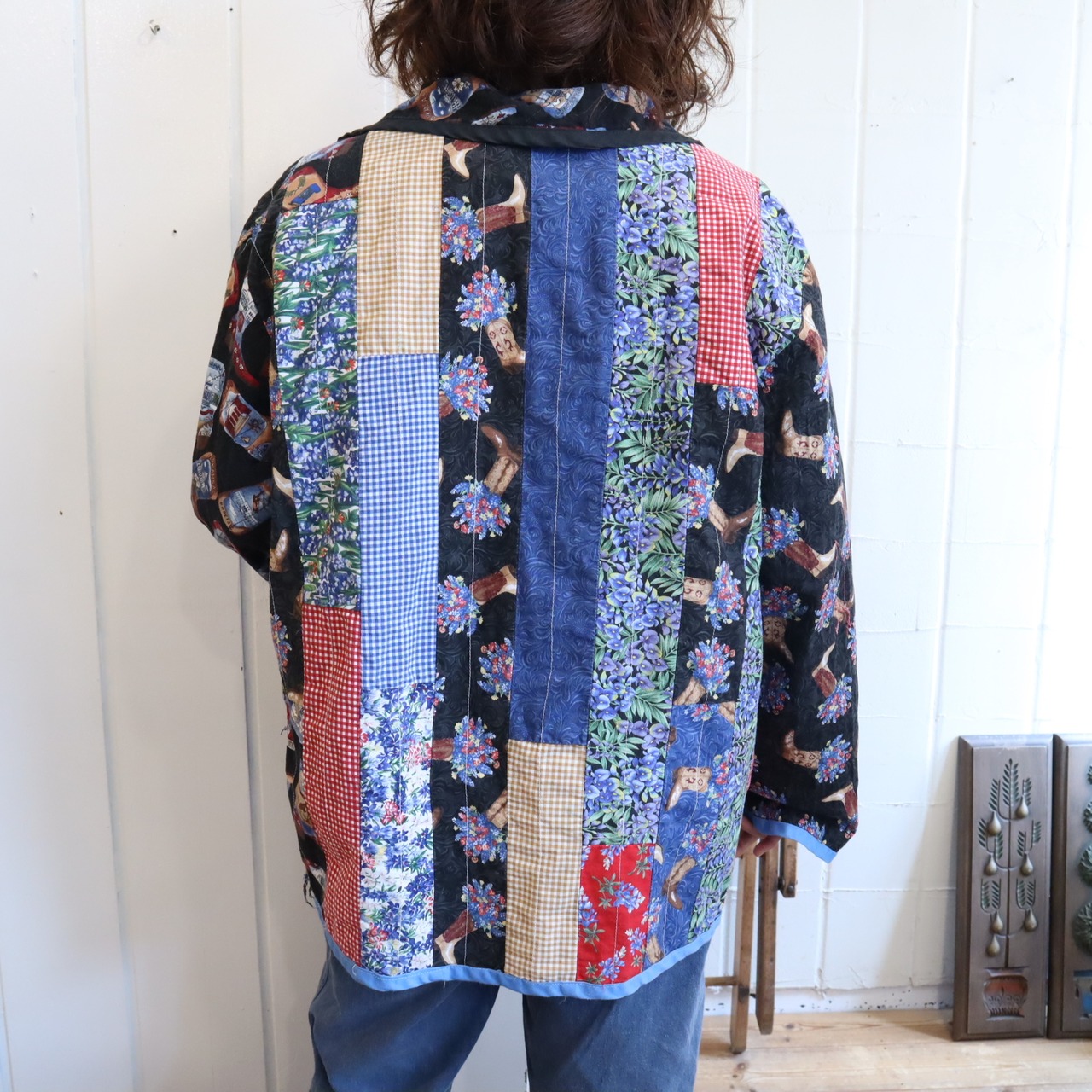 black×blue westernboots patchwork reversible jacket [l-5171]