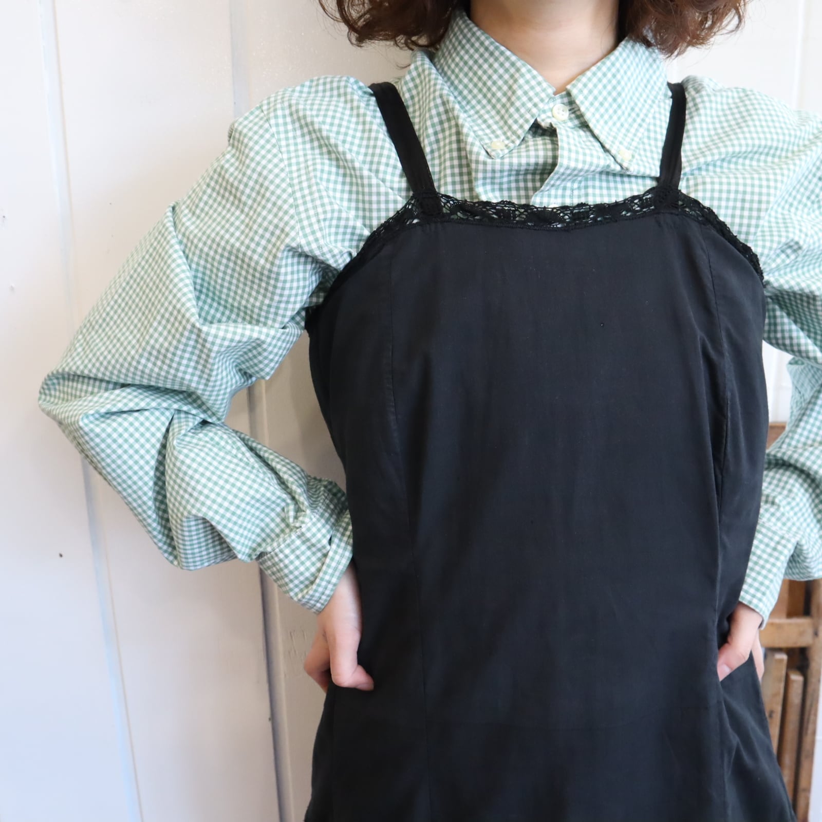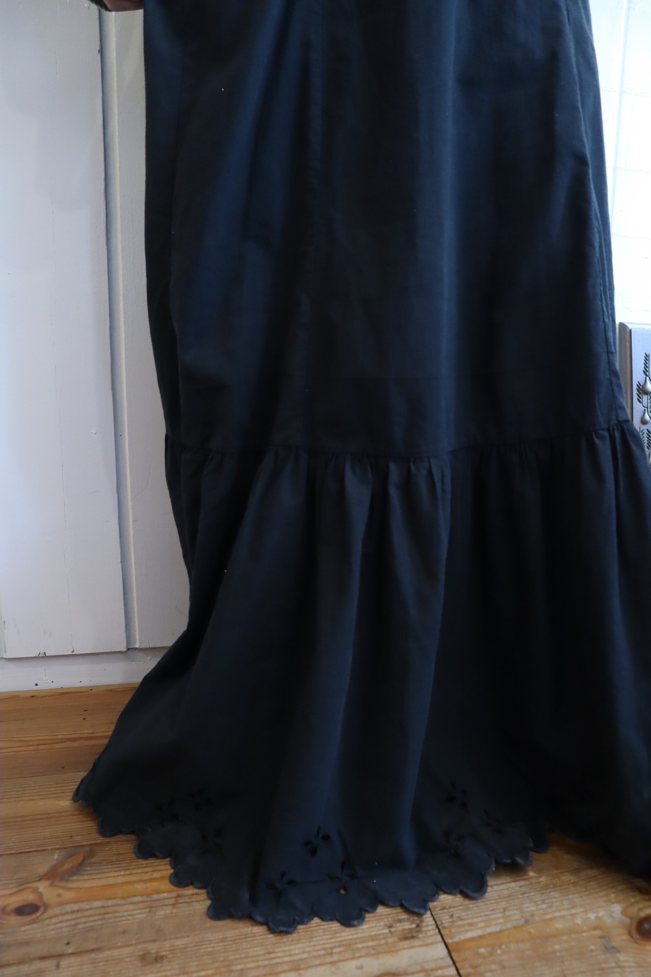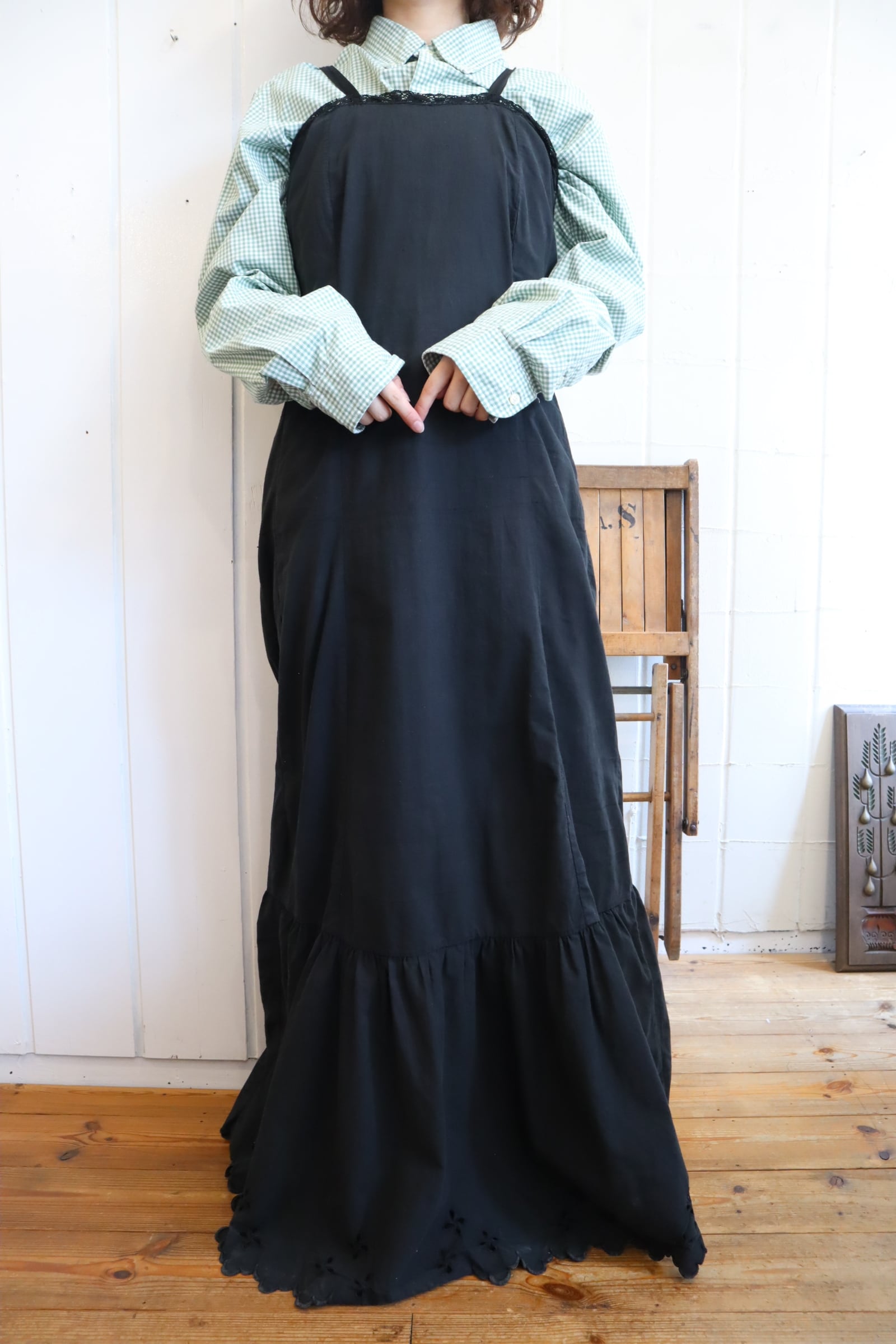 ブラックで合わせやすい大人なアンティークドレスです。