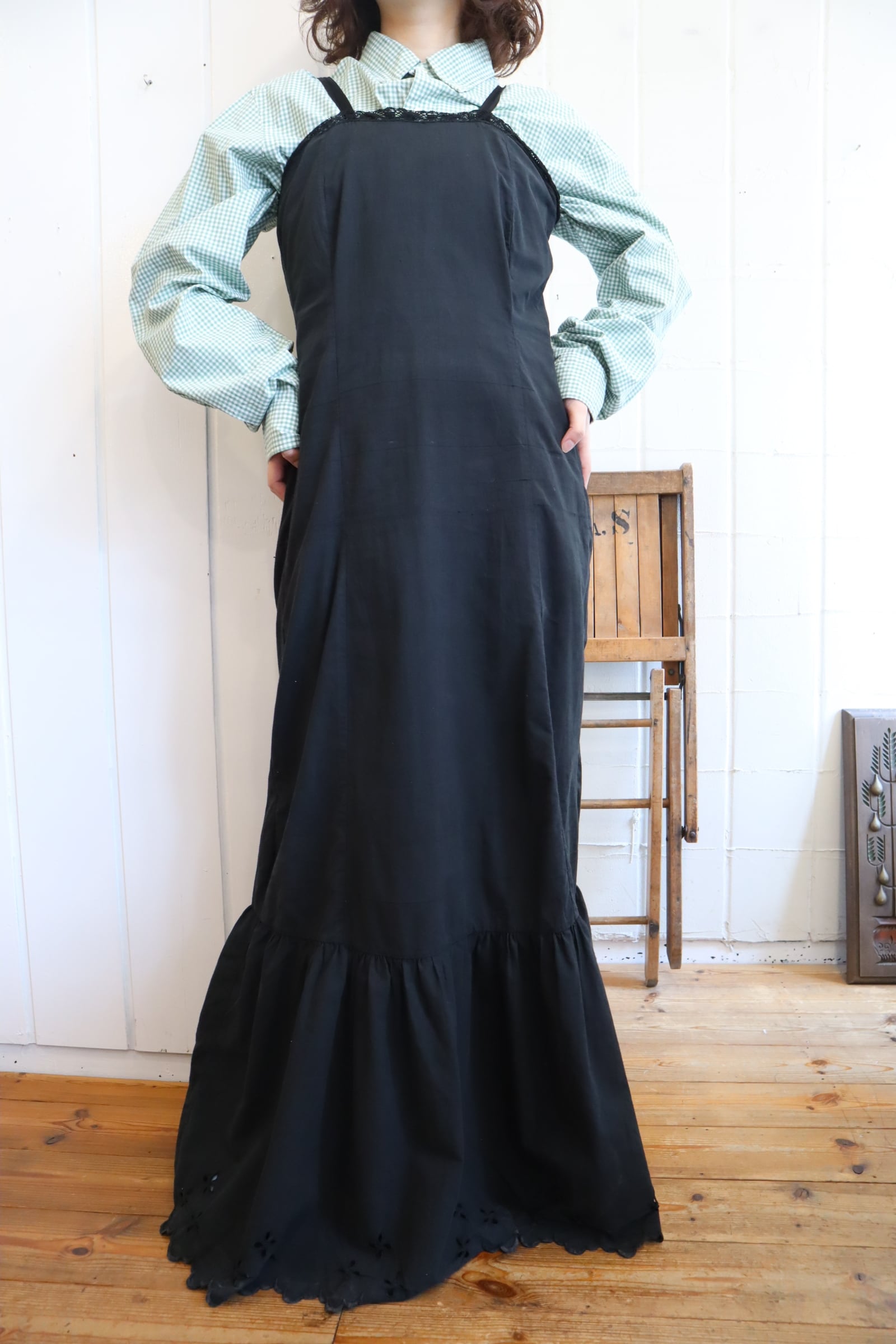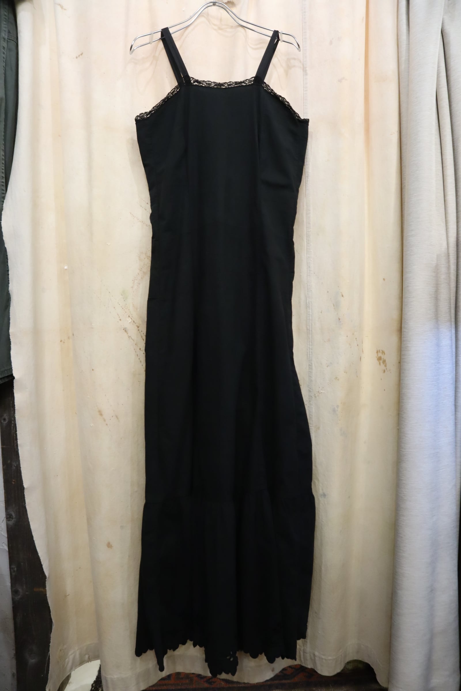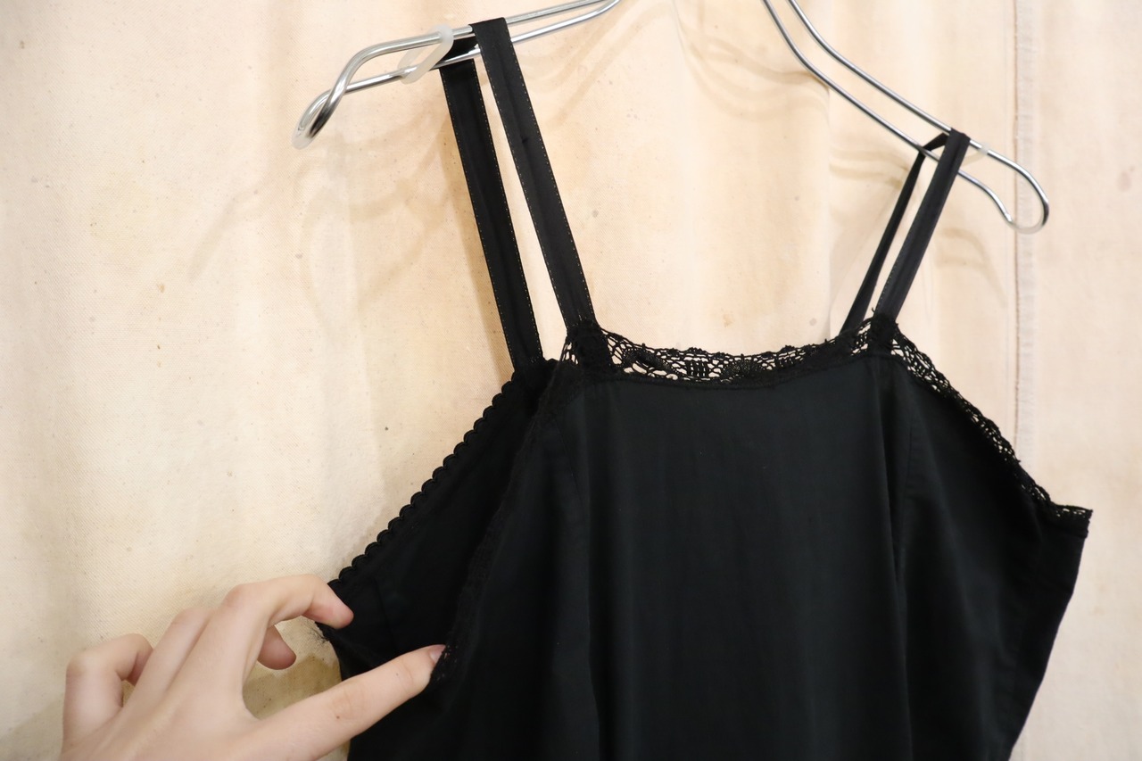 antique black plain night camisole dress [k-5177]
