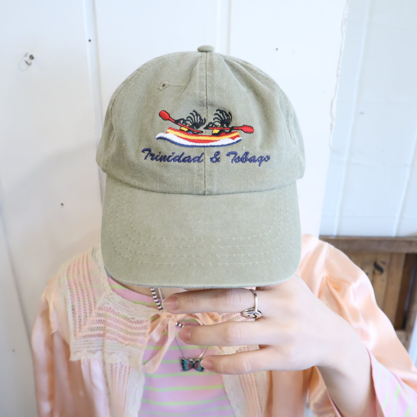 トリニダードトバコの英字とボート競技のような刺繍が可愛いキャップ♡
