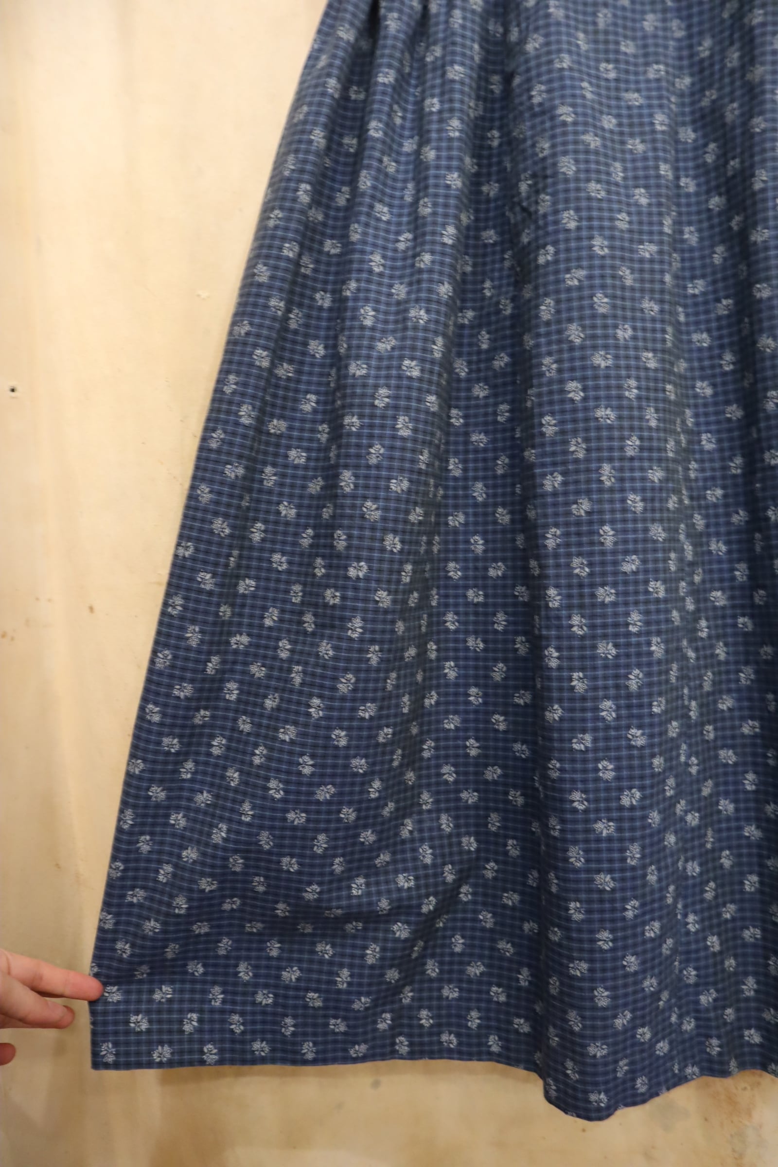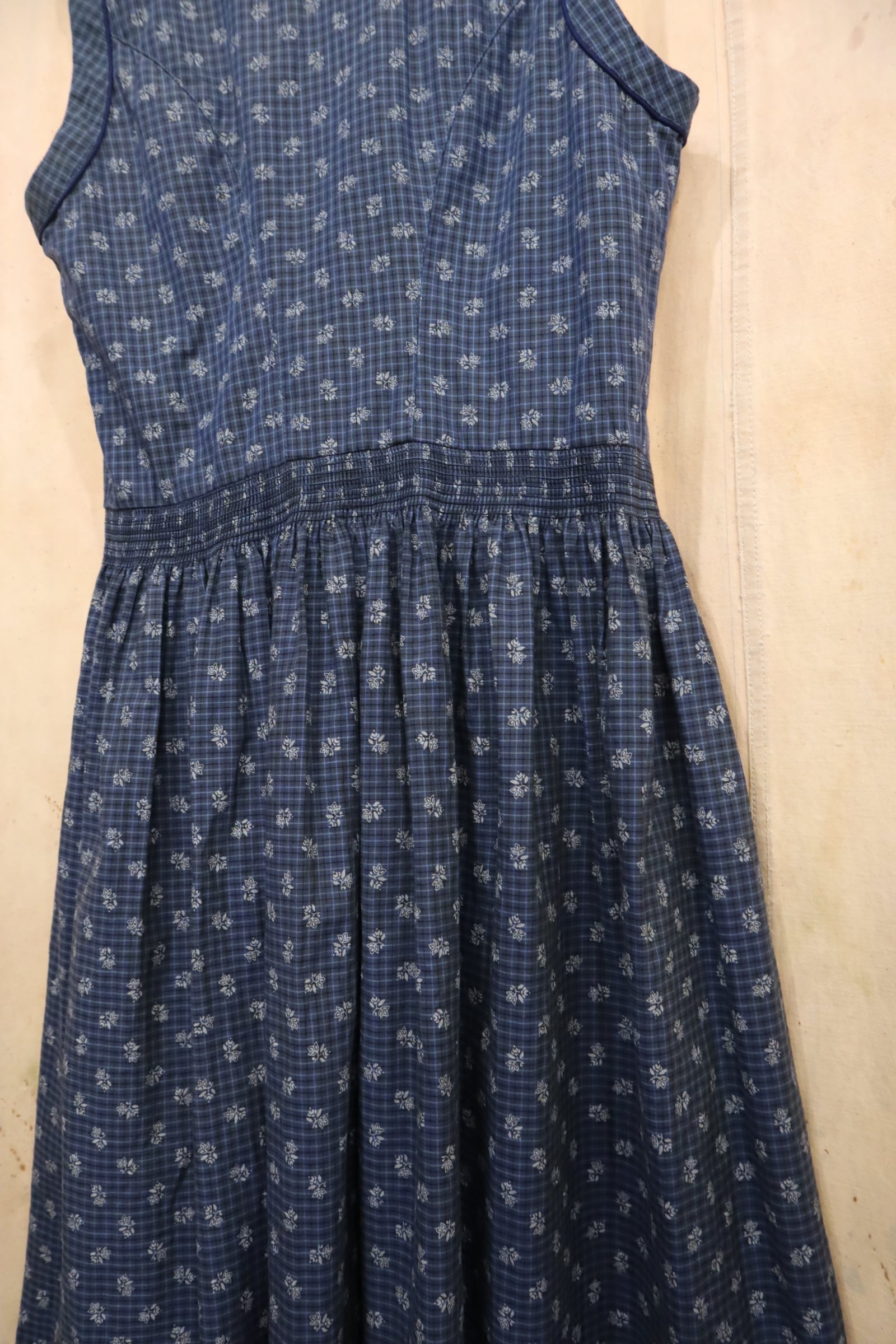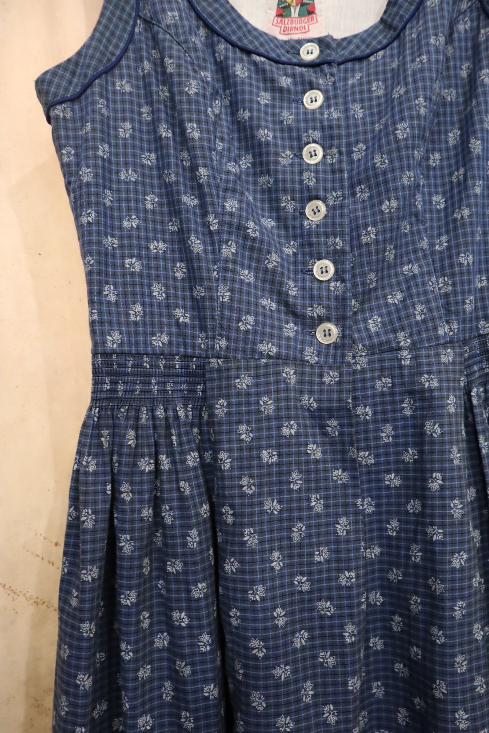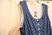 blue×white plaid&leaf sleeveless tyrol dress [l-5184]