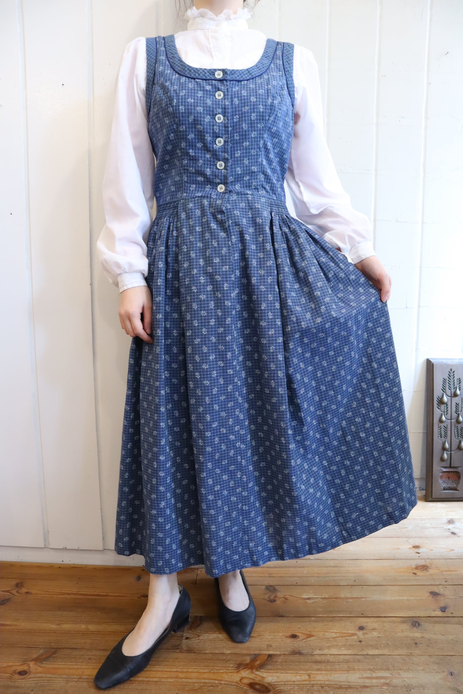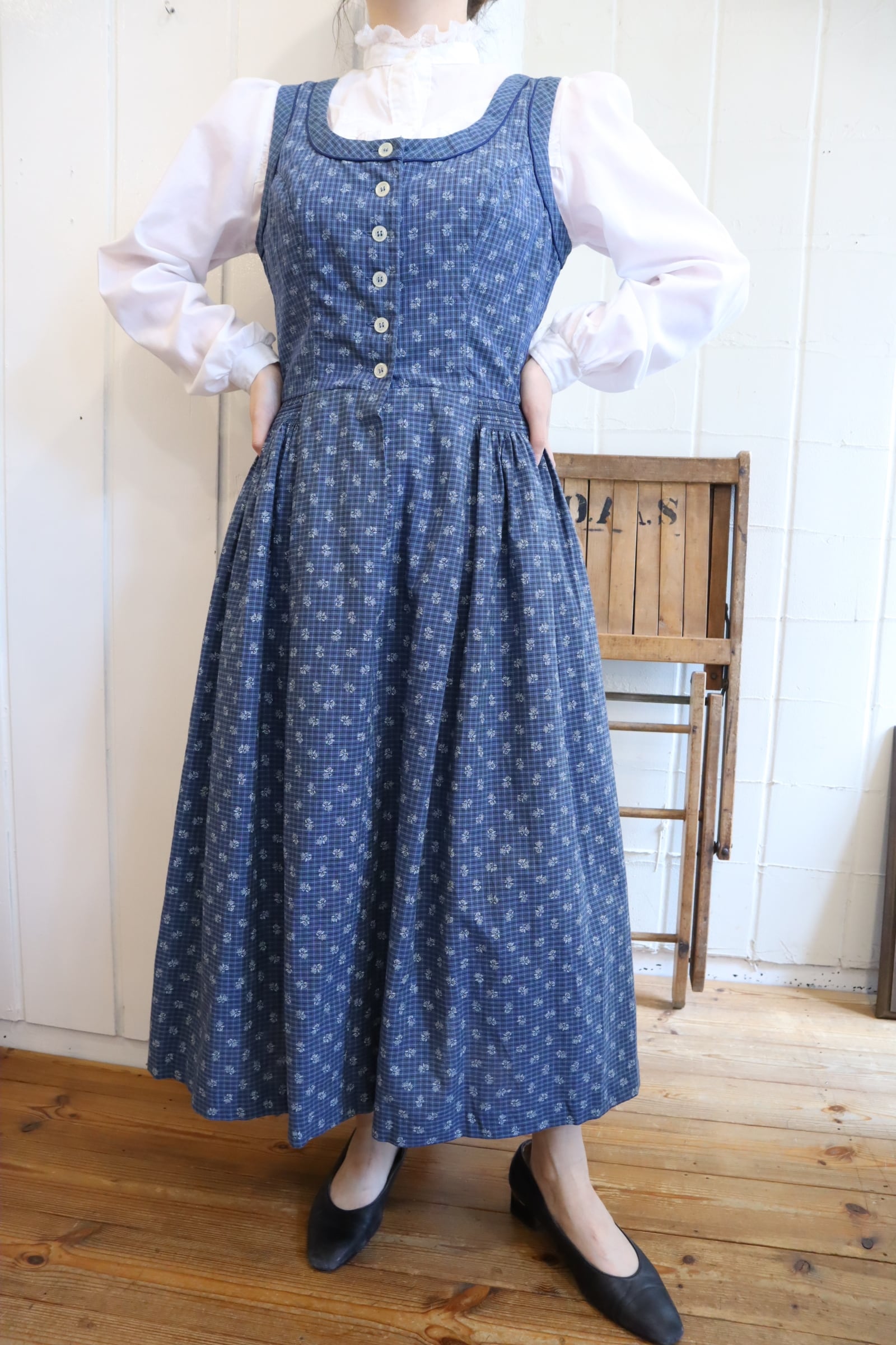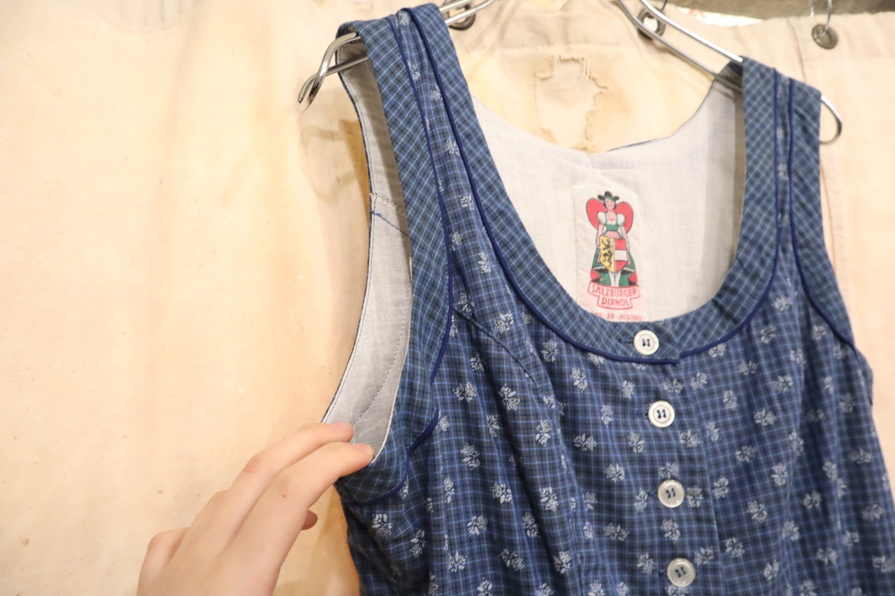 ウエスト部分のシルエットやタックの入ったスカートが素敵なチロルドレスです。