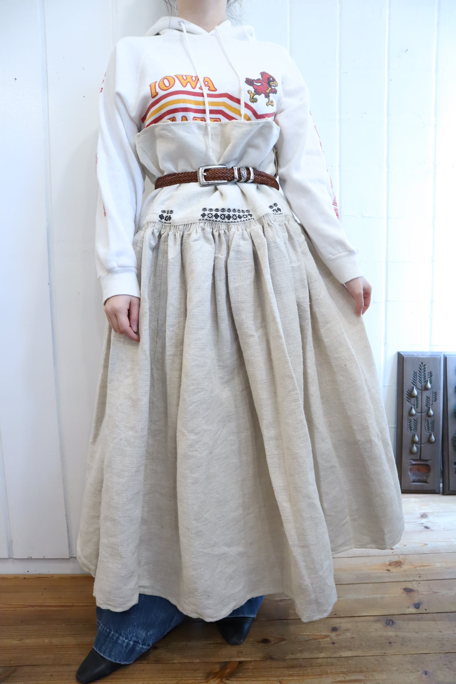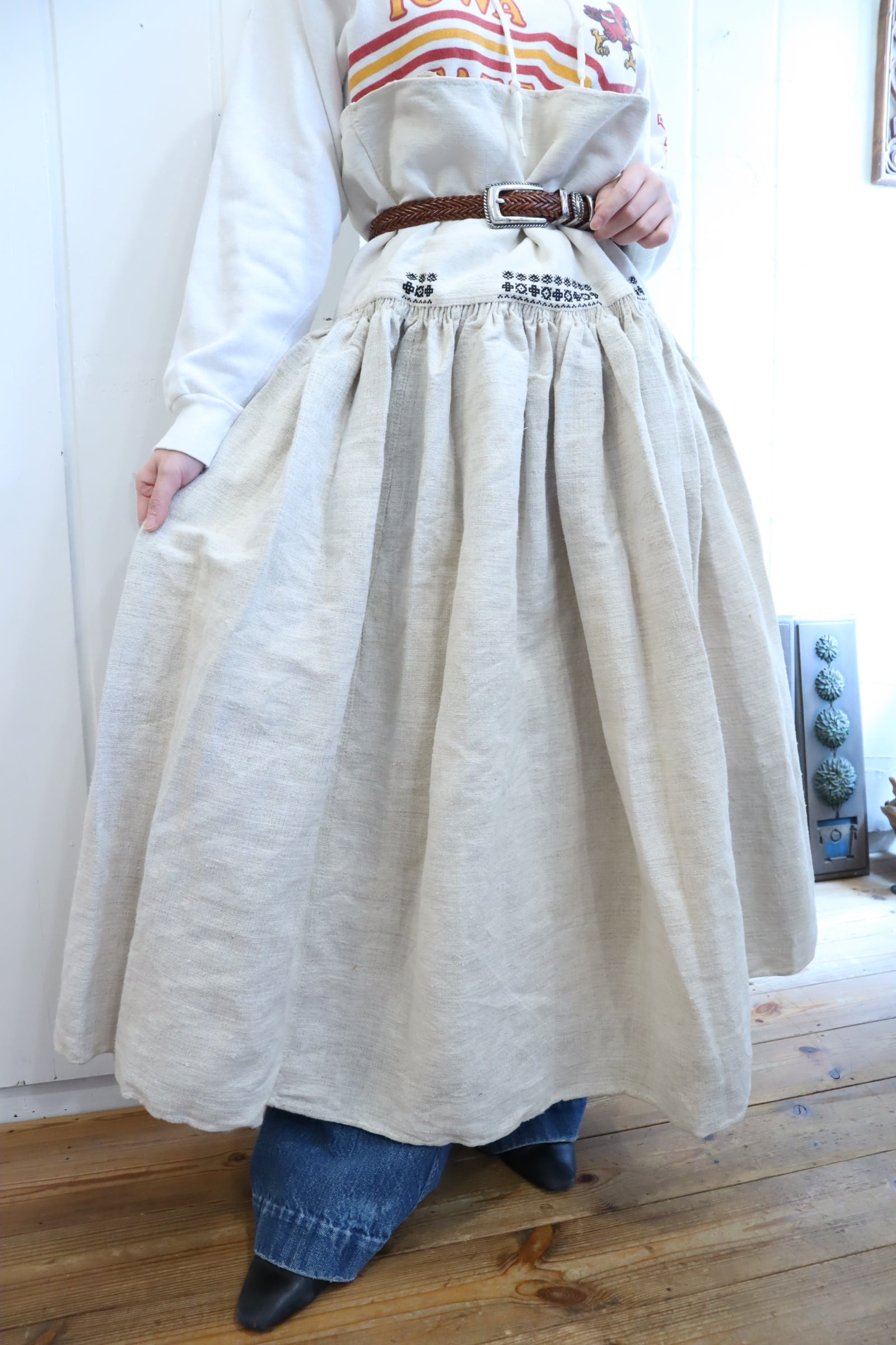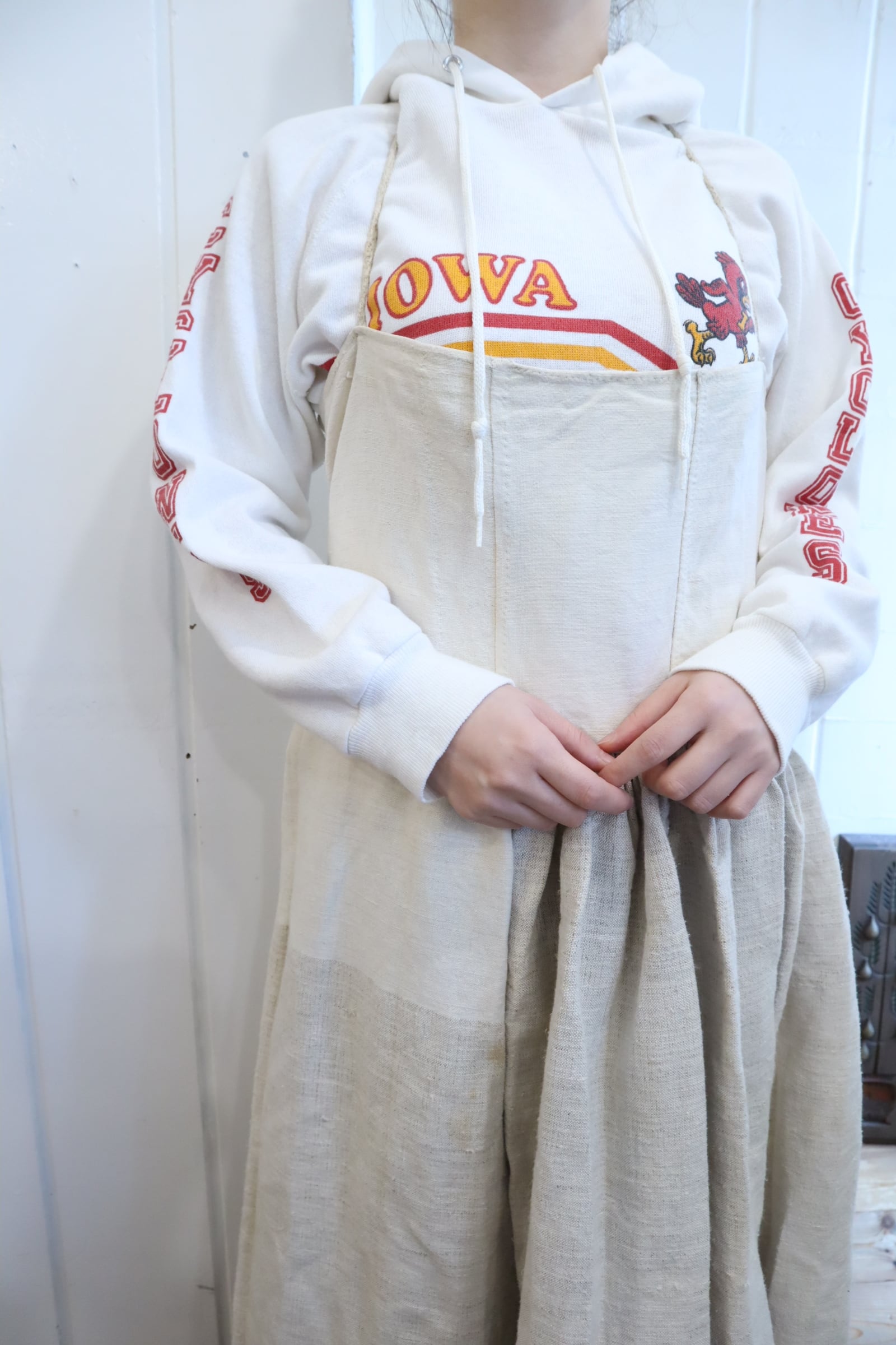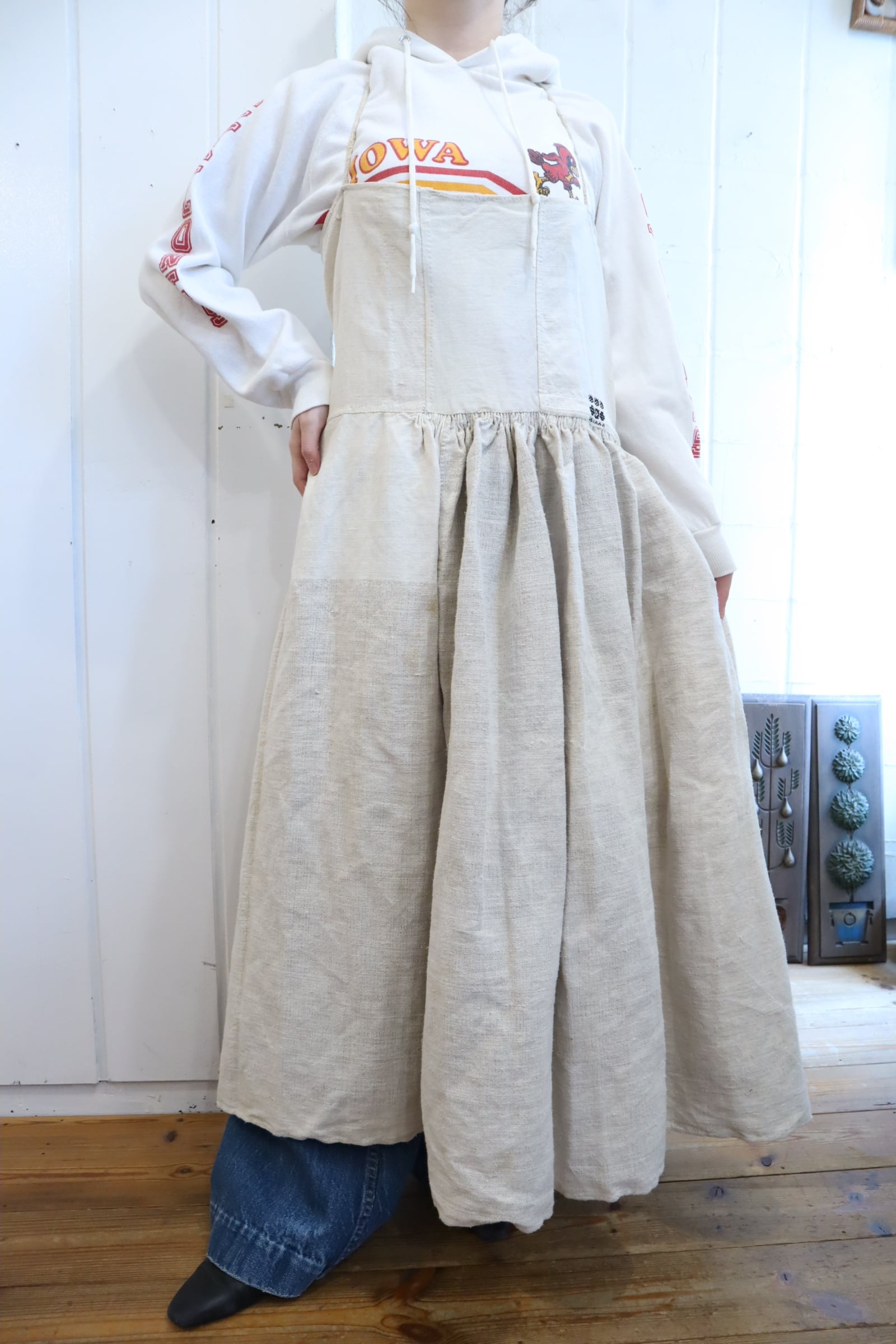たっぷりの張りのある生地感が可愛いアンティークのジャンパースカート*