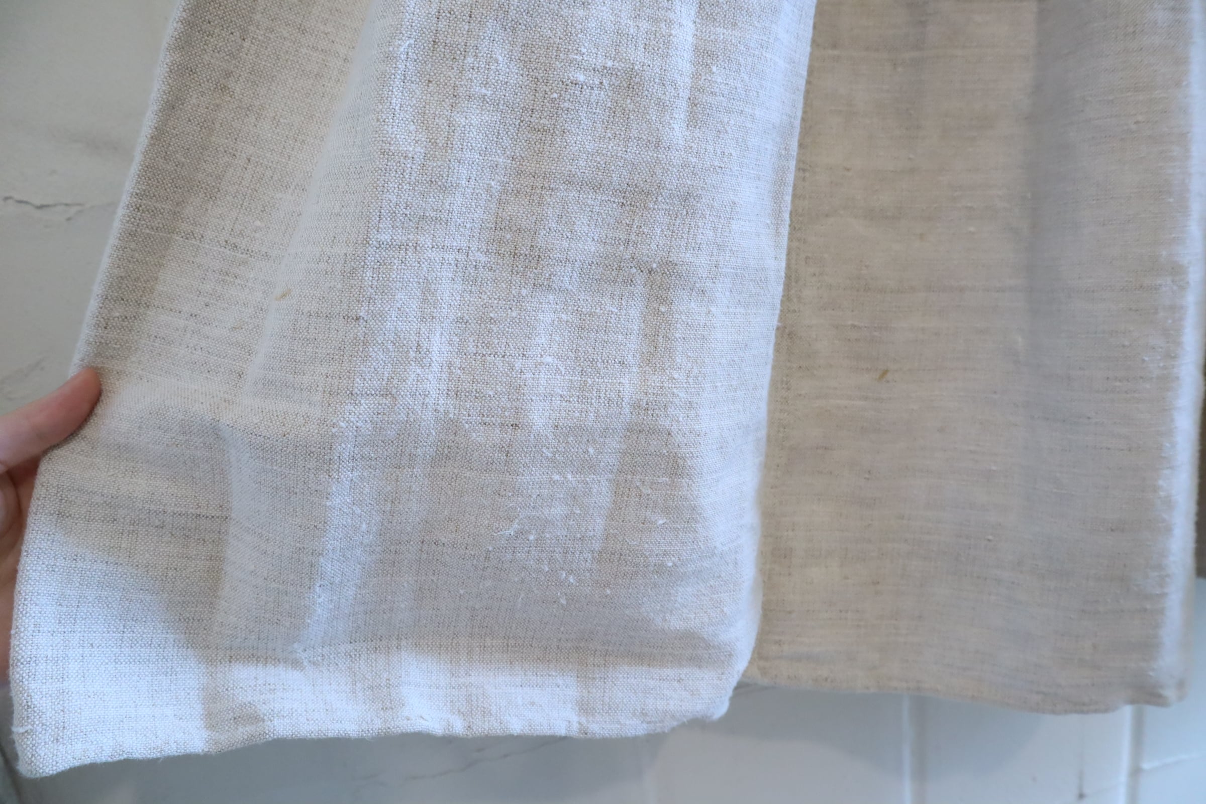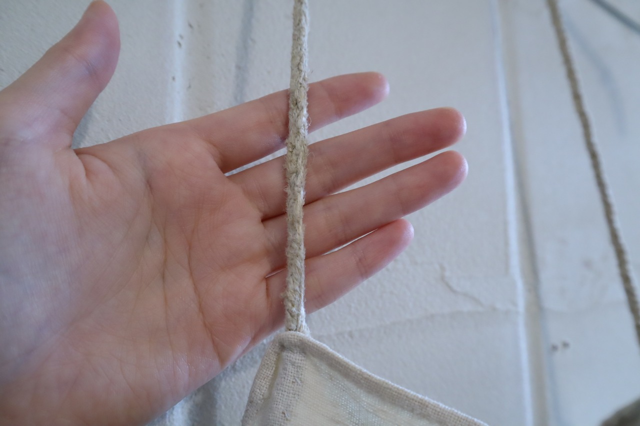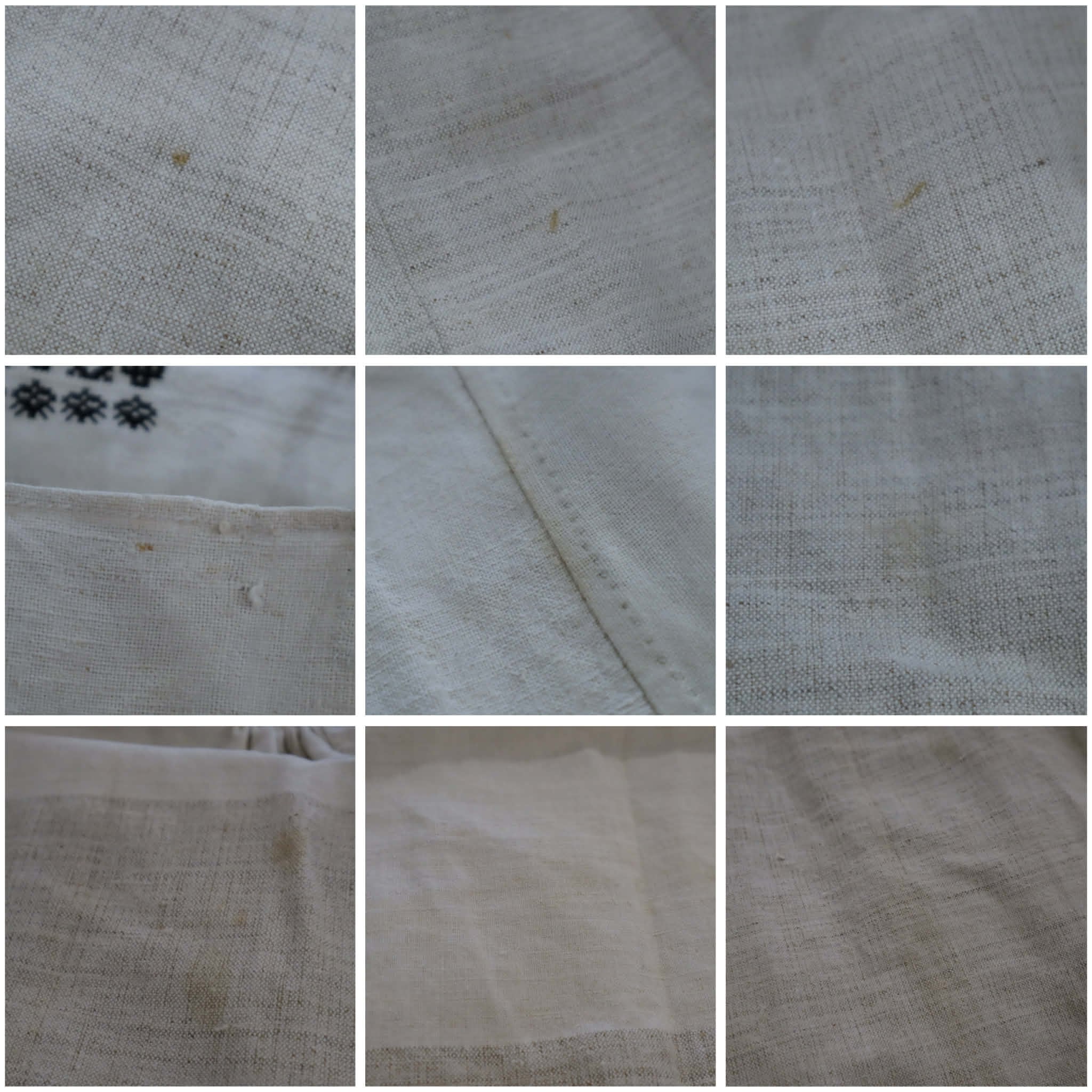 いくつかシミ・汚れ・素材特有のツレや他繊維の混ざり、紐にやや毛羽立ちがございます。
