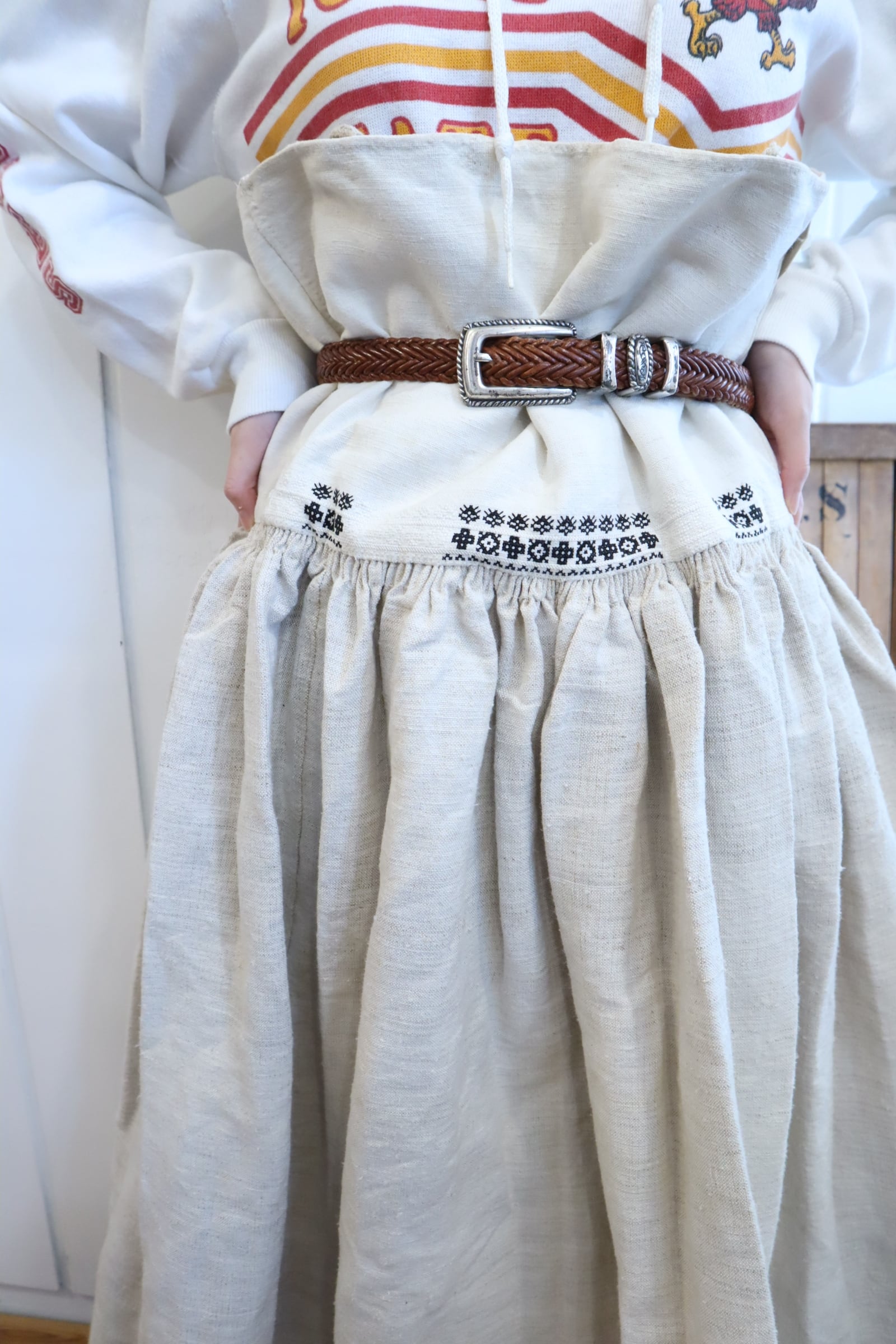 antique ivory×black embroidery jumper skirt [l-5187]