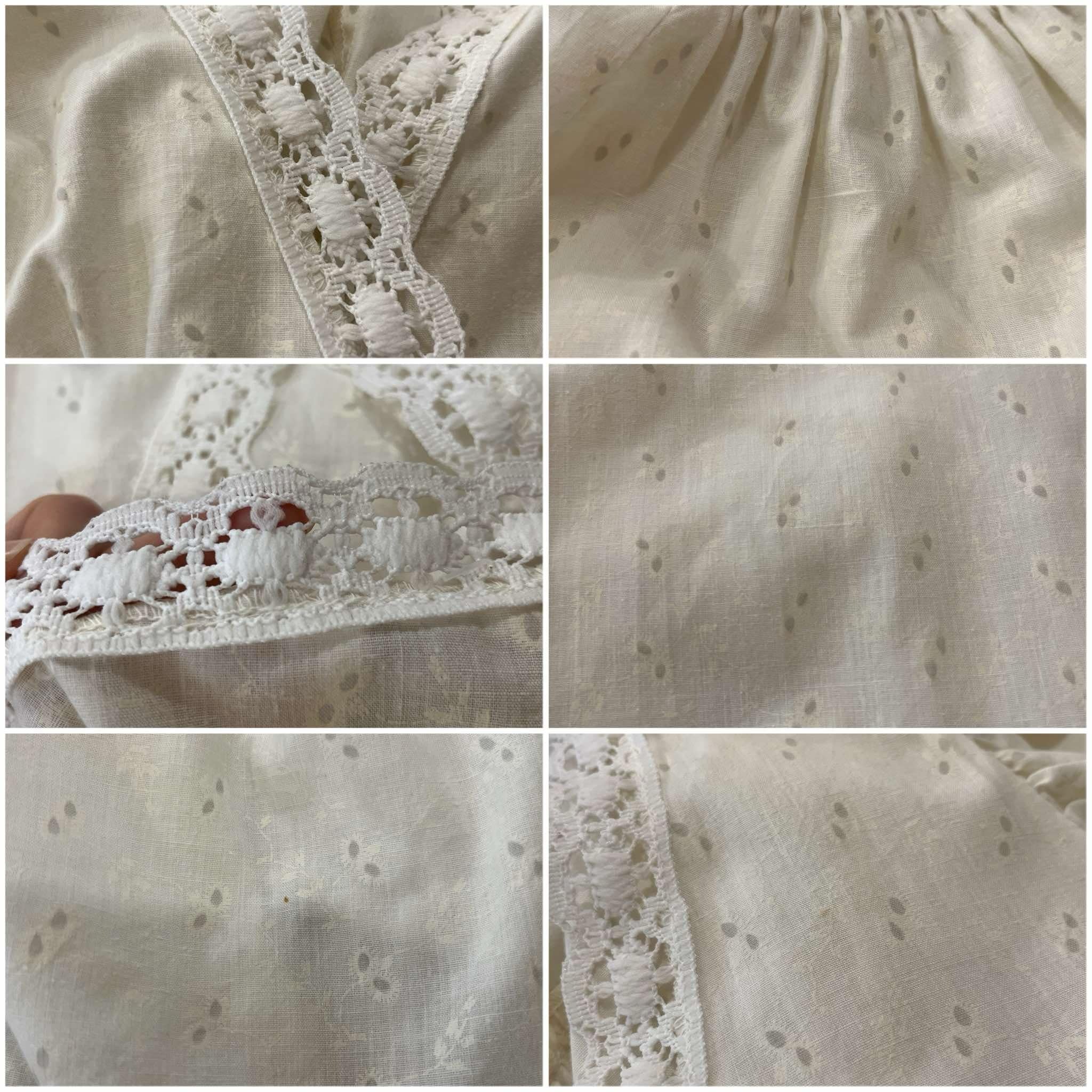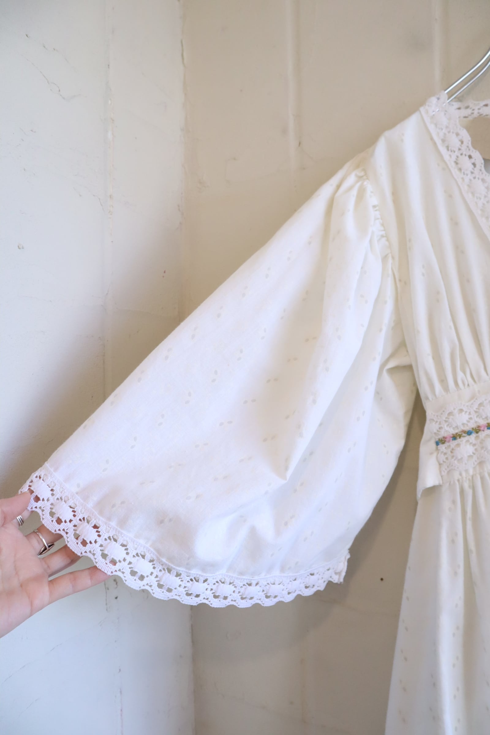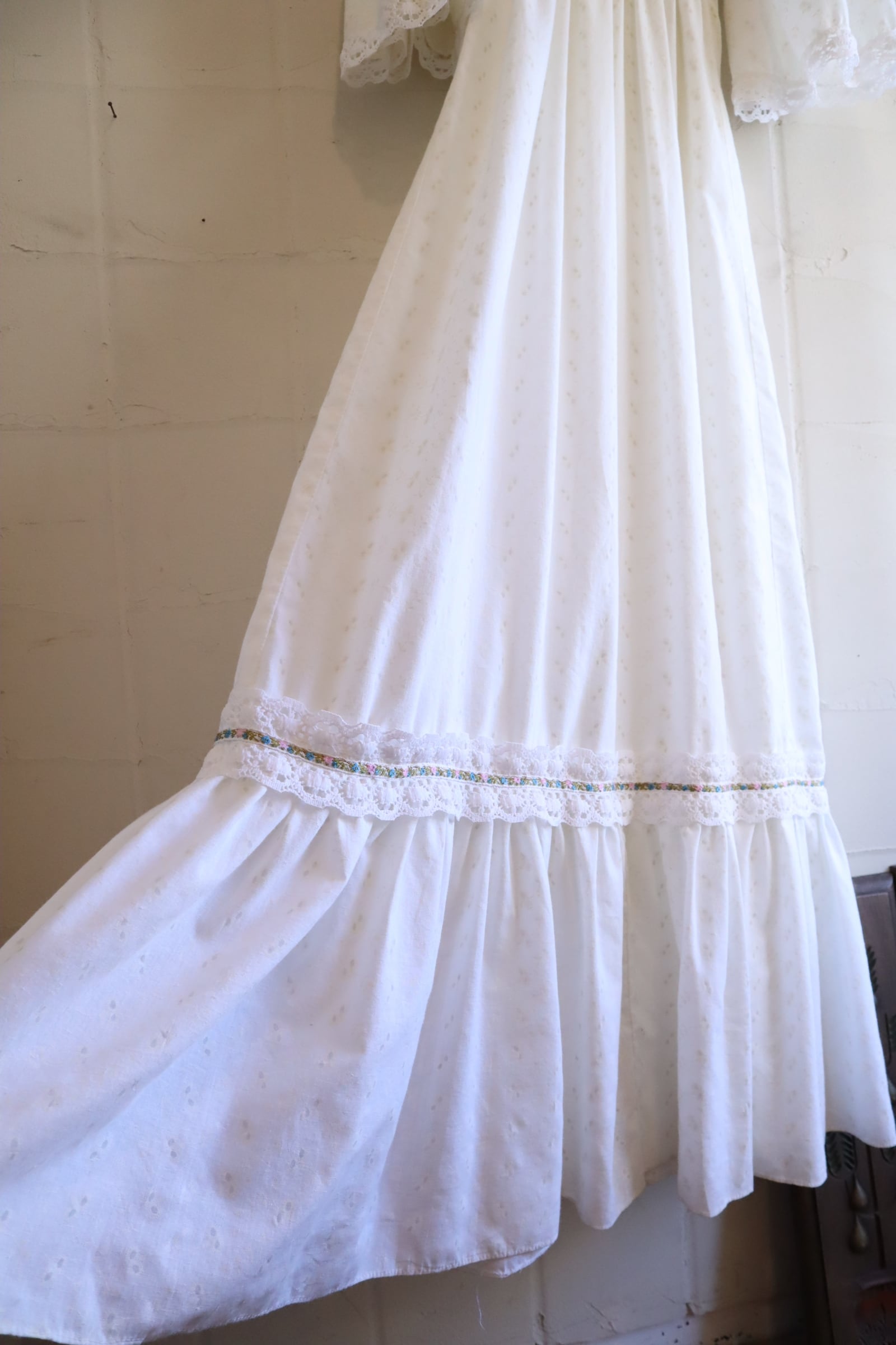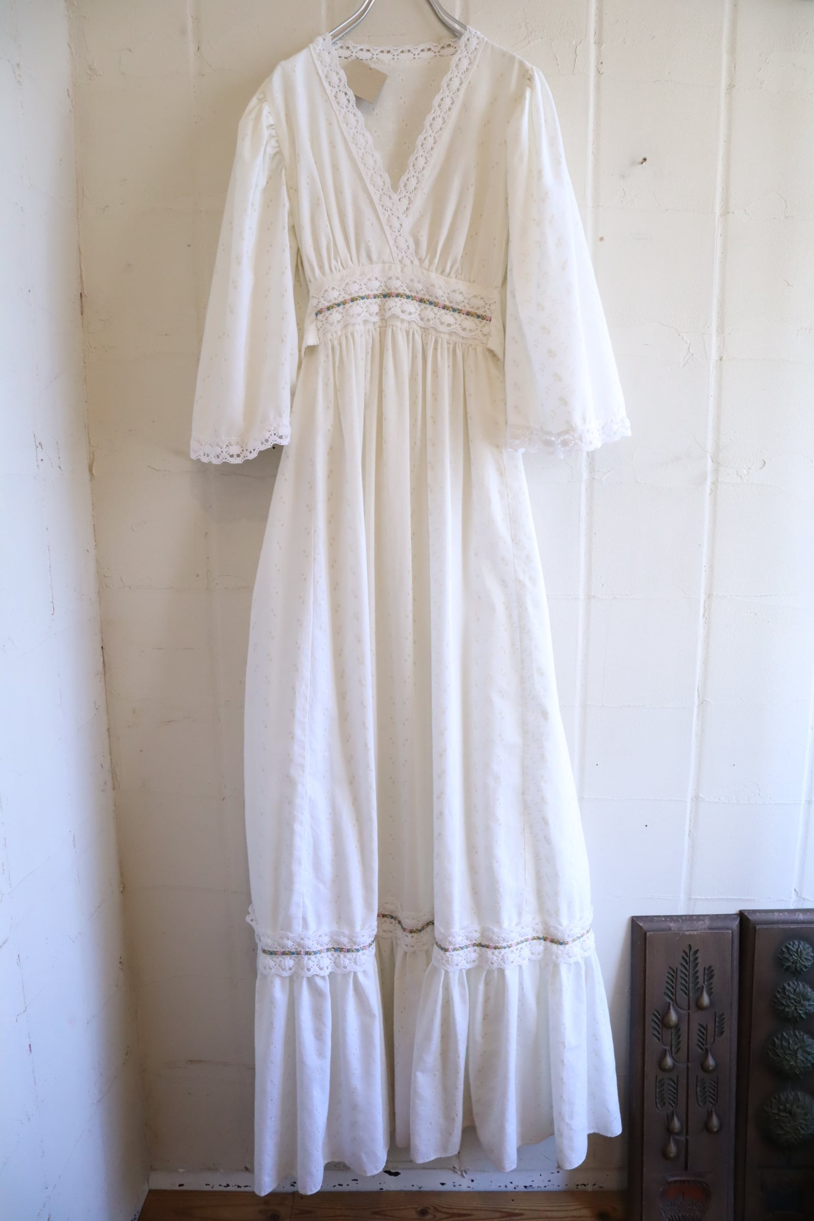 70s white lace design cachecoeur neck dress [l-5192]