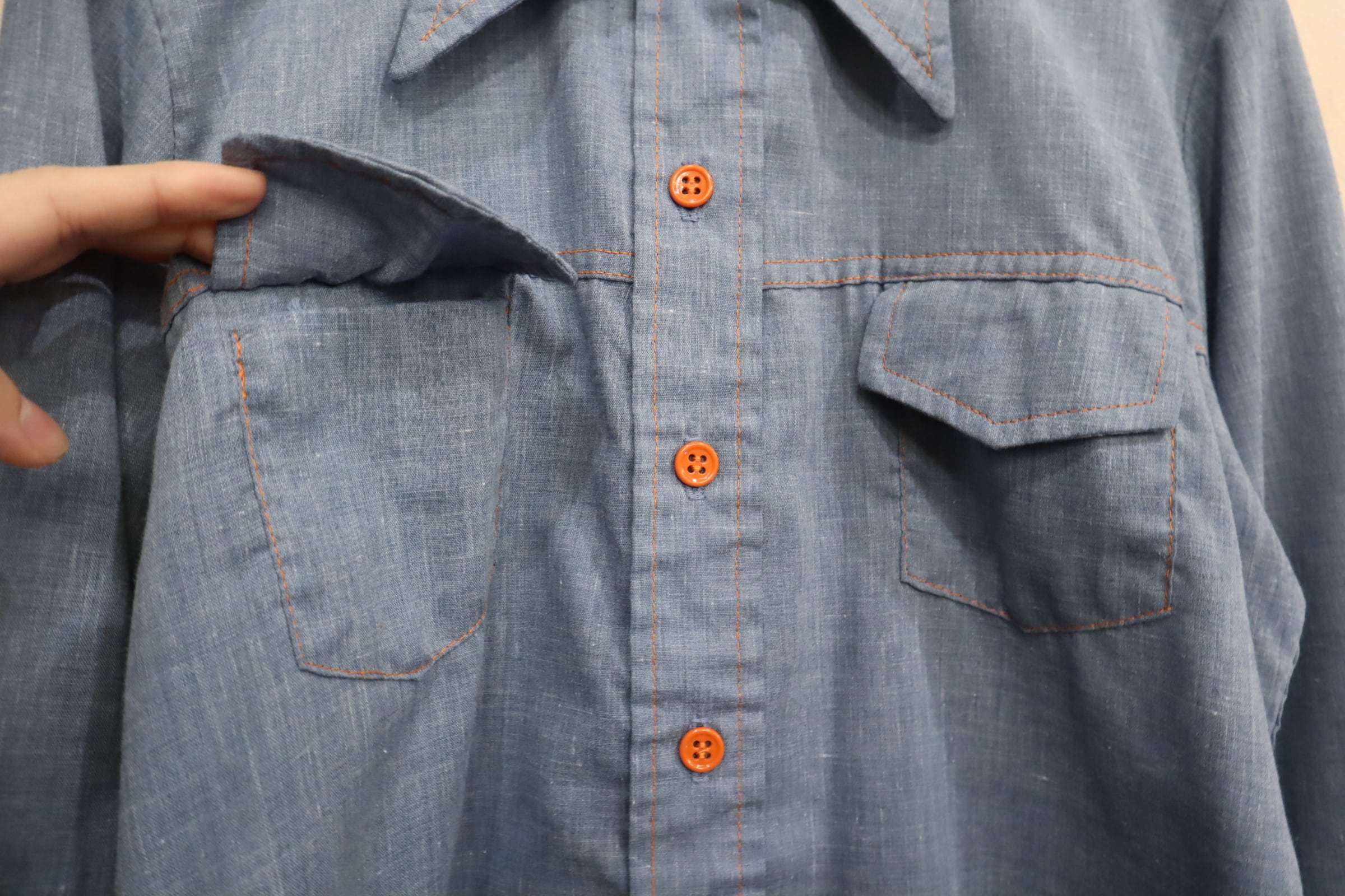 ステッチとボタンがオレンジで統一感もあって可愛い一枚ですね♡