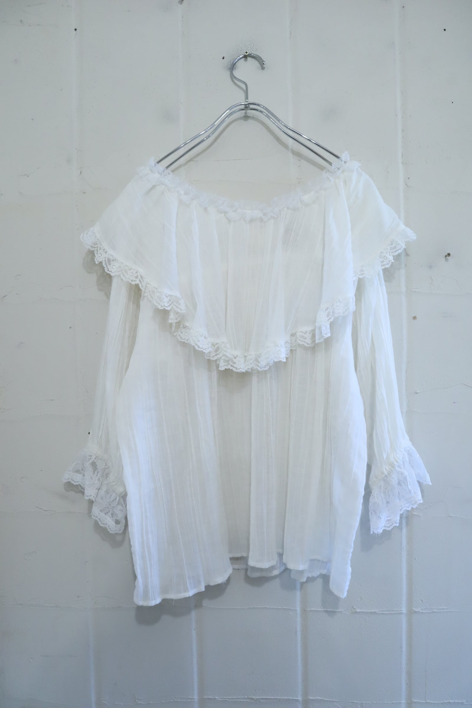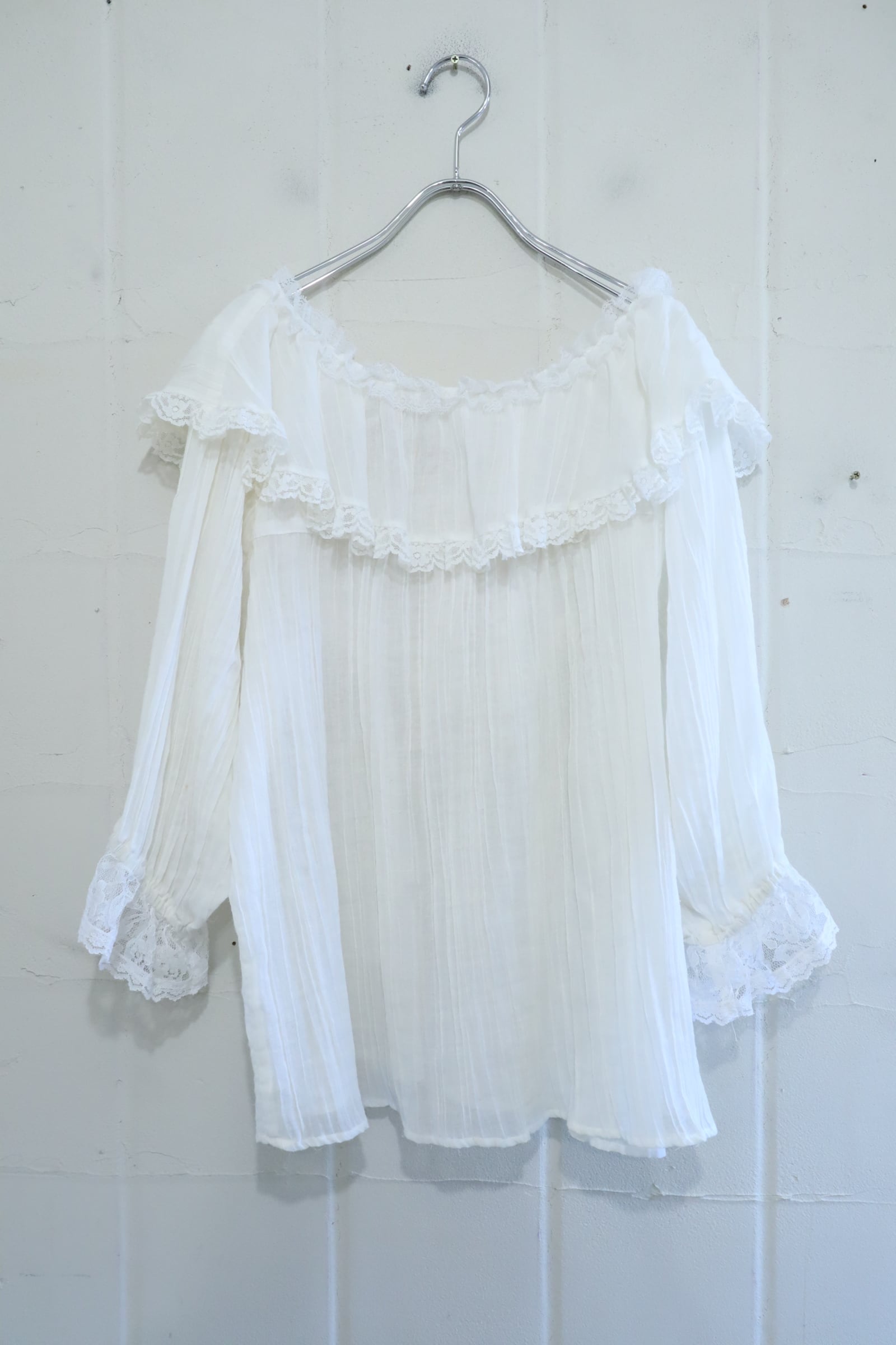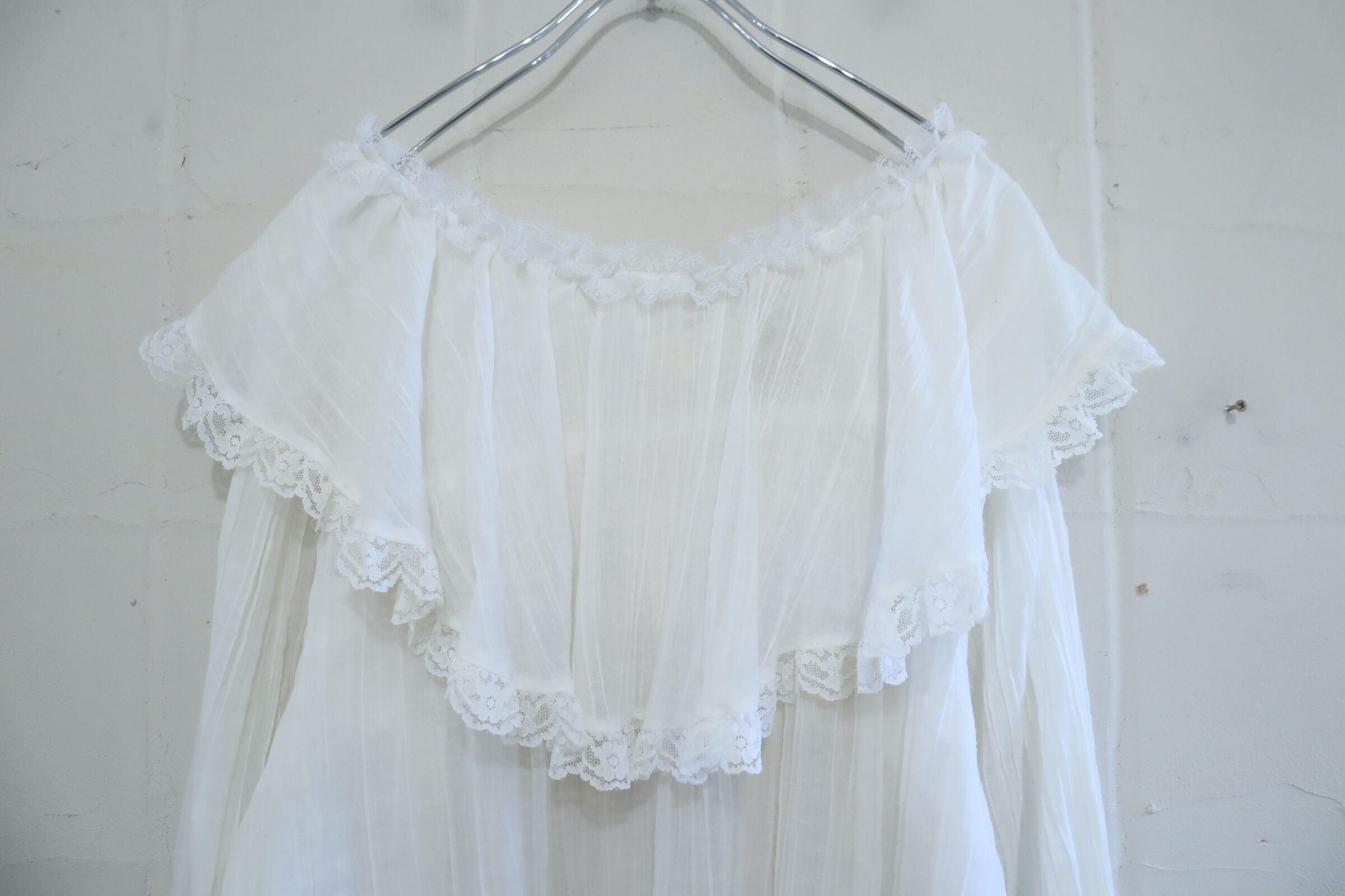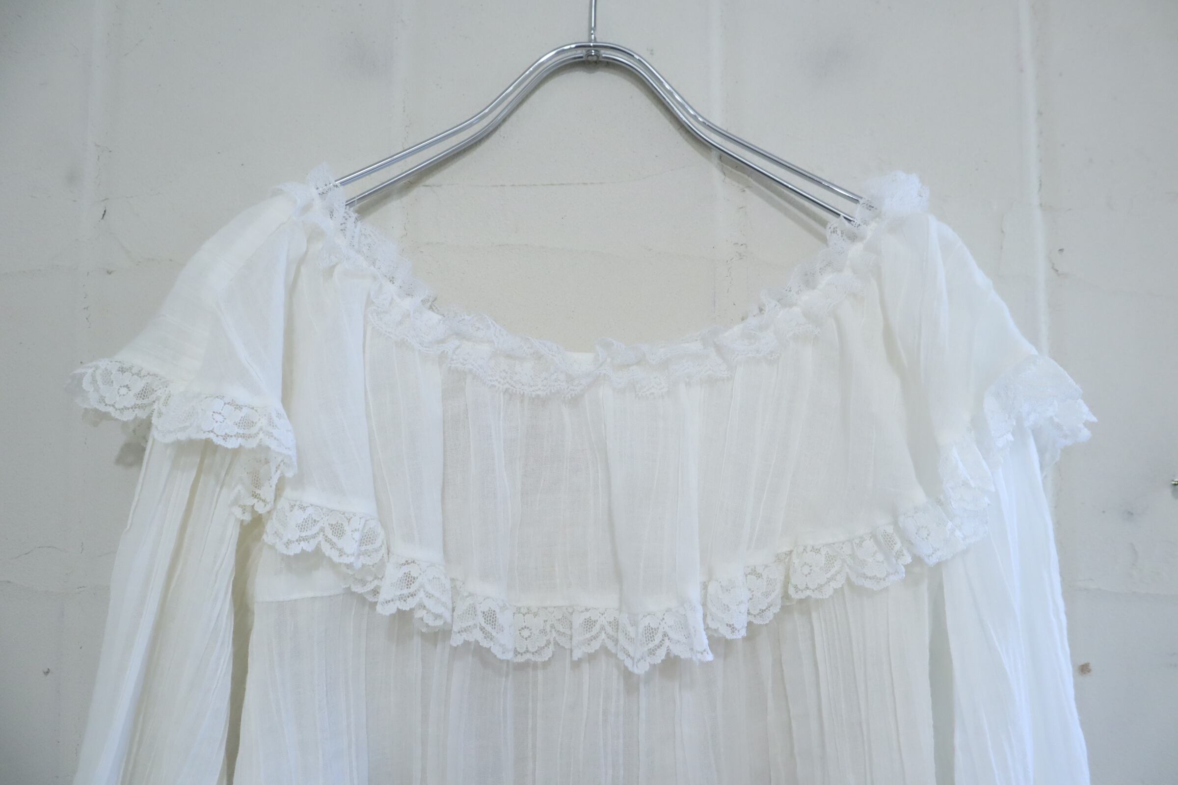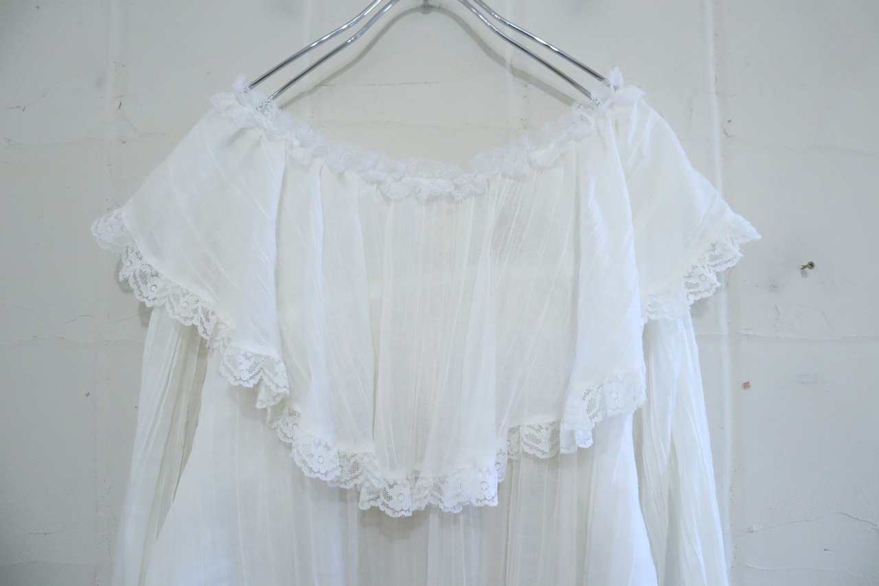 70s GUNNE SAX white sheer gauze blouse [l-5205]