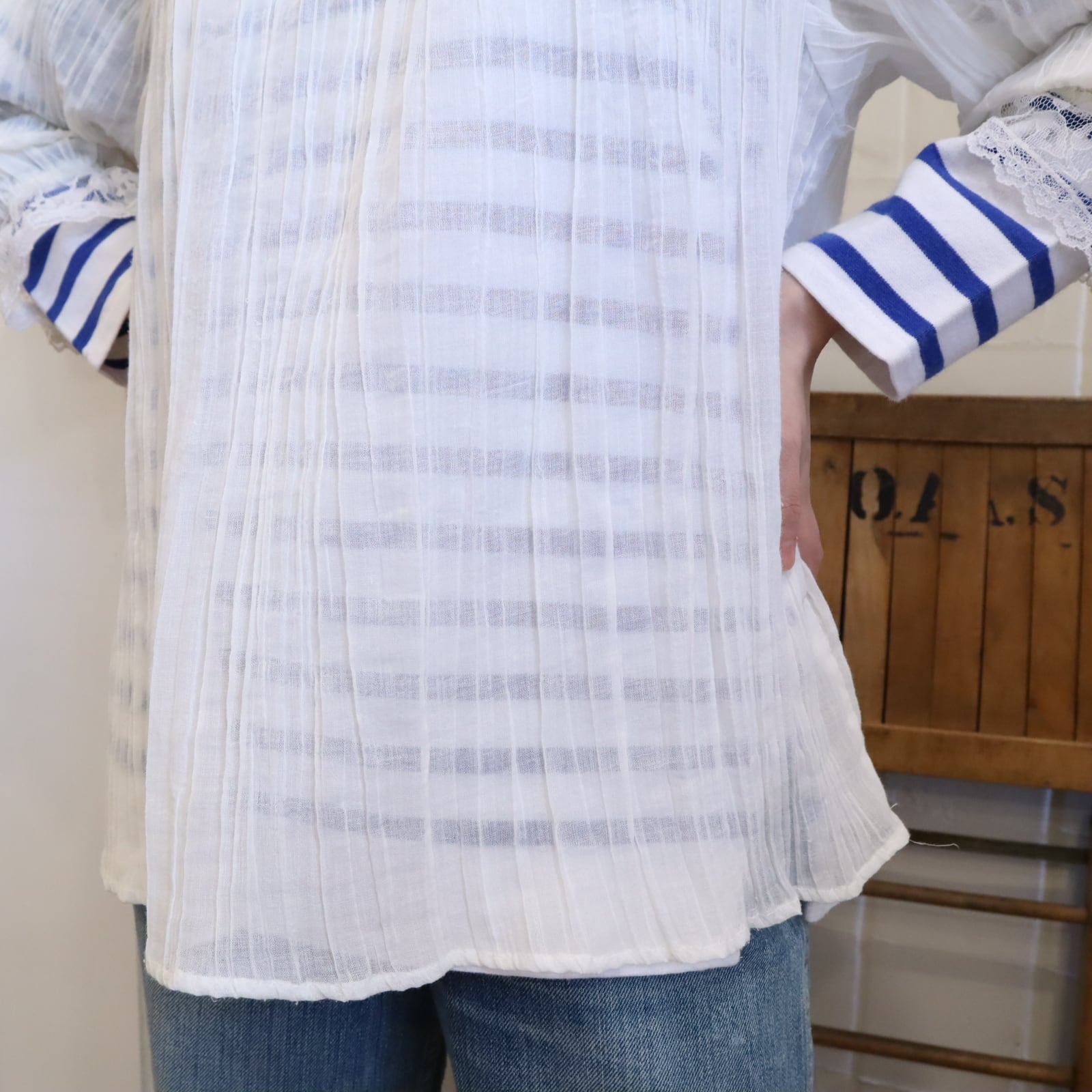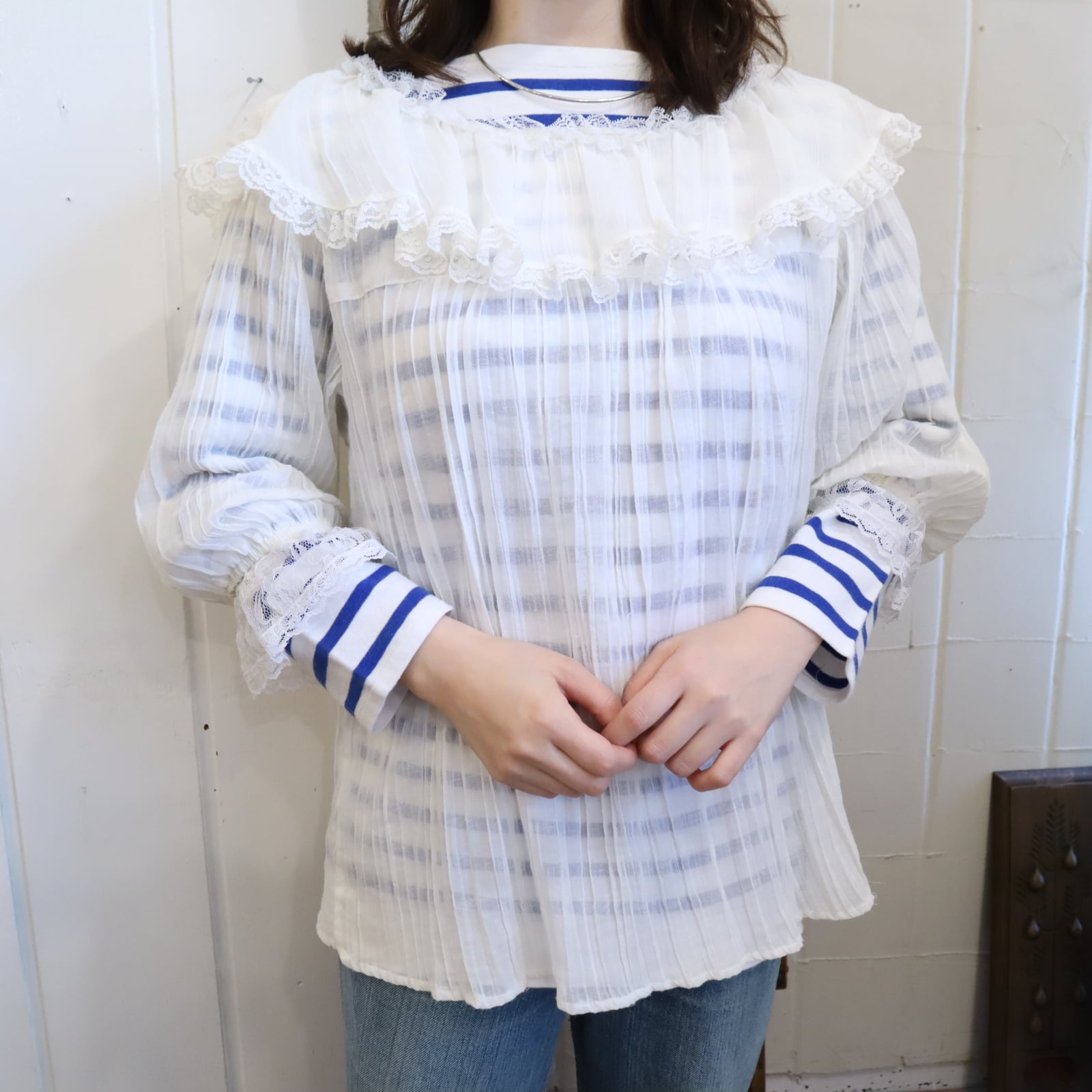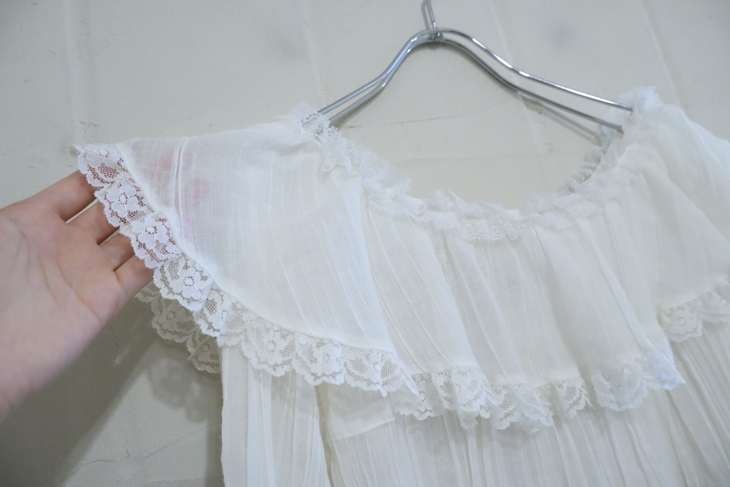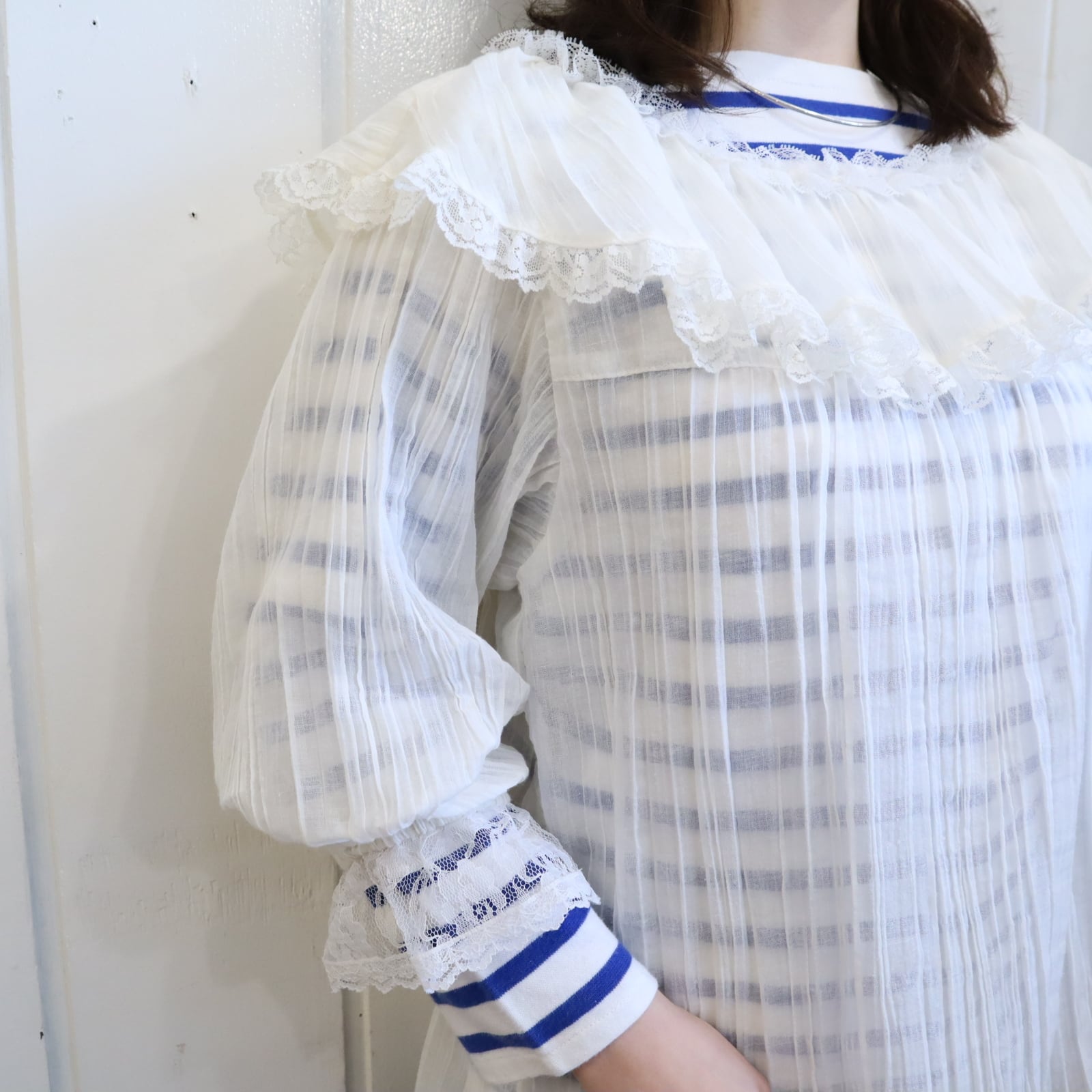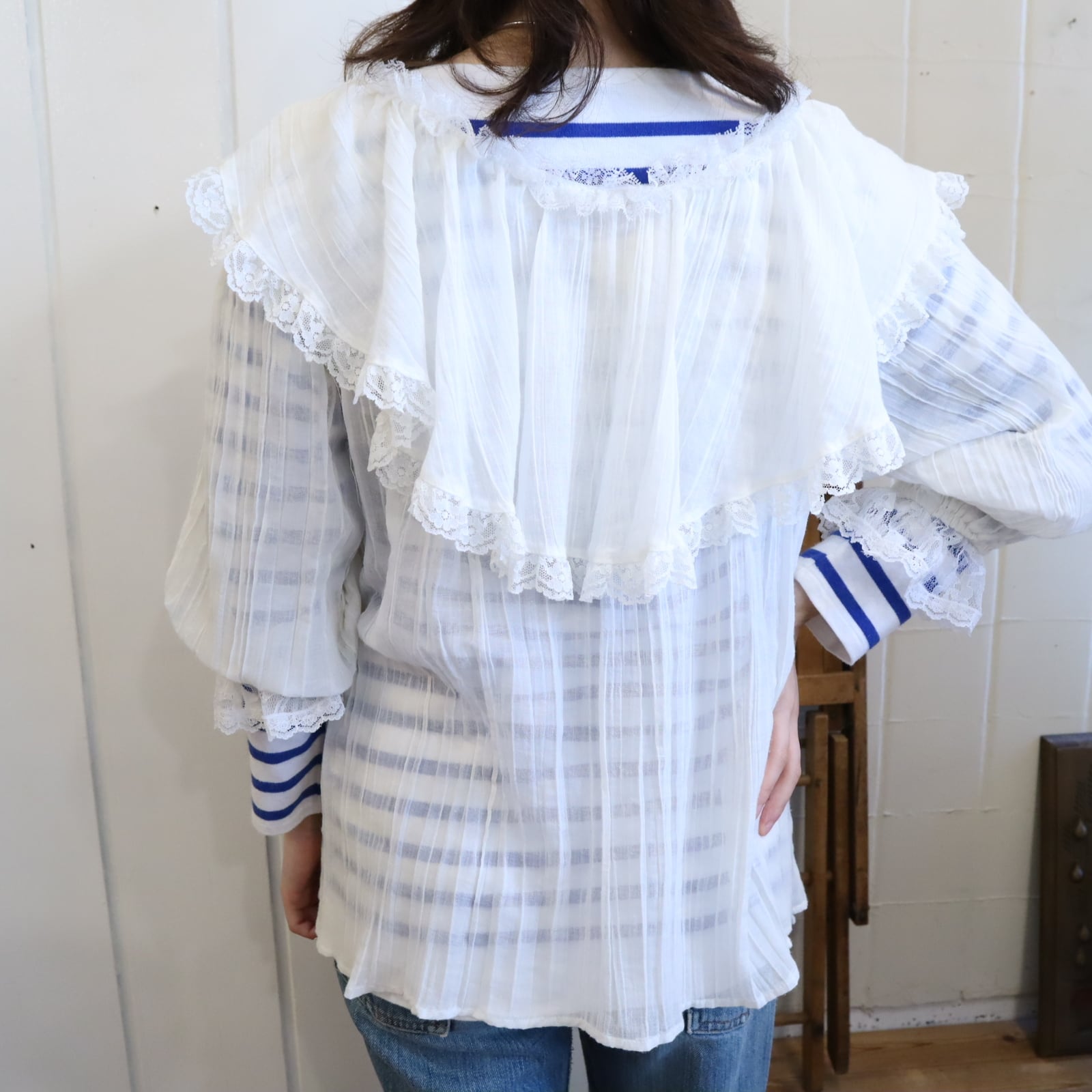 70s GUNNE SAX white sheer gauze blouse [l-5205]