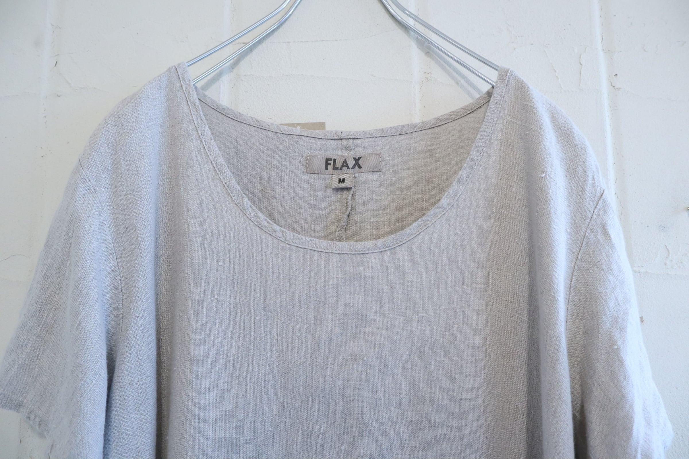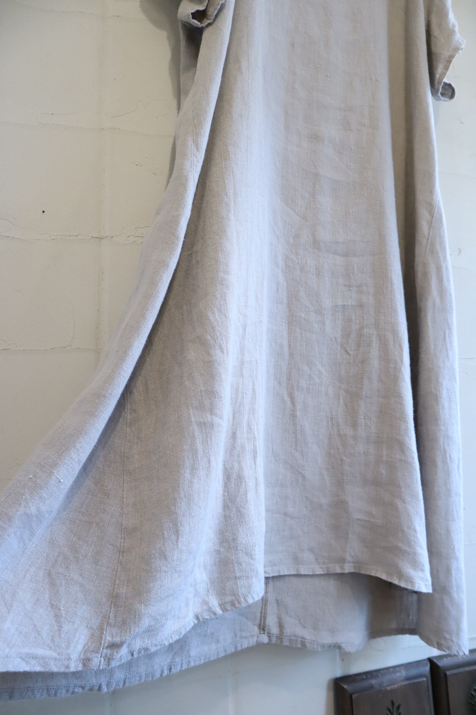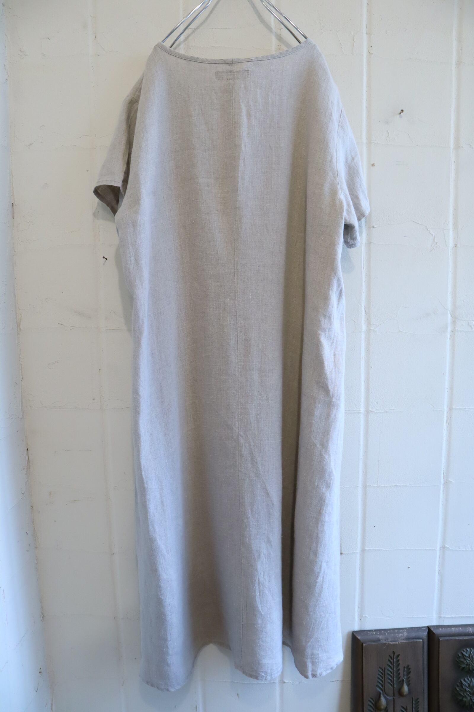 FLAX lightgray plain short sleeve linen dress [l-5210]