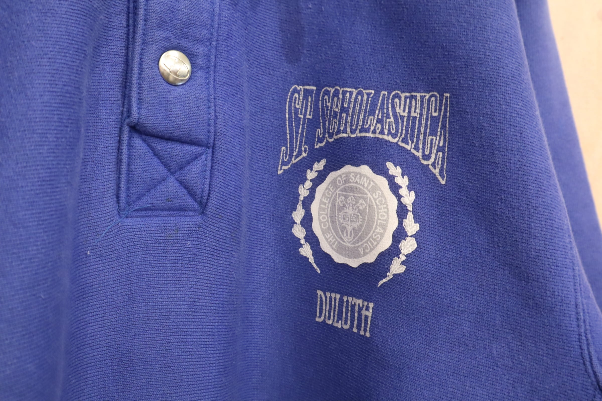 80s Champion dullblue×white college print reverse weave sweat [k-5213]
