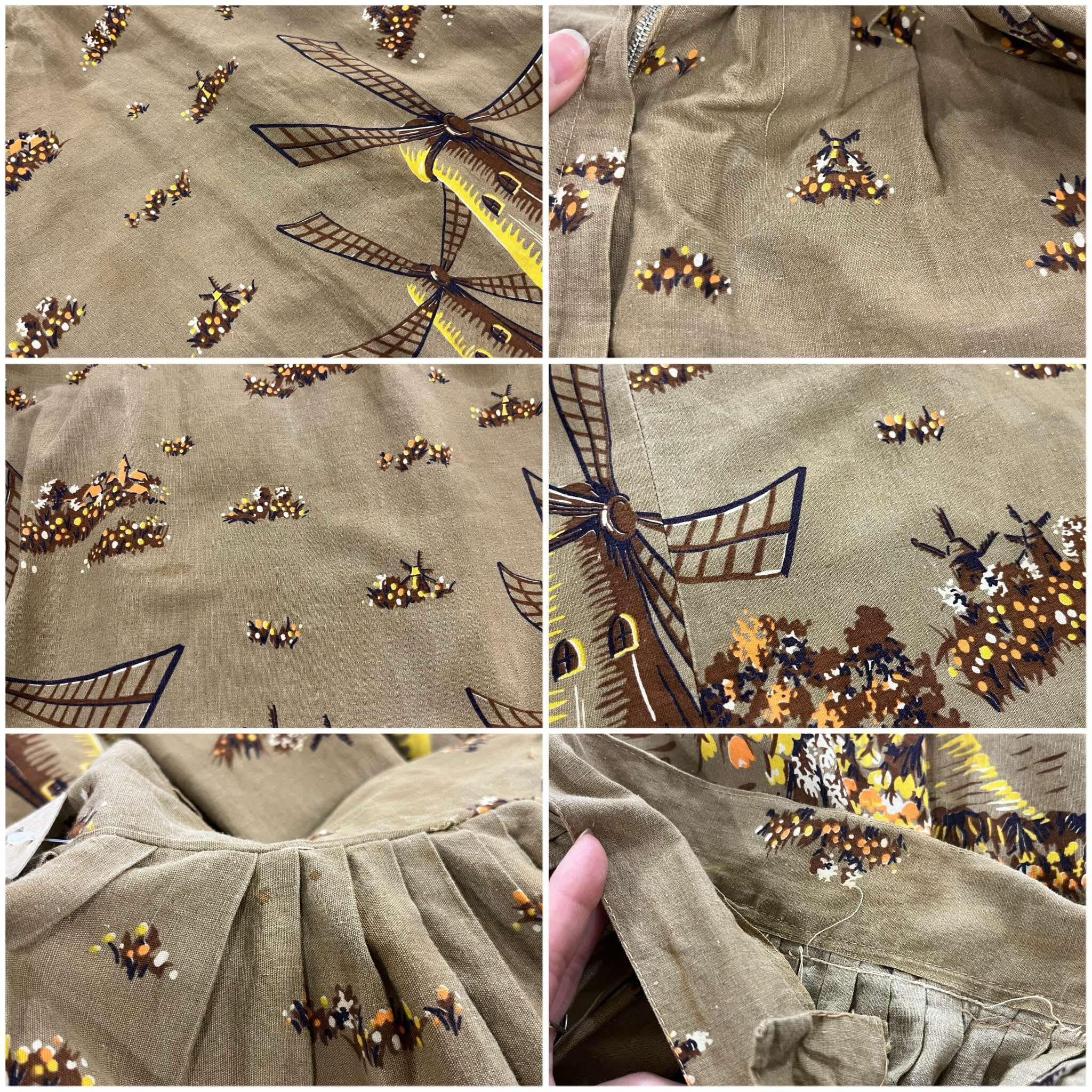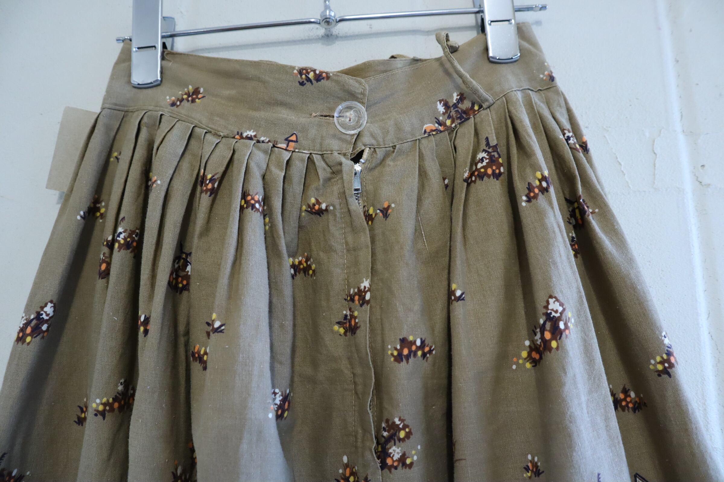 50s-60s lightbrown landscape pattern flare skirt [l-5216]