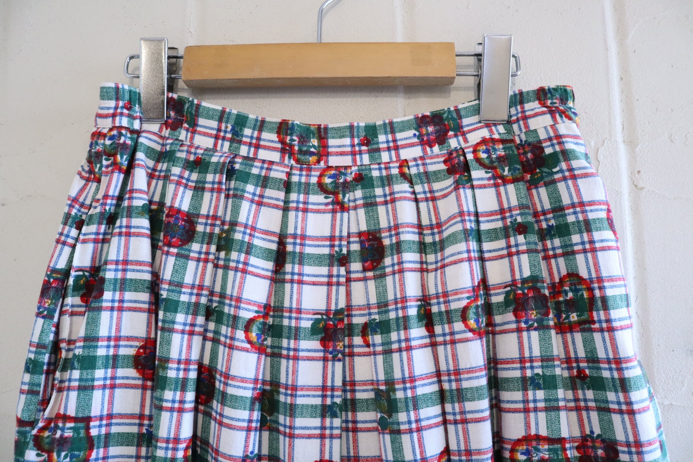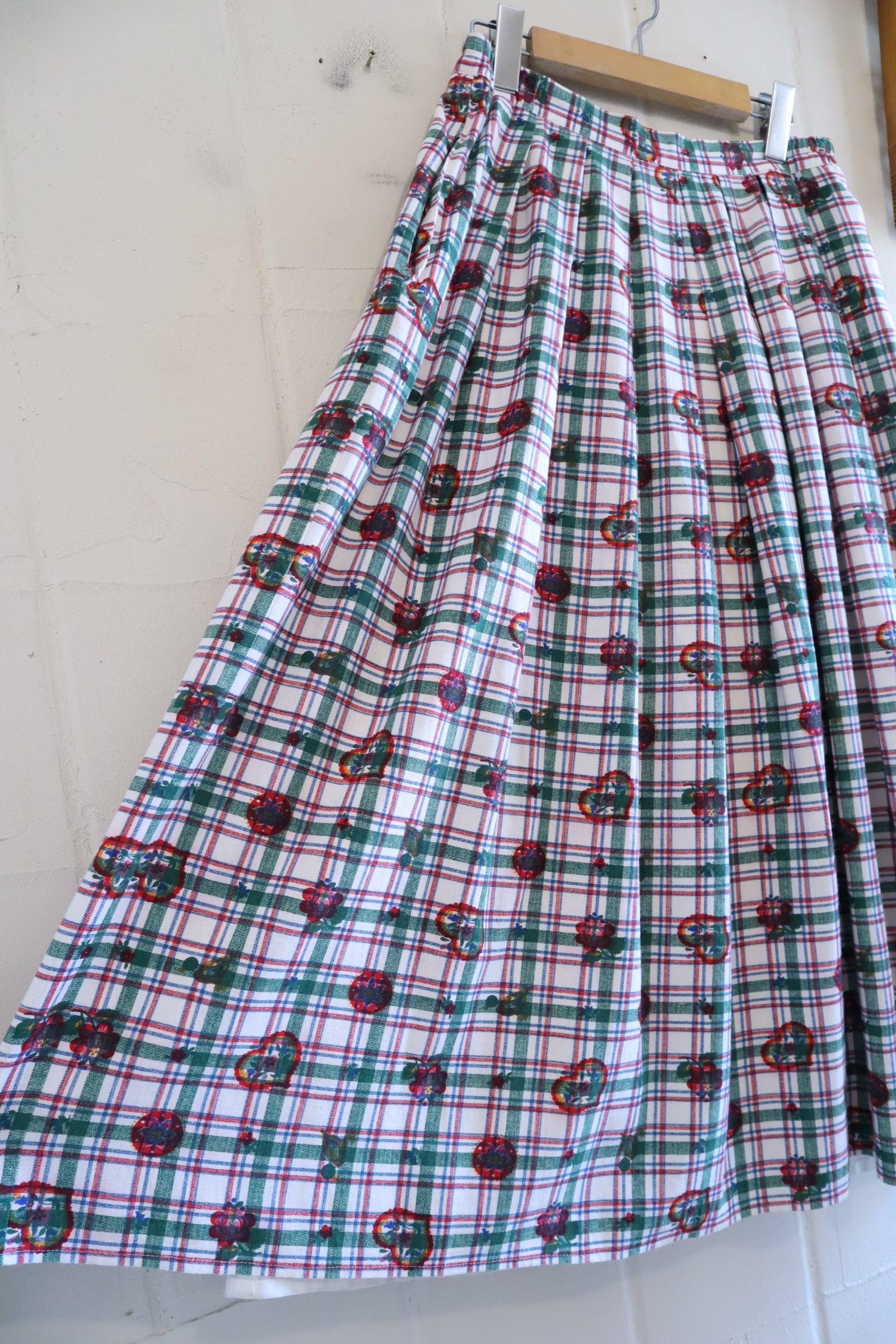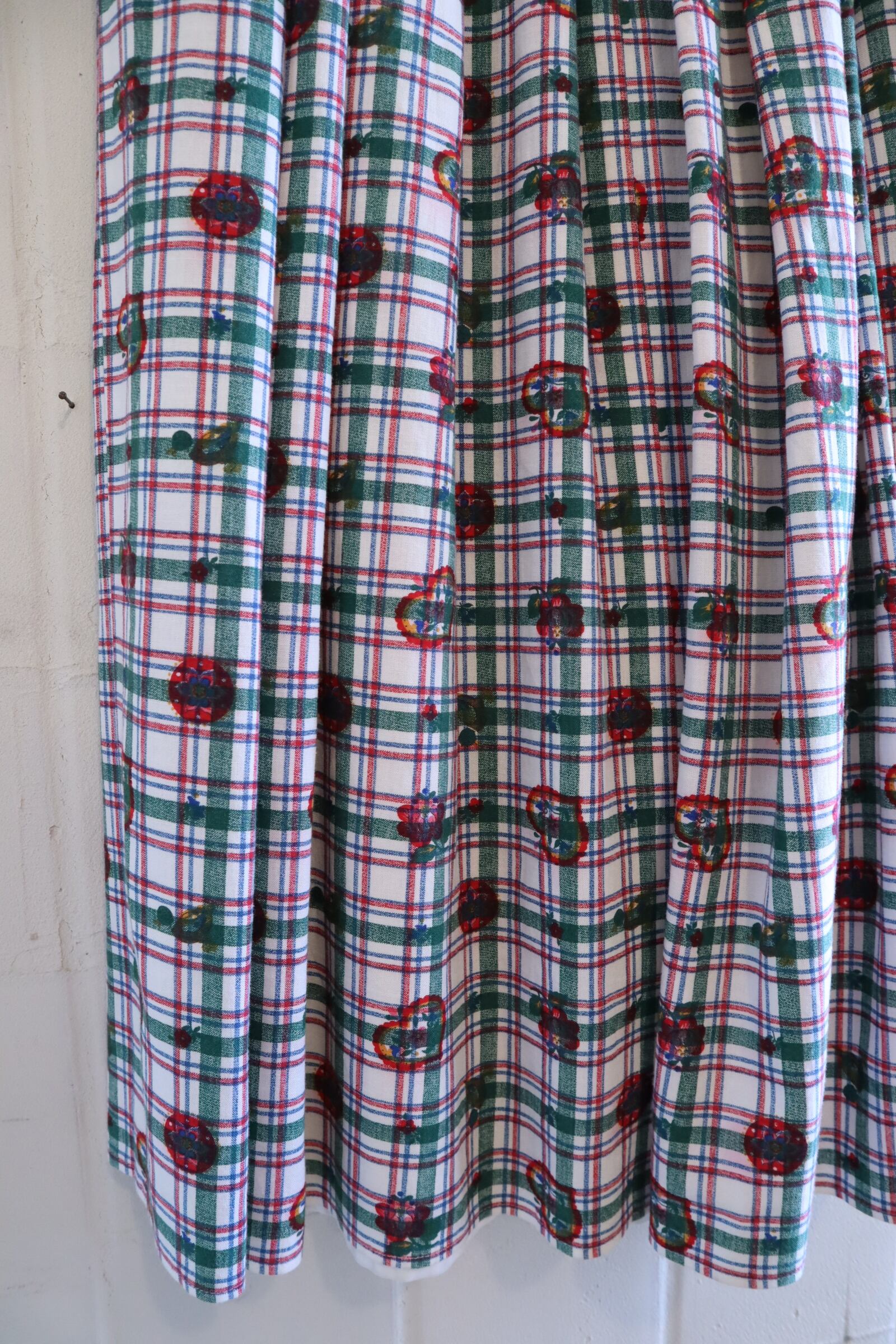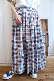 white×green×red plaid&♡&flower pattern tyrol skirt [l-5229]