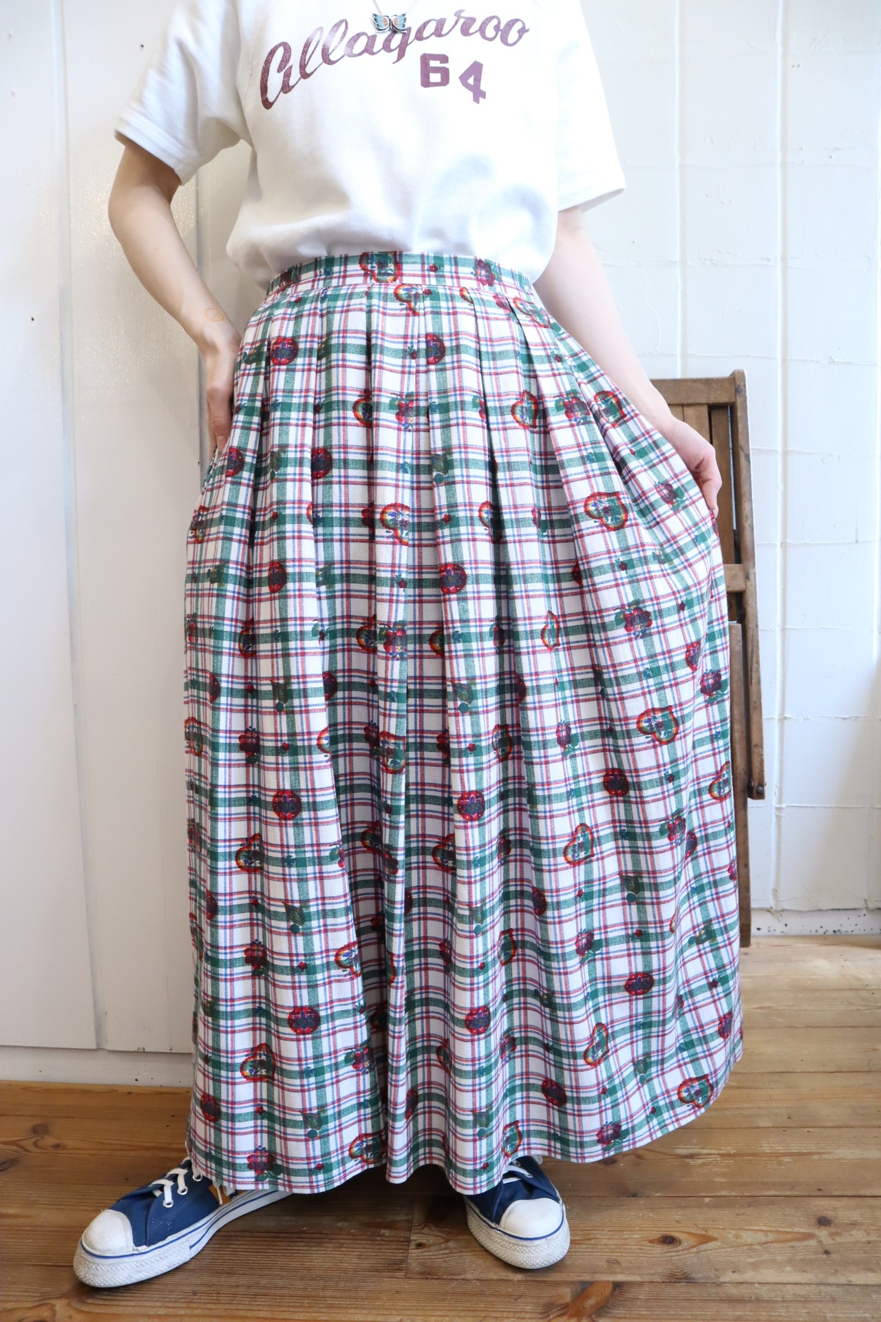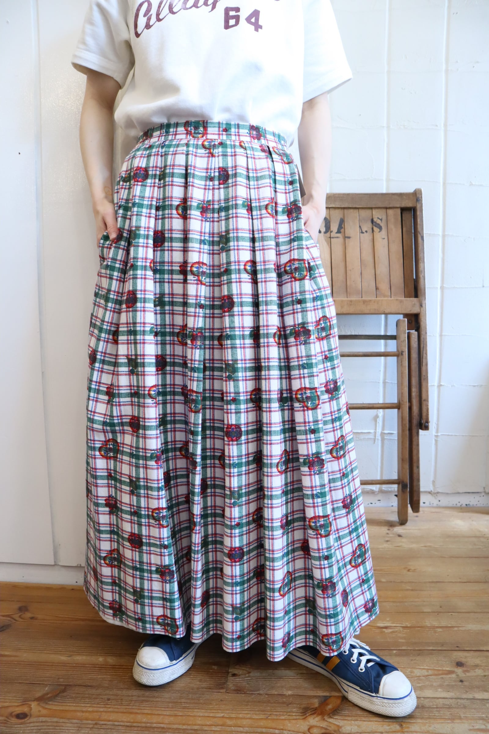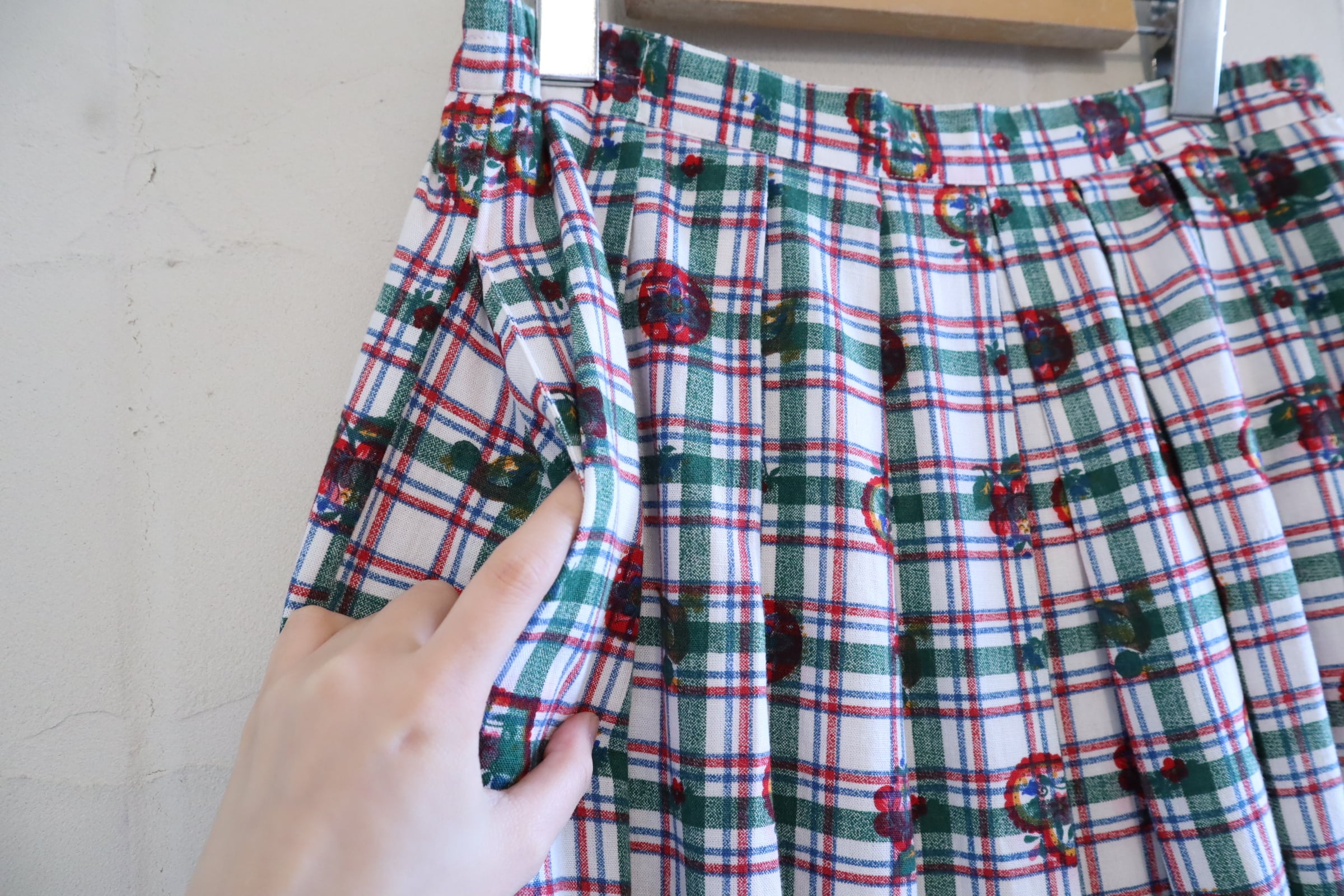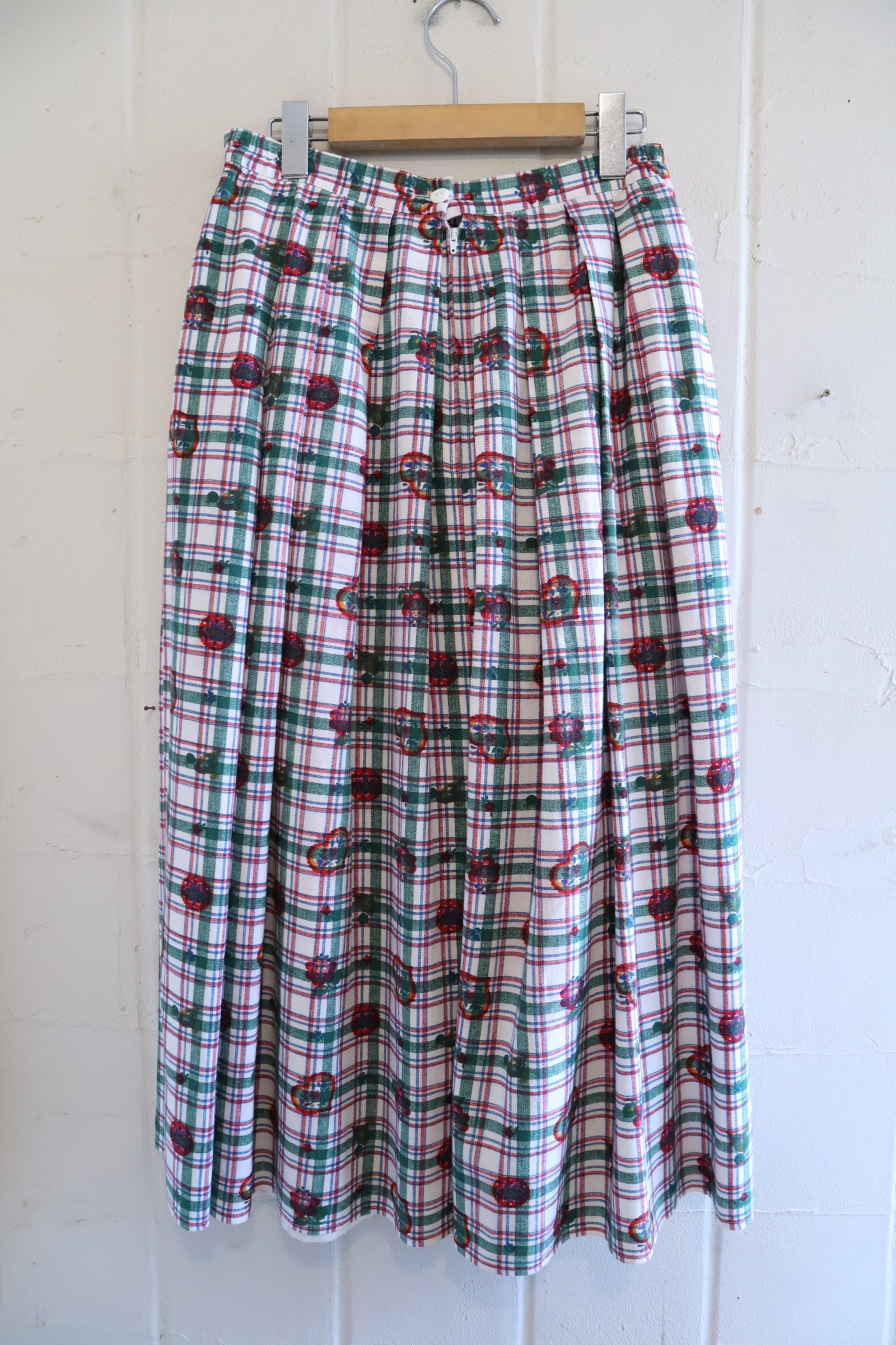 white×green×red plaid&♡&flower pattern tyrol skirt [l-5229]