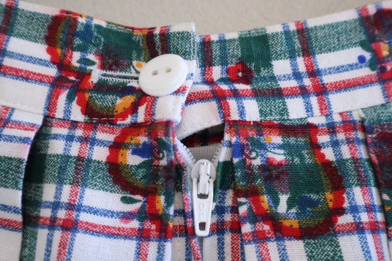 チェックにハートやお花のプリントがとても可愛いチロルスカート。