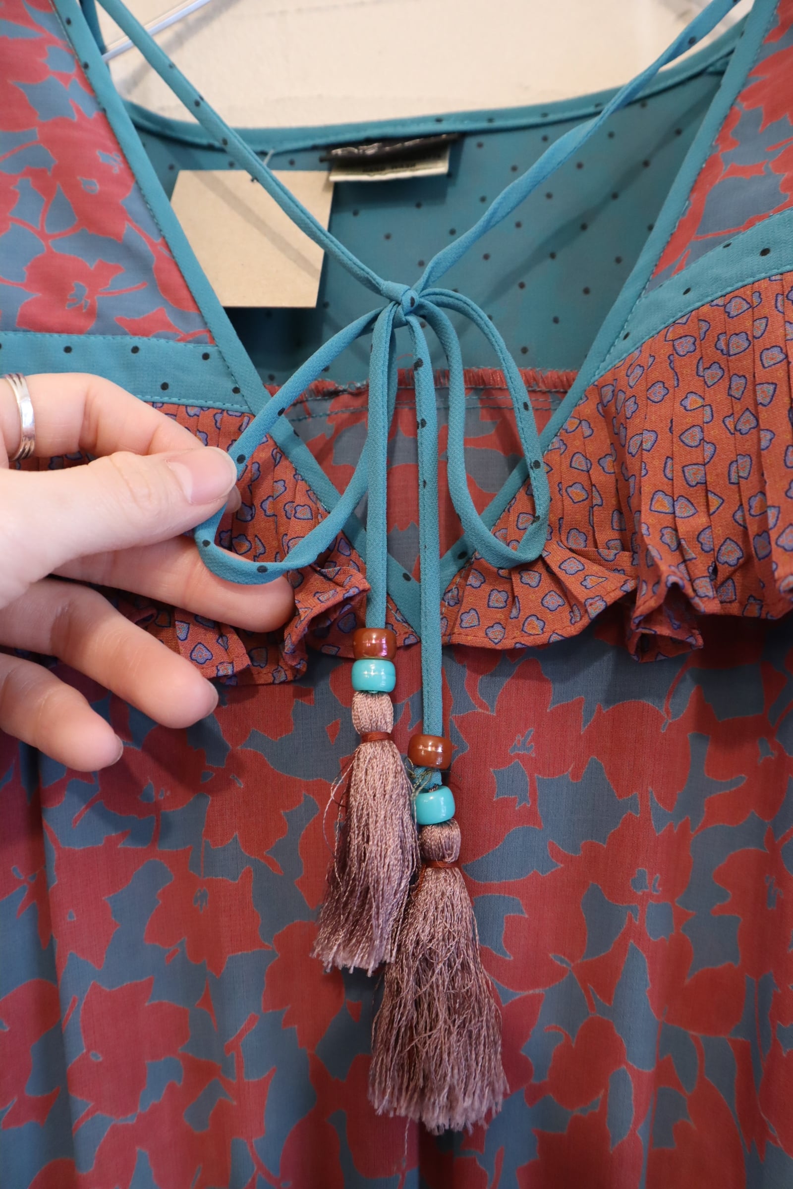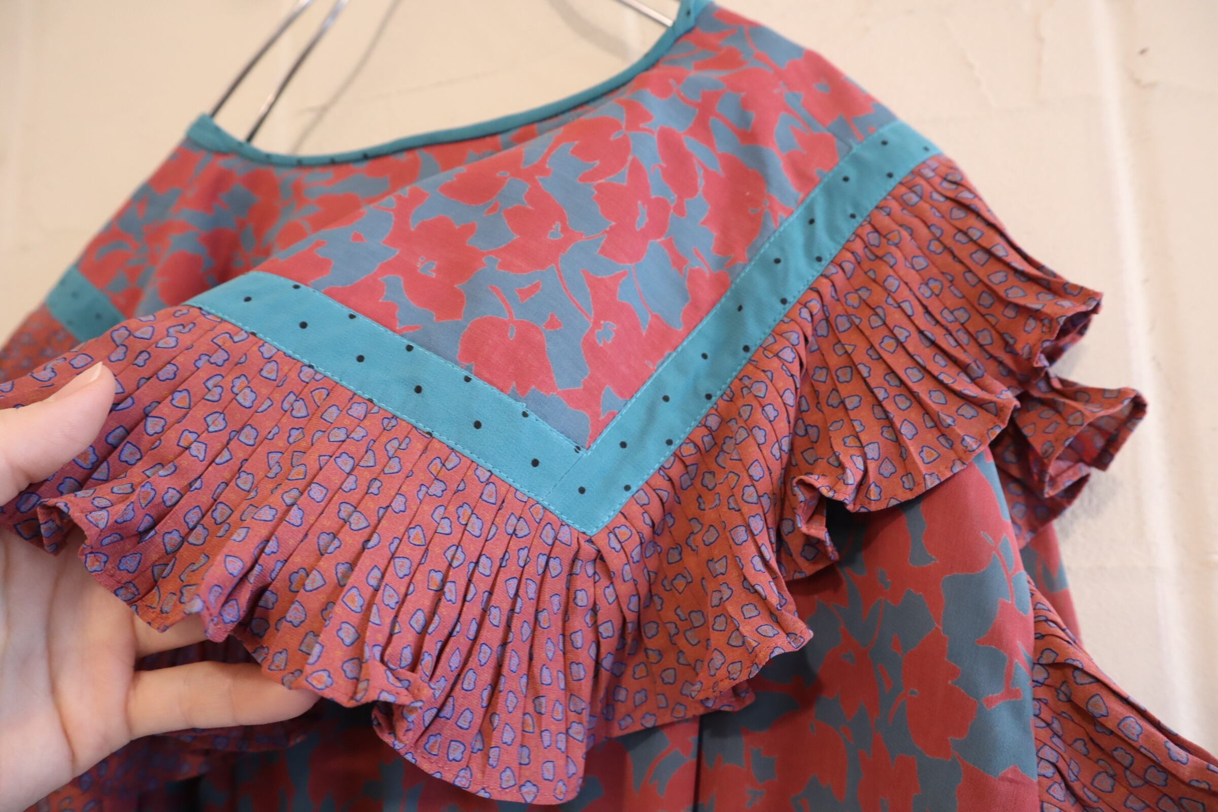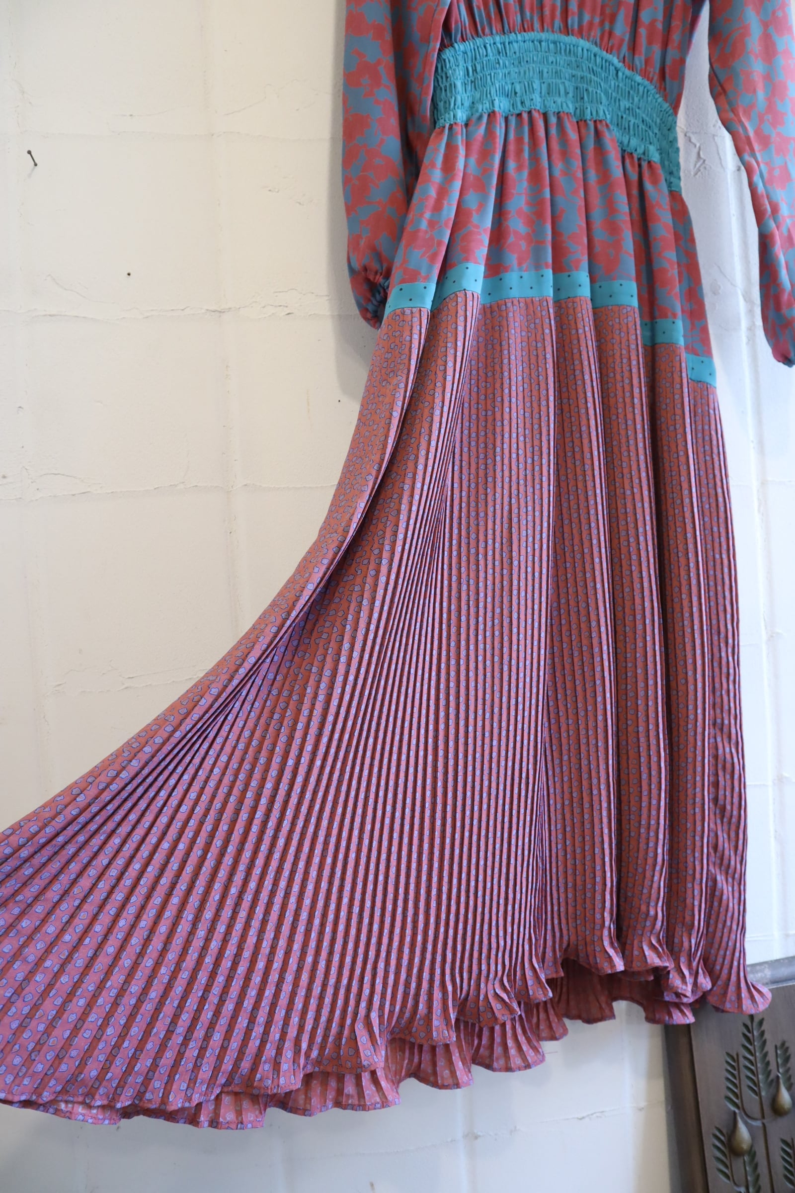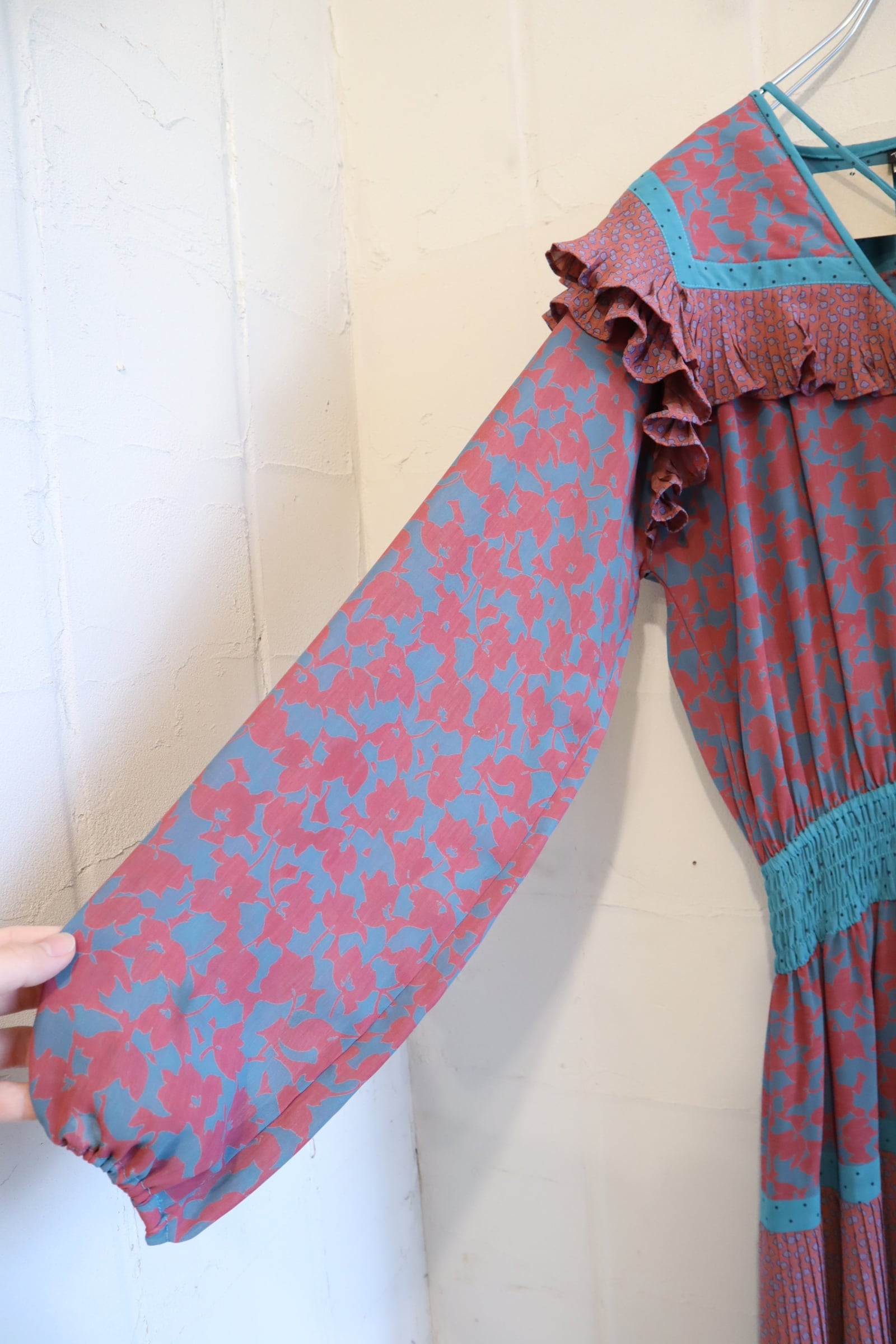 80s Diane Freis dullred×bluegreen geometric dot dress [l-5245]