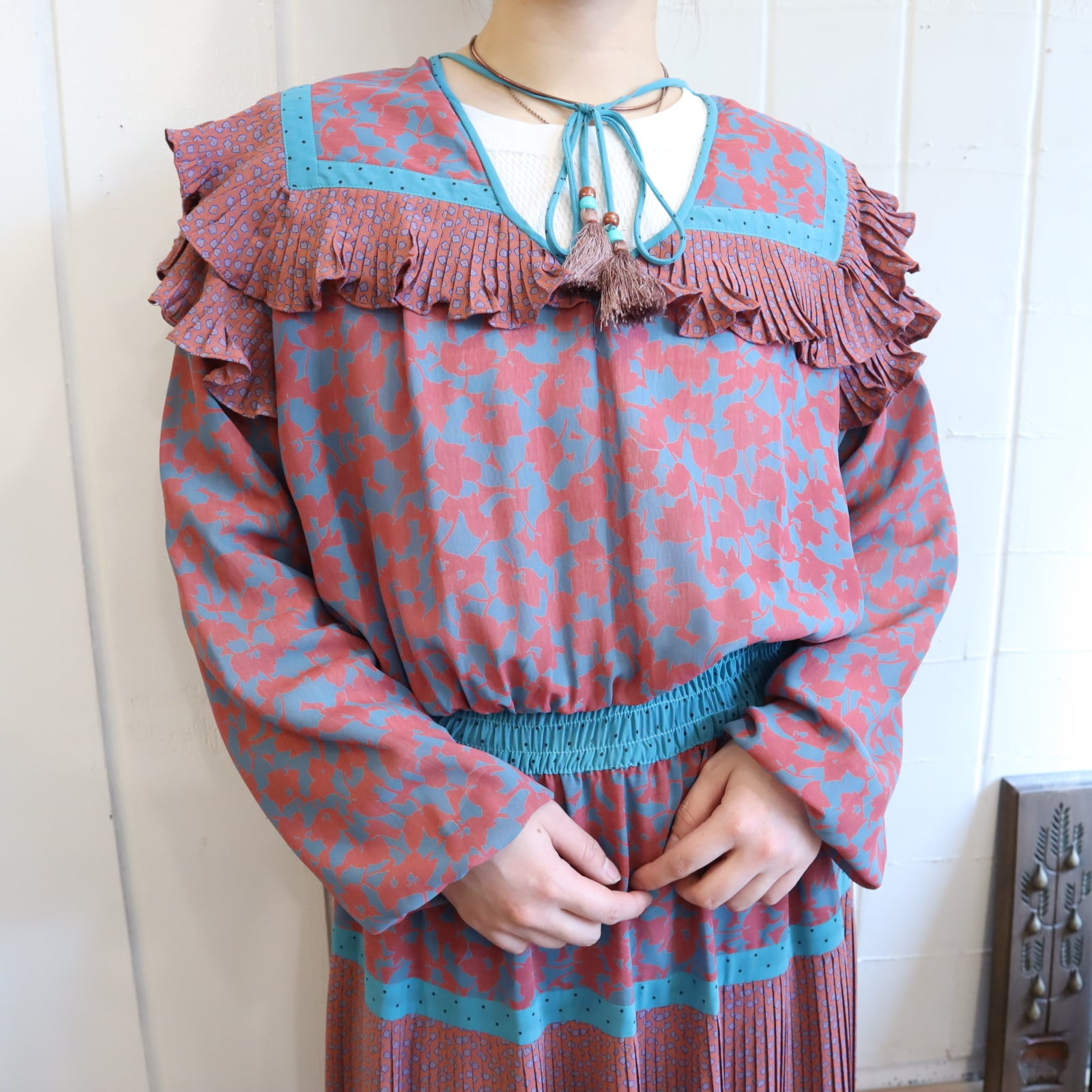セーラーカラーの様な襟が可愛い80sダイアンフレイスドレス*